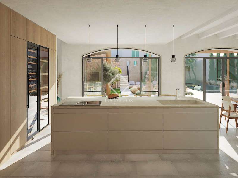 Lucas Fox Mallorca presents this sumptuous property of timeless elegance in the heart of Ses Salines. Nestled in the heart of the authentic village of Ses Salines, in the south of the island of Mallorca, this property is much more than a house: it is an architectural work of art, a rare place to live where traditional Mallorcan charm combines with exceptional contemporary refinement. This unique property, offering 375 m² of living space on a 360 m² plot, features four spacious bedrooms with en-suite bathrooms, spread over two floors connected by a staircase or elevator. It embodies the quintessential "village finca," combining history, modernity, and nature in perfect harmony. The jewel of this residence lies in its 192 m² Mediterranean garden, a rare and spectacular space for a village house. Evoking Tuscan landscapes, it is composed of majestic cypresses, fragrant lemon trees, exotic palm trees, an ancient olive tree, and the white grasses that inspired the property's name. The garden surrounds an elegant 9 x 4 m (36 m²) swimming pool, a true invitation to relax, surrounded by sundecks, terraces and relaxation areas perfect for sunny days and starry evenings. The sheltered porch, overlooked by a century-old olive tree, houses a shaded summer dining room, perfect for al fresco dining. The interior has been beautifully designed to enhance natural light and create a seamless flow between indoor and outdoor living. Large bay windows offer panoramic views of the garden, while bathing the rooms in sunlight. The ground floor opens onto a vast living space including a majestic entrance hall, a high-end open kitchen with central island, a second functional kitchen at the rear, a convivial dining room, a warm living room with fireplace. Every detail has been carefully considered, from the noble materials such as natural stone and wood to the finishes that embody the very essence of Mallorca. Upstairs, the four suites offer privacy, comfort, and garden views. The master suite features a large walk-in closet, a private balcony, and direct access to the garden via a stunning stone staircase. The roof terrace, a rare find for a village house, offers breathtaking views of the surrounding countryside, the village church, the sea, and the island of Cabrera. This additional outdoor space is a truly peaceful, suspended haven, ideal for admiring the Mallorcan sunsets. Another exclusive feature: Ses Salines residents enjoy private road access to the unspoiled beach of Es Caragol, just 8 km away. Far from the crowds, this cove of white sand and crystal-clear waters is a natural treasure accessible only by coastal path... or by private road for the privileged residents of the village. Work can begin at any time, giving you the opportunity to customize the finishes and amenities according to your preferences. The house is sold fully furnished and decorated by the prestigious Terraza Balear studio, guaranteeing an elegant, harmonious, and turnkey atmosphere. The place is nothing but comfort and beauty, enhanced by underfloor heating, specially designed lighting, high-end household appliances and double-glazed aluminum joinery. This unique village house is located in a prime location, perfect for lovers of authenticity, nature, and design. It combines the tranquility of Mallorcan life with understated sophistication in an environment of unparalleled beauty. A unique opportunity to acquire a prestigious second home, a Mediterranean refuge or a main residence of character, just a few minutes from the most beautiful beaches on the island.