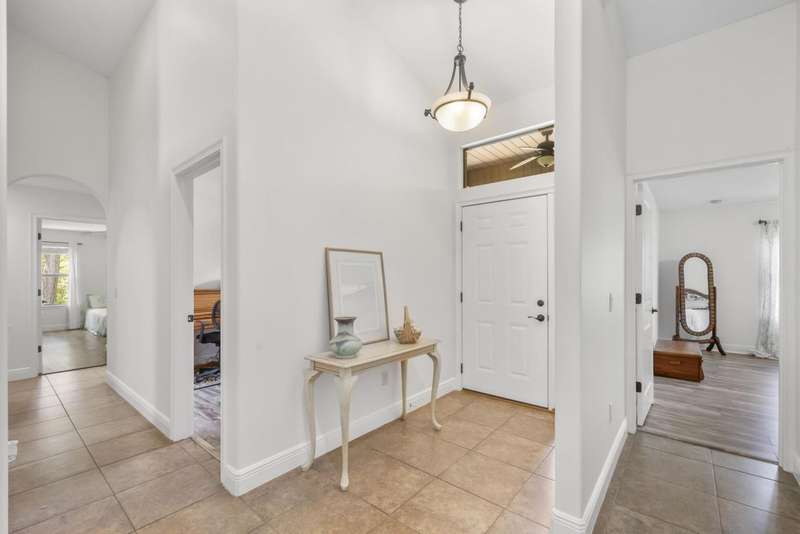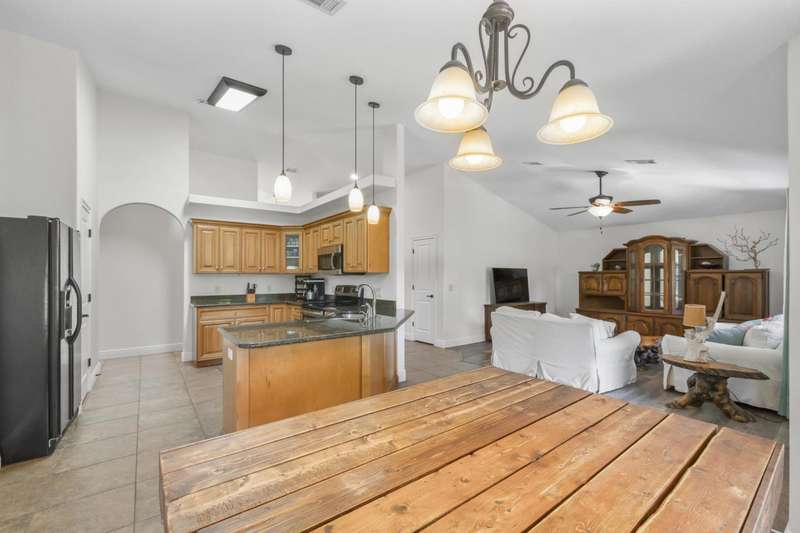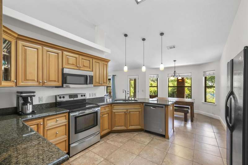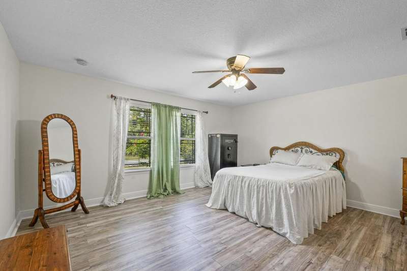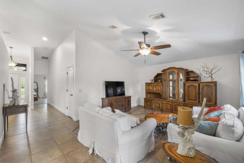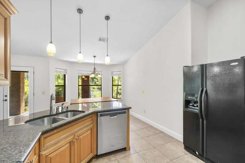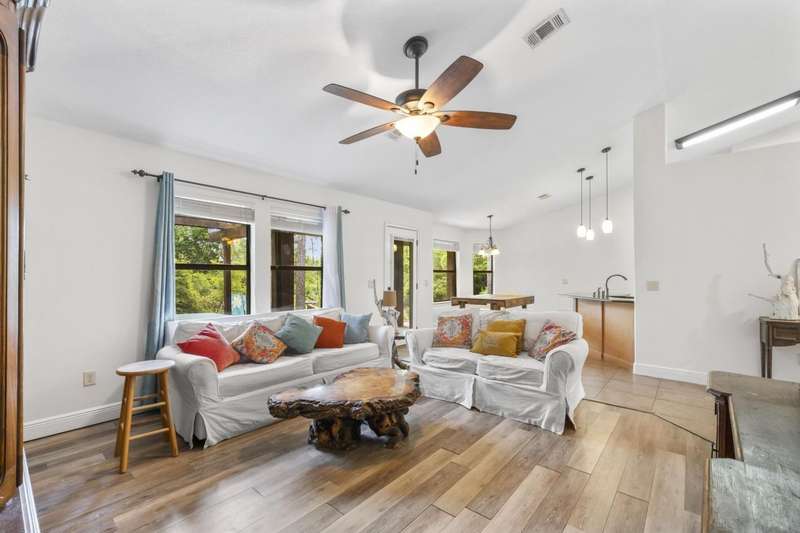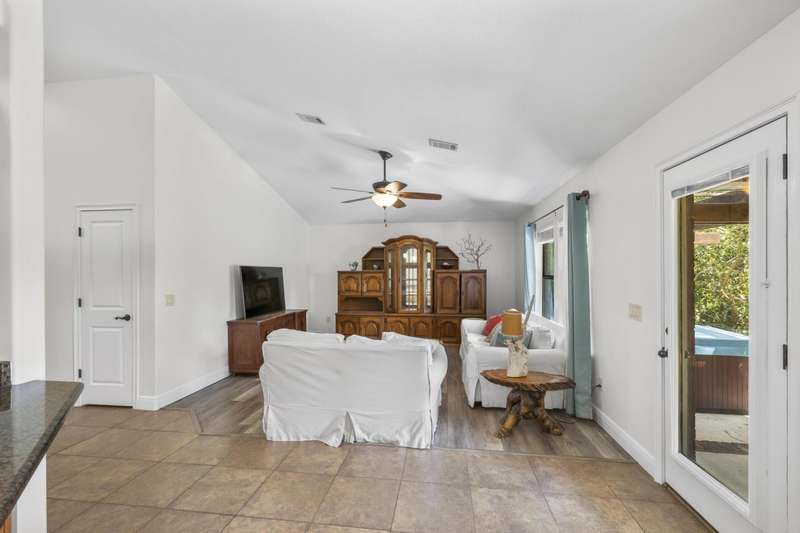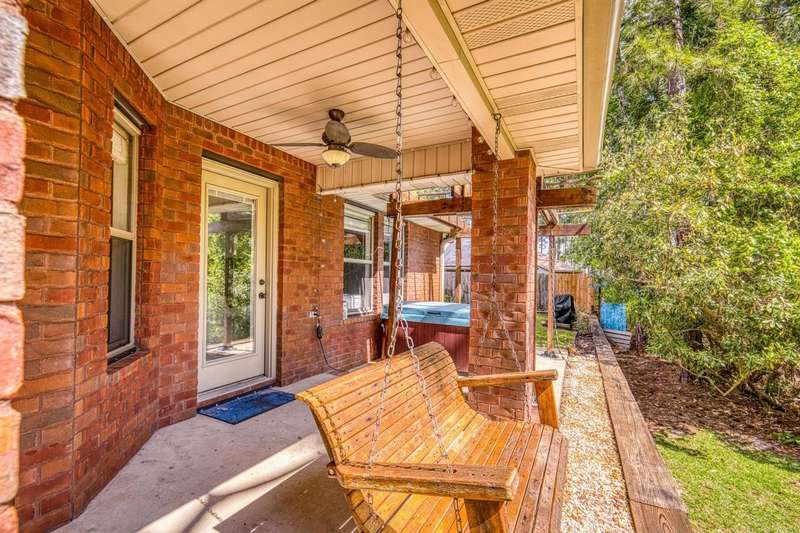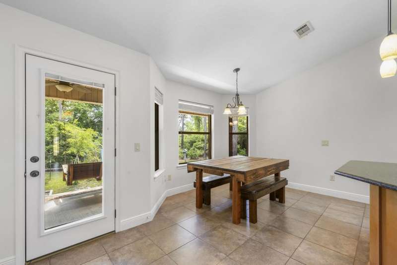 Discover tranquility in this meticulously maintained, freshly painted, all-brick residence nestled within the desirable Holley By The Sea community and adjacent to a lush wooded area just teeming with birds, flora and fauna. Built in 2010, this inviting home offers a perfect blend of comfort and privacy, ideal for those seeking a peaceful retreat. This home boasts 4 generously sized bedrooms - all with walk in closets - and 2 full bathrooms - both with double vanities, providing ample space for family and guests. A separate office, flex room or 5th bedroom offers the perfect environment for remote work, a quiet study or guests. Solid floors like vinyl plank and tile are throughout the home with the exception of the back bedroom which has new wall to wall carpet. You will be welcomed w ith a covered front porch with ceiling fan, a bright and airy entry foyer and high ceilings, but your eyes will be drawn to the back yard with its large covered patio, additional trellis covered hot tub and the natural beauty of a lush wooded back yard. There are roses, lemongrass - great to keep the mosquitos away - pear trees, blueberries and blackberries. There is also a large side lawn area with a fire pit and plenty of room for games and pets. Back inside - the kitchen features granite counter tops, tile floors, pantry, breakfast bar, large dining area overlooking the back yard and electric appliances. The main bedroom is HUGE and ensuite bath features cultured marble double vanity, separate shower, garden tub, water closet and walk-in closet. You will love the solid all brick exterior, gutters and hurricane shutters. Enjoy all of the HBTS amenities including the Multi-Million Dollar Rec Center with its pools, parks, tennis, pickleball, fitness center, ballfields, basketball courts, fishing pier, boat launch and waterfront RV Guest Rental Area, and still be close to Military Bases, Shopping, Restaurants and of course the Navarre Beach - voted one of the best, most relaxing beaches in the Country! Make arrangements to see this home today!