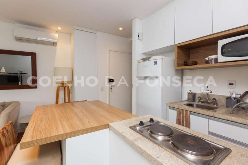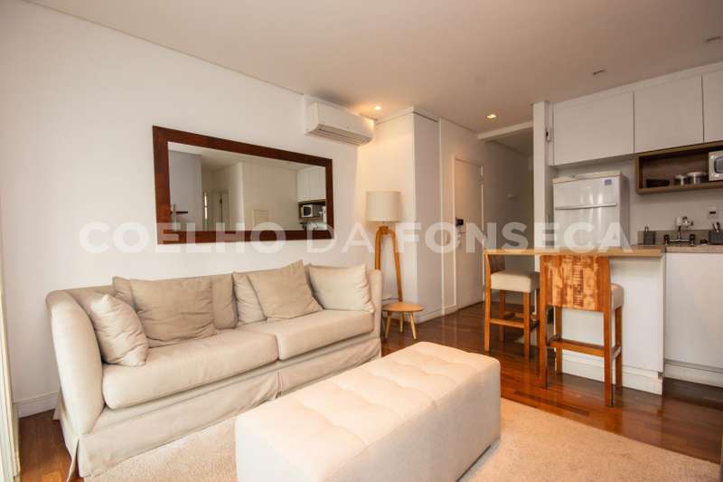 No coração do Itaim, este apartamento conta com muita iluminação natural! O imóvel esta decorado e tem o living e cozinha integrados, ampla varanda, uma suite e um dormitório com banheiro.