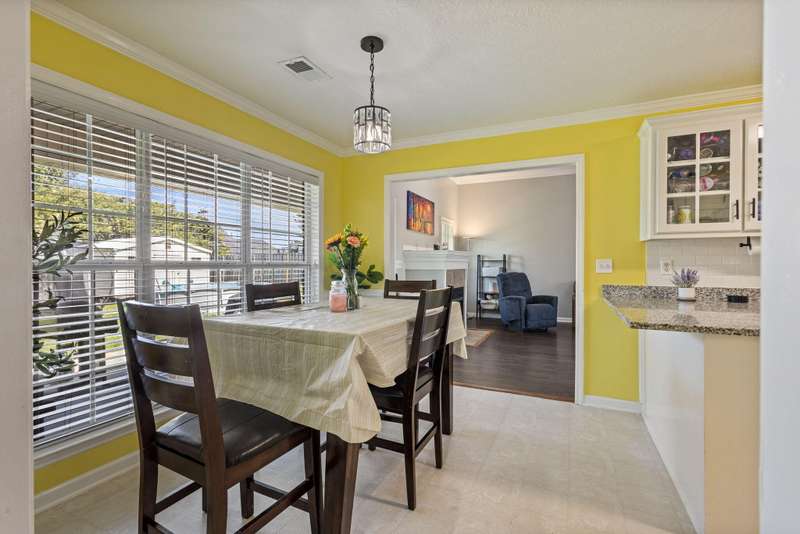 This meticulously maintained brick ranch offers timeless curb appeal, spacious living, and thoughtful updates throughout. Step inside to a welcoming foyer that opens into a generous living room anchored by a cozy fireplace --an inviting spot to gather with family and friends. The open layout flows seamlessly into a bright kitchen with brand-new granite countertops, ample cabinetry, a walk-in pantry, and a cheerful breakfast nook. A formal dining room adds even more versatility -- perfect for hosting dinner parties or easily converted into an extension of the family room, playroom, or home office. The owner's suite is a true retreat with a walk-in closet and spa-like ensuite complete with double vanities, a garden tub, and separate shower. Three additional bedrooms with large closets plus a full bath provide plenty of space for family or guests. A multi-purpose flex room could be used as a fifth bedroom, hobby or media room. Additional highlights include new granite countertops in all bathrooms, a dedicated laundry room, two-car garage with extra storage, and a covered patio overlooking the private backyard -- ideal for outdoor entertaining. A storage shed remains for added convenience. Perfectly located in the sought-after Northlake community, this home is just minutes from Fort Eisenhower, I-20, I-520, Clarks Hill Lake, and countless shopping and dining options. Don't miss the chance to call this exceptional Grovetown home yours. Schedule your private showing today!