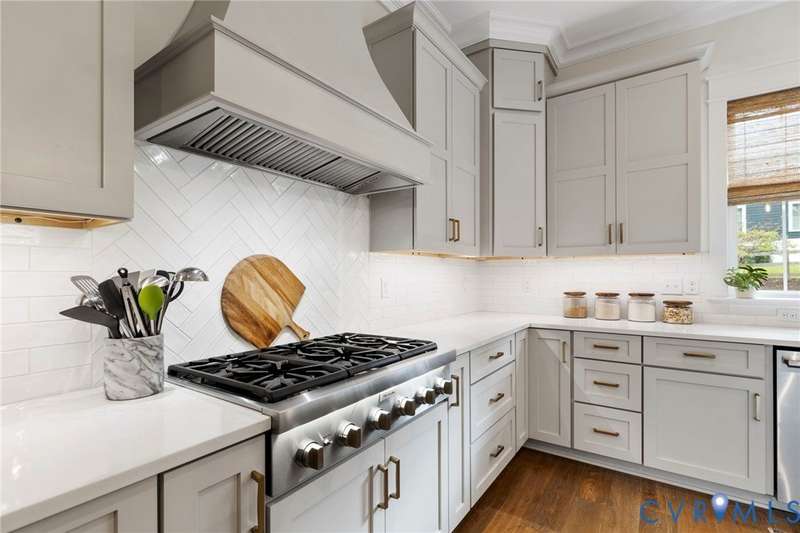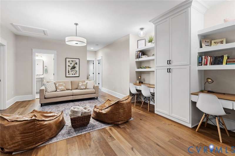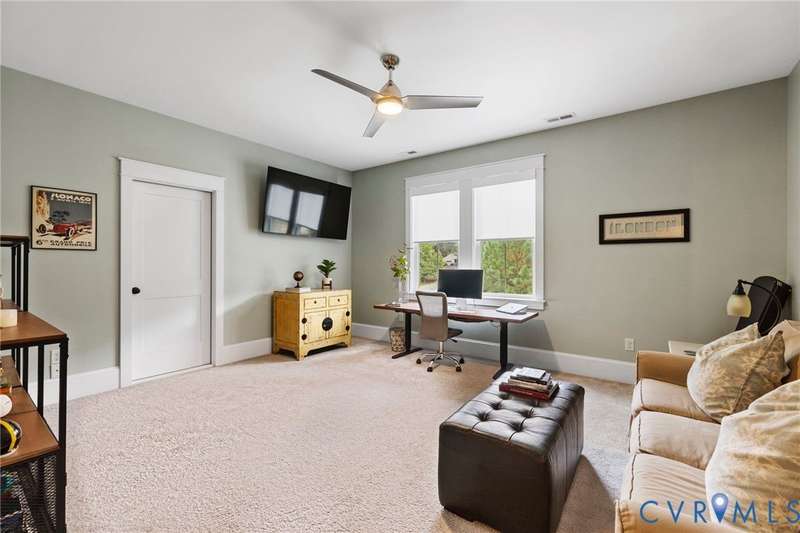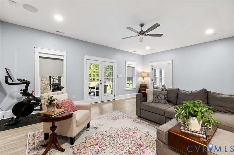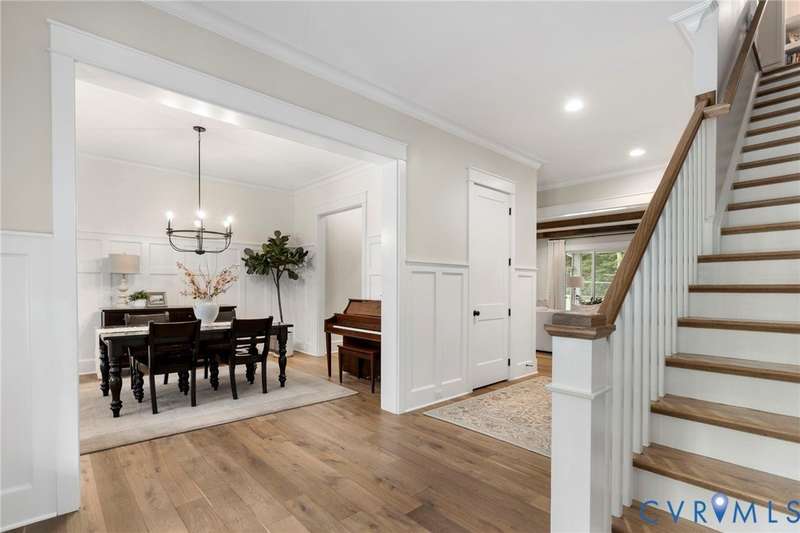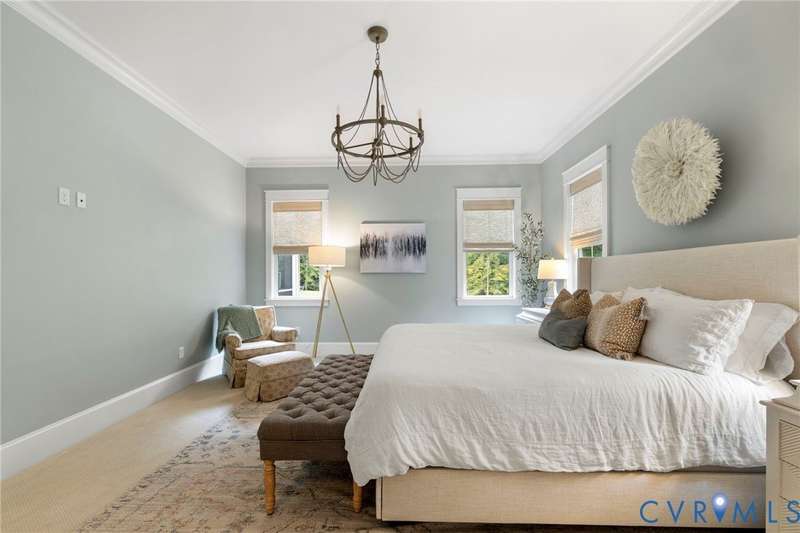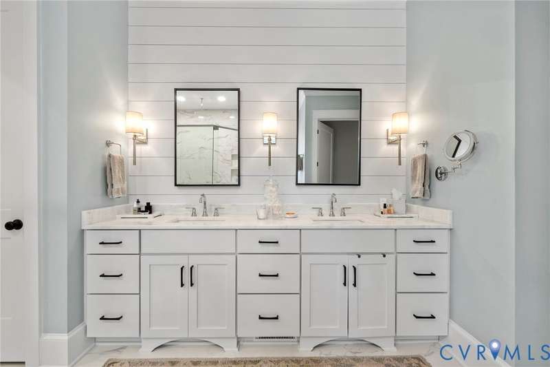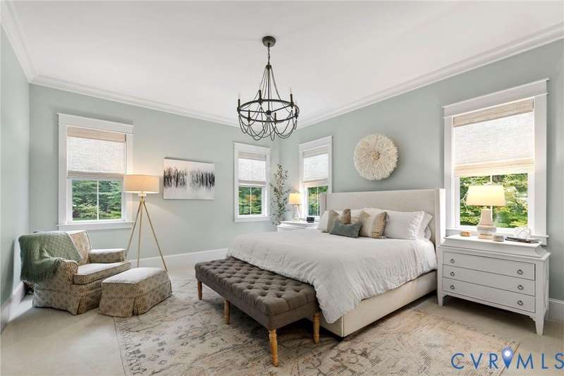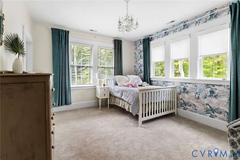 This custom-designed Pacific Farmhouse by Biringer Builders is a masterpiece of craftsmanship & design, blending elevated sophistication with everyday comfort. Situated off of historic Old Gun Road on 2 private acres, the home offers the serenity of a retreat while remaining minutes from conveniences. From the inviting front porch to the welcoming foyer, every detail has been thoughtfully curated. Soaring 10' ceilings, exquisite moldings & wide-plank wood floors establish an atmosphere of refinement. A paneled dining room & butlers pantry provides the perfect setting for gatherings, while the light-filled family room with beamed ceilings, fireplace, and built-ins flows seamlessly to a three-season screened porch with a stone fireplace-ideal for entertaining & relaxation. The chef's kitchen is a true showstopper, featuring a large quartz island with breakfast bar, floor-to-ceiling cabinetry, designer backsplash, luxury appliances, and a sunlit dining area. A walk-in pantry, office/mudroom, powder room and laundry enhance main-level living. The primary suite is a luxurious retreat, wrapped in windows with refined crown molding. The spa-inspired bath offers a double vanity, walk-in shower, private water closet, linen storage, and a boutique-style walk-in dressing room with custom built-ins. Upstairs, a versatile loft connects four spacious bedrooms, including a Jack-and-Jill suite plus a second laundry room with cabinetry. An additional suite with full bath offers flexible space for a media room, office or guest accommodations with expansion potential in the wired storage area. The finished lower level provides abundant living space with a great room, playroom, guest suite and direct walk-out to a private patio. An oversized two-car garage offers excellent storage. Outdoors, the property is designed for both recreation & retreat with a sports field and wooded trails and convenient second stone driveway. This remarkable residence offers a rare opportunity to enjoy elevated living in the heart of beautiful Midlothian.