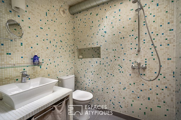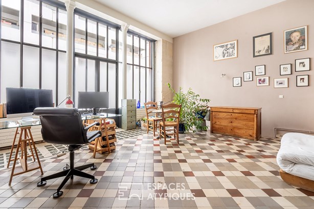 This 100.8 m2 loft (99.15 m2 Carrez law) is located at the crossroads between the Canal Saint-Martin, the Bassin de la Villette, and the Buttes-Chaumont.