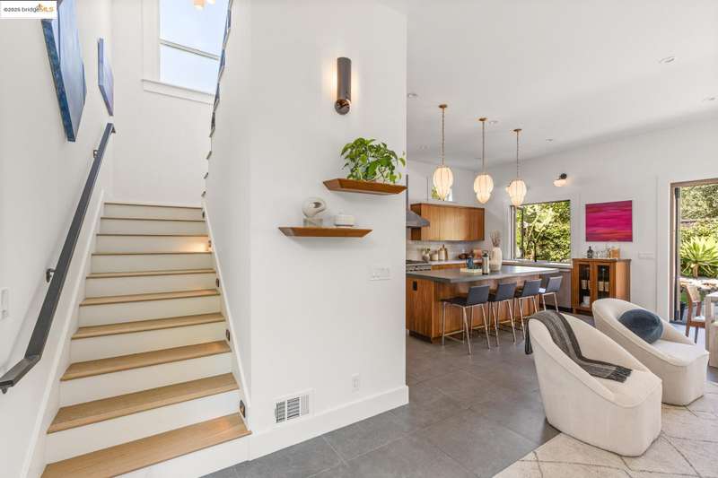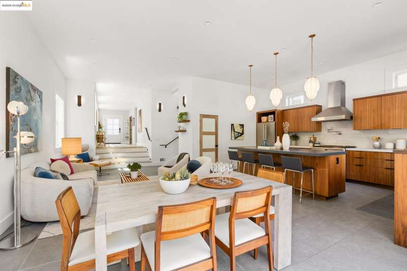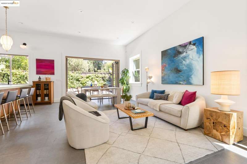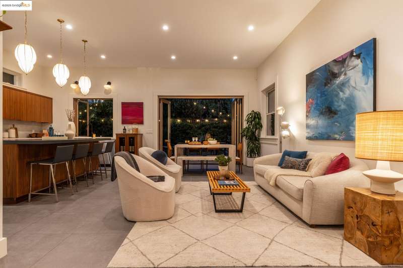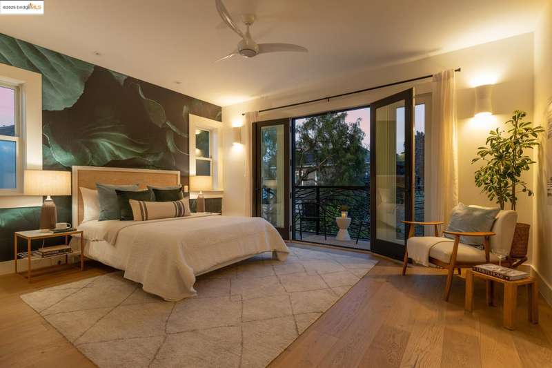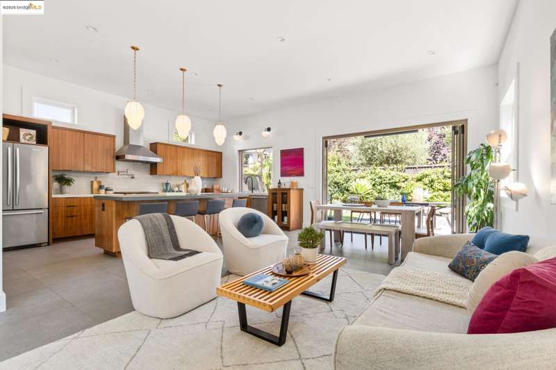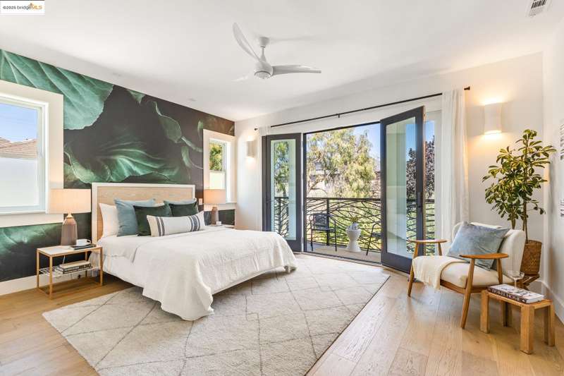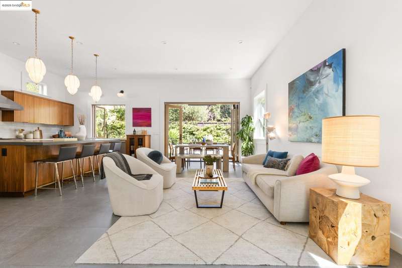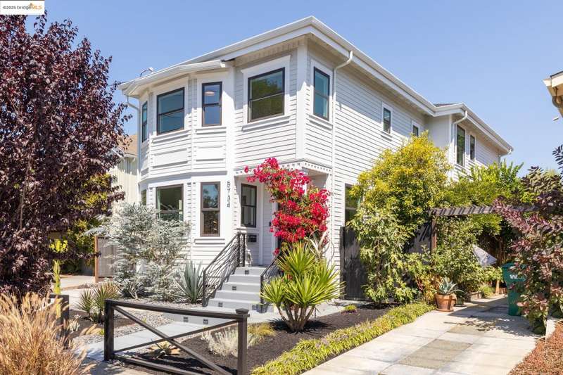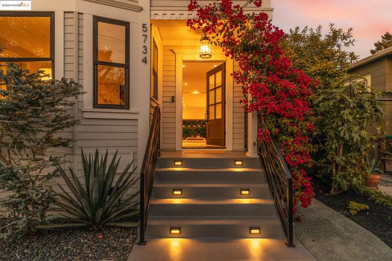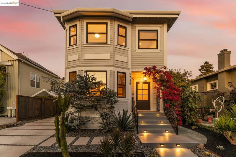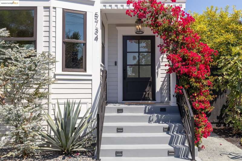 Welcome to this reimagined and remodeled home where stunning curb appeal meets sleek, high-end interiors. Modern landscaping, crisp white trim, bold black windows, and blooming bougainvillea set the stage. Inside, wide-plank wood floors, curated lighting, and designer finishes flow throughout. A sun-filled den and main-level bedroom and bath lead to a dramatic great room with soaring ceilings. The chef's kitchen features a central island for gathering, high end appliances, walk-in pantry, and two bifold doors which completely opens up the home to the landscaped backyard. Upstairs, you will find three bedrooms including a luxurious primary suite with balcony, walk-in closet, and spa bath with a huge designer soaking tub. Conveniently located close-by is a gracious bedroom, fun bath and another oversized en-suite room. A flexible alcove is ideal for a home-gym, office, play space or reading nook. Grand laundry room with so much storage! Detached storage shed and bike shed, EV charger, Nest thermostat and newer systems throughout. Fabulous North Oakland neighborhood with so much to offer: Bushrod and Dover Parks minutes away, trendy Temescal and Rockridge shops/restaurants, Whole Foods and BART! What more could you ask for?!