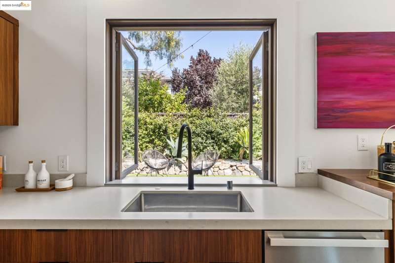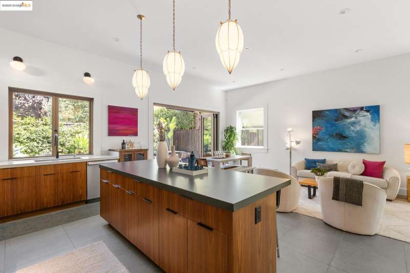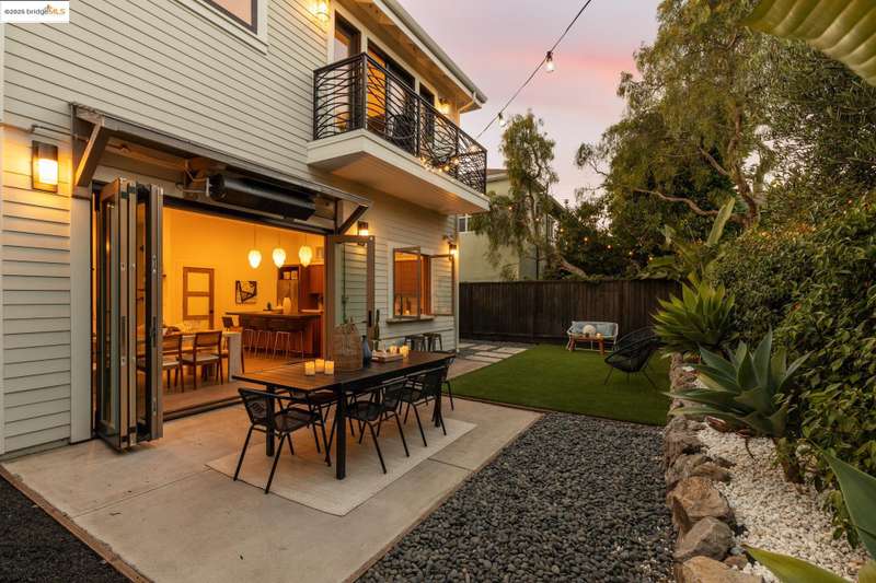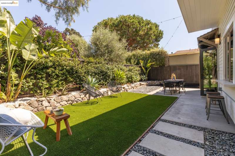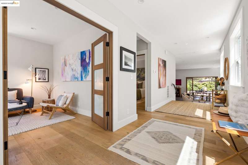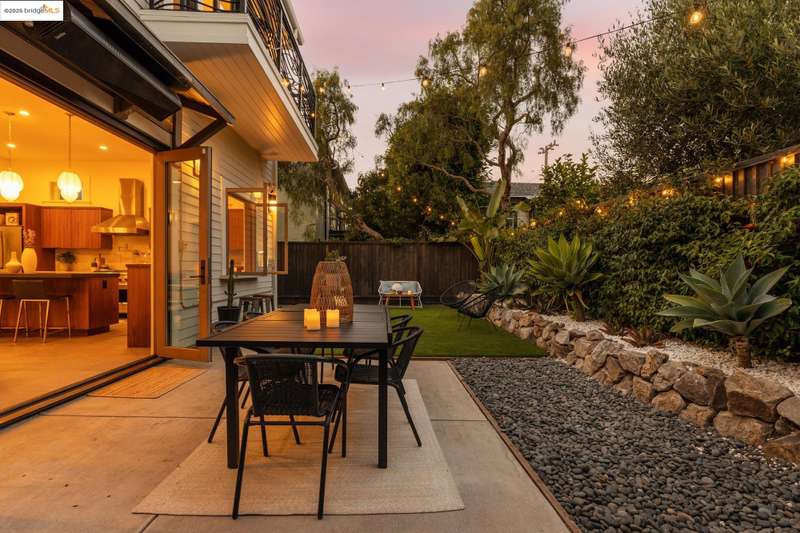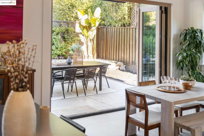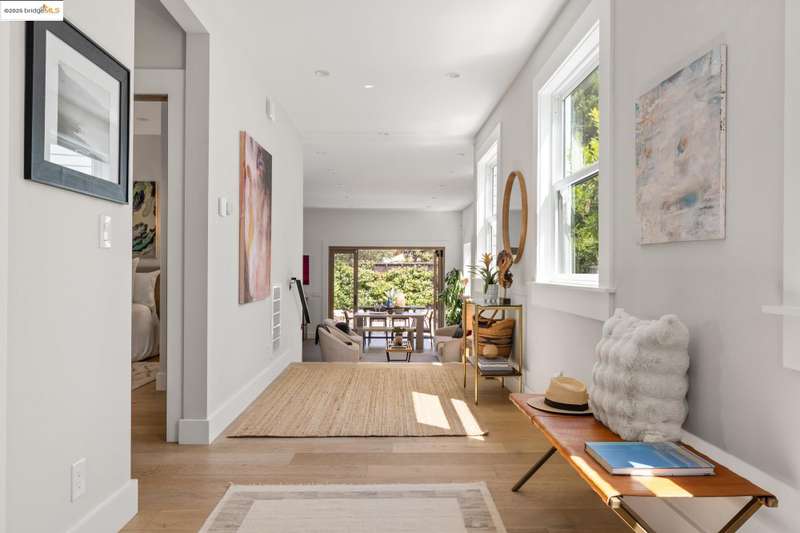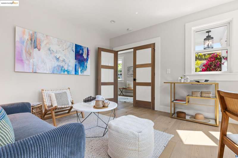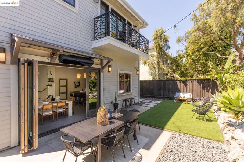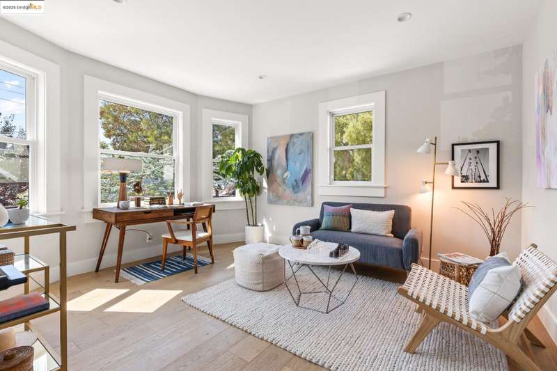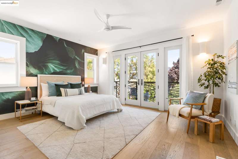 Welcome to this reimagined and remodeled home where stunning curb appeal meets sleek, high-end interiors. Modern landscaping, crisp white trim, bold black windows, and blooming bougainvillea set the stage. Inside, wide-plank wood floors, curated lighting, and designer finishes flow throughout. A sun-filled den and main-level bedroom and bath lead to a dramatic great room with soaring ceilings. The chef's kitchen features a central island for gathering, high end appliances, walk-in pantry, and two bifold doors which completely opens up the home to the landscaped backyard. Upstairs, you will find three bedrooms including a luxurious primary suite with balcony, walk-in closet, and spa bath with a huge designer soaking tub. Conveniently located close-by is a gracious bedroom, fun bath and another oversized en-suite room. A flexible alcove is ideal for a home-gym, office, play space or reading nook. Grand laundry room with so much storage! Detached storage shed and bike shed, EV charger, Nest thermostat and newer systems throughout. Fabulous North Oakland neighborhood with so much to offer: Bushrod and Dover Parks minutes away, trendy Temescal and Rockridge shops/restaurants, Whole Foods and BART! What more could you ask for?!