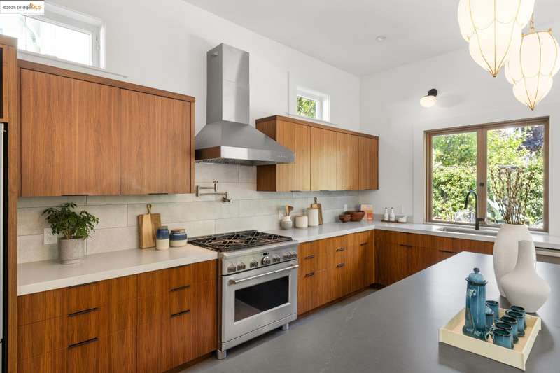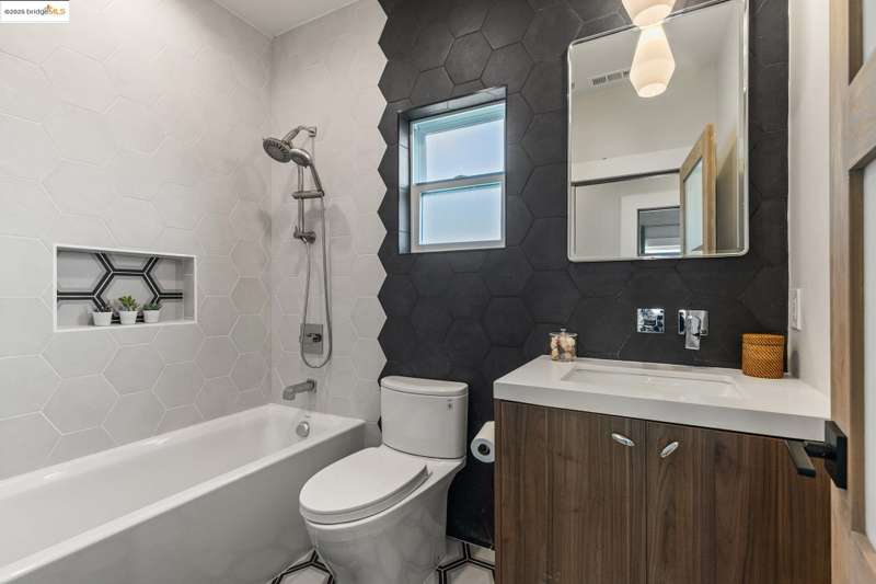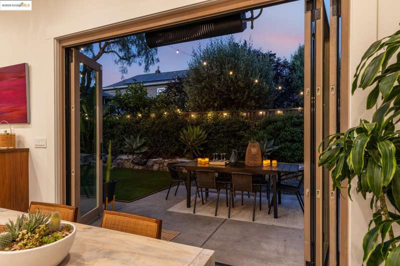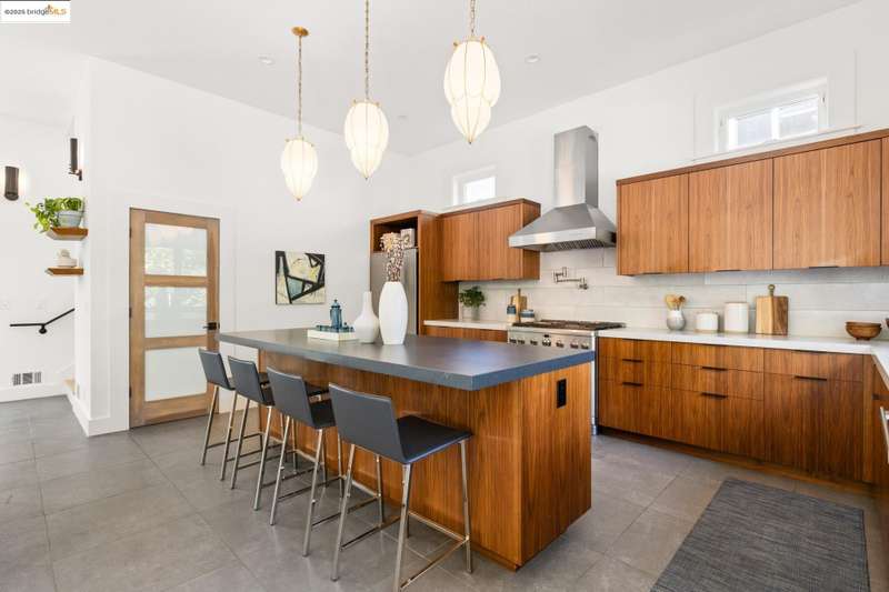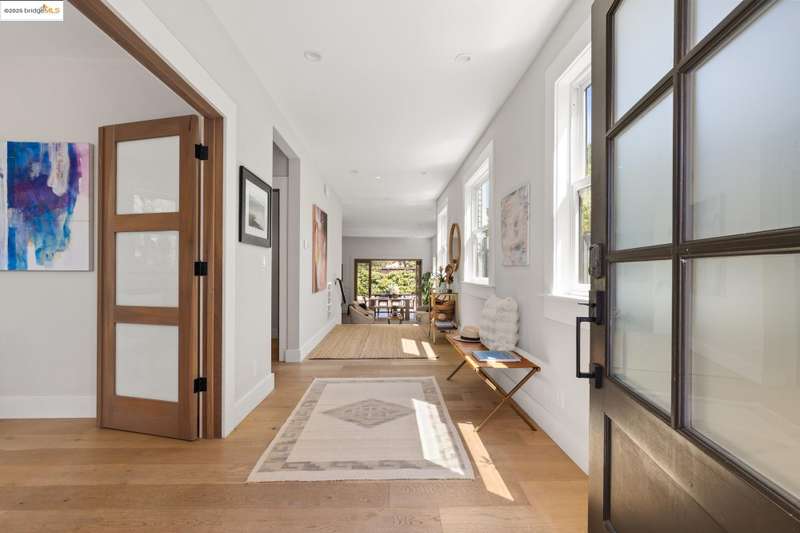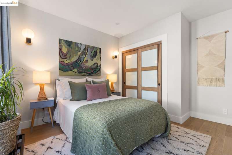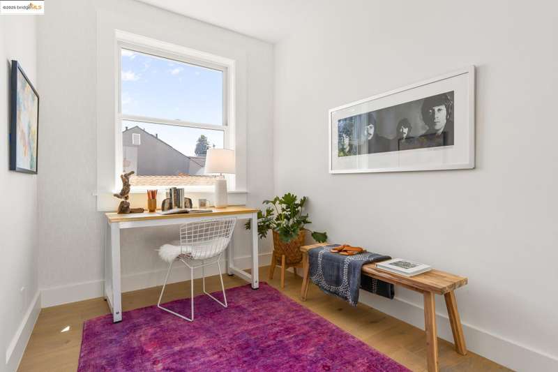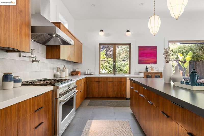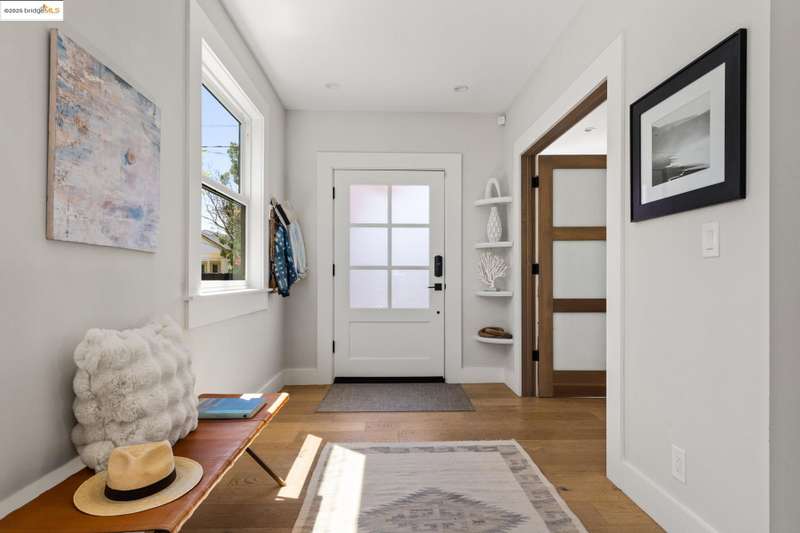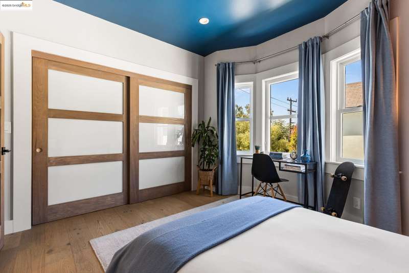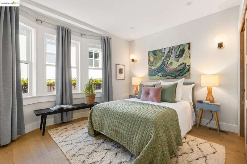 Welcome to this reimagined and remodeled home where stunning curb appeal meets sleek, high-end interiors. Modern landscaping, crisp white trim, bold black windows, and blooming bougainvillea set the stage. Inside, wide-plank wood floors, curated lighting, and designer finishes flow throughout. A sun-filled den and main-level bedroom and bath lead to a dramatic great room with soaring ceilings. The chef's kitchen features a central island for gathering, high end appliances, walk-in pantry, and two bifold doors which completely opens up the home to the landscaped backyard. Upstairs, you will find three bedrooms including a luxurious primary suite with balcony, walk-in closet, and spa bath with a huge designer soaking tub. Conveniently located close-by is a gracious bedroom, fun bath and another oversized en-suite room. A flexible alcove is ideal for a home-gym, office, play space or reading nook. Grand laundry room with so much storage! Detached storage shed and bike shed, EV charger, Nest thermostat and newer systems throughout. Fabulous North Oakland neighborhood with so much to offer: Bushrod and Dover Parks minutes away, trendy Temescal and Rockridge shops/restaurants, Whole Foods and BART! What more could you ask for?!