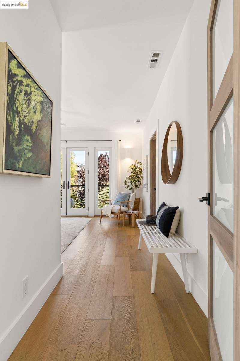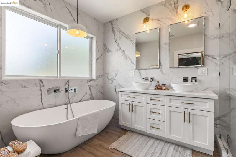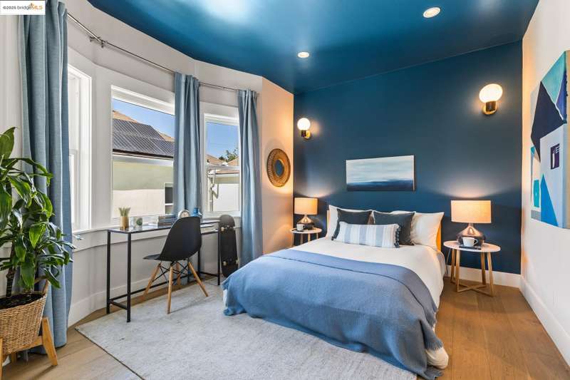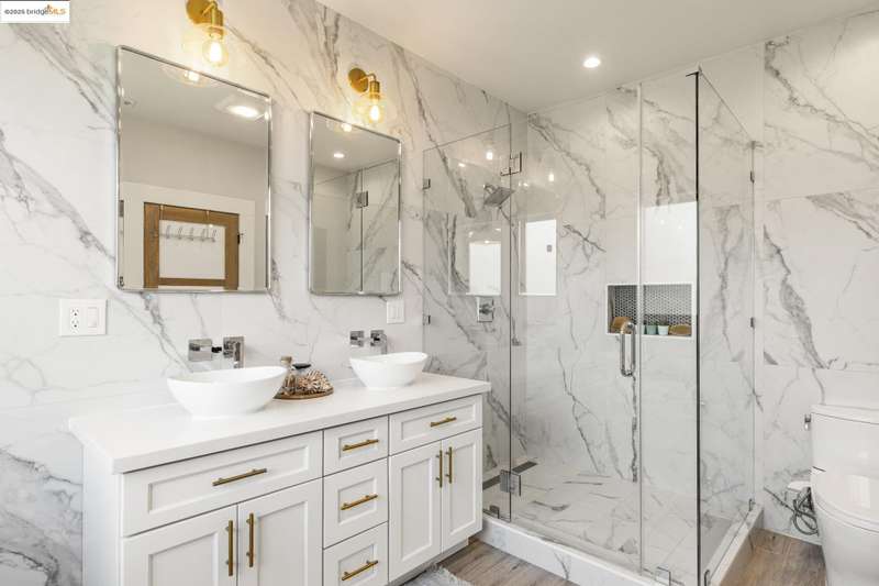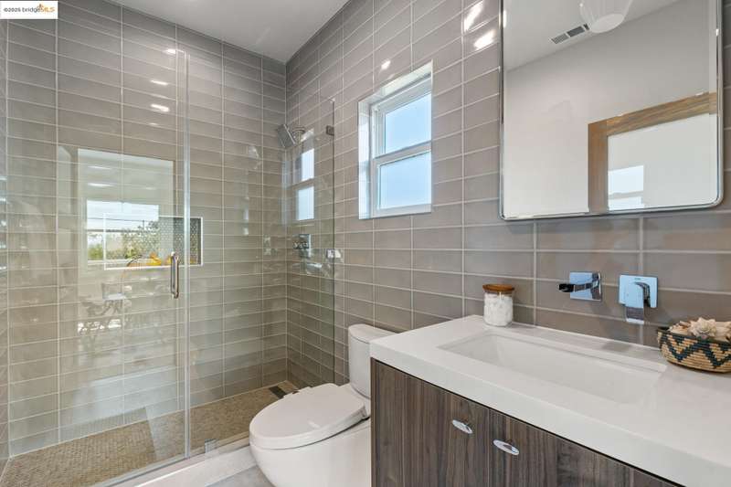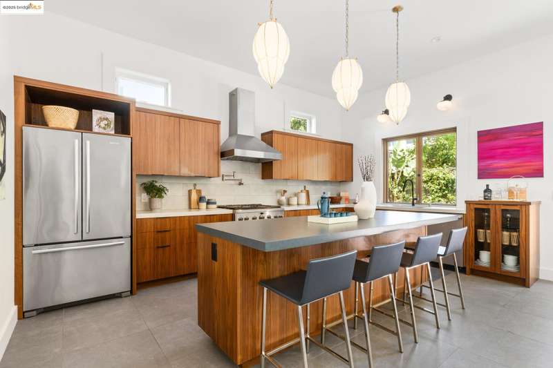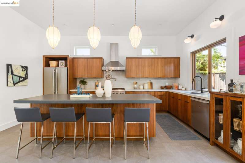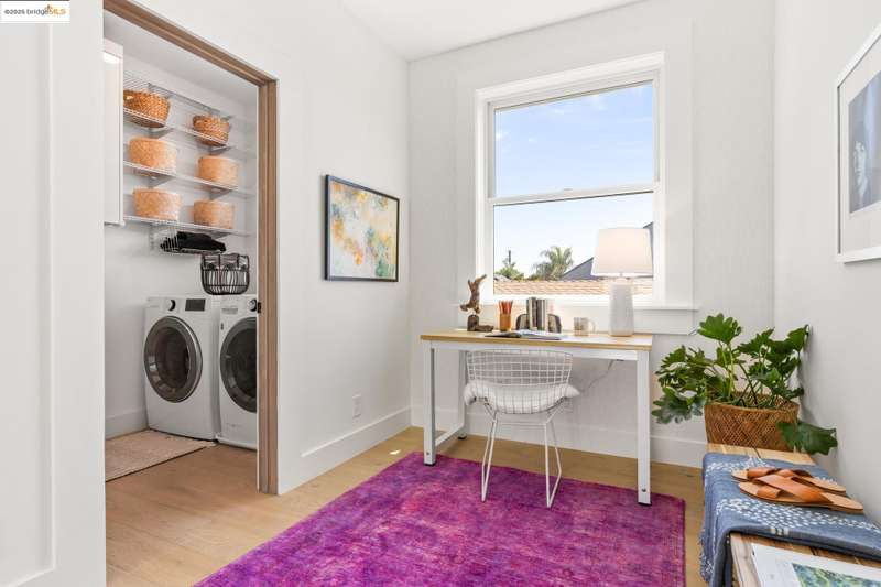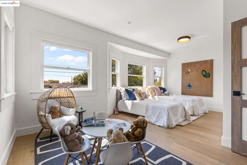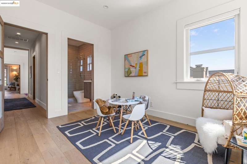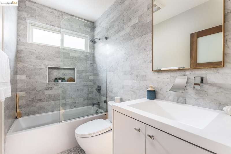 Welcome to this reimagined and remodeled home where stunning curb appeal meets sleek, high-end interiors. Modern landscaping, crisp white trim, bold black windows, and blooming bougainvillea set the stage. Inside, wide-plank wood floors, curated lighting, and designer finishes flow throughout. A sun-filled den and main-level bedroom and bath lead to a dramatic great room with soaring ceilings. The chef's kitchen features a central island for gathering, high end appliances, walk-in pantry, and two bifold doors which completely opens up the home to the landscaped backyard. Upstairs, you will find three bedrooms including a luxurious primary suite with balcony, walk-in closet, and spa bath with a huge designer soaking tub. Conveniently located close-by is a gracious bedroom, fun bath and another oversized en-suite room. A flexible alcove is ideal for a home-gym, office, play space or reading nook. Grand laundry room with so much storage! Detached storage shed and bike shed, EV charger, Nest thermostat and newer systems throughout. Fabulous North Oakland neighborhood with so much to offer: Bushrod and Dover Parks minutes away, trendy Temescal and Rockridge shops/restaurants, Whole Foods and BART! What more could you ask for?!