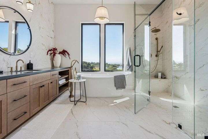 Stunning new custom home in Fountaingrove with sweeping views of the golf course and Lake Nagasawa. This thoughtfully designed 3900 sq. ft. residence offers 4 bedrooms, 4.5 baths and a versatile bonus room. The main level showcases a chef's kitchen with premium stainless steel appliances, oversized island, and a back kitchen/pantry with second prep sink, all opening to the spacious great room with walls of windows framing the views. The luxurious primary suite features a spa-like bath, walk-in closet, private patio access, and incredible vistas, while a junior suite provides comfort and privacy for guests. The lower level offers a large bonus room, 2 bedrooms, 2 full baths and direct access to a covered patio for indoor/outdoor living. Nearly 1,300 sq. ft. of covered outdoor space creates the ultimate retreat, complete with outdoor kitchen and BBQ, dining area, and multiple seating zones perfect for entertaining or relaxing as the sun sets. A 3-car garage and extensive custom built-ins add convenience and functionality. Just steps to The Fountaingrove Golf & Athletic Club with easy access to Hwy 101 and Mark West Springs Rd, this is Wine Country New Home living at its finest.
