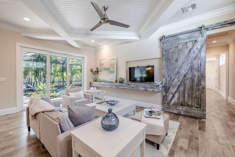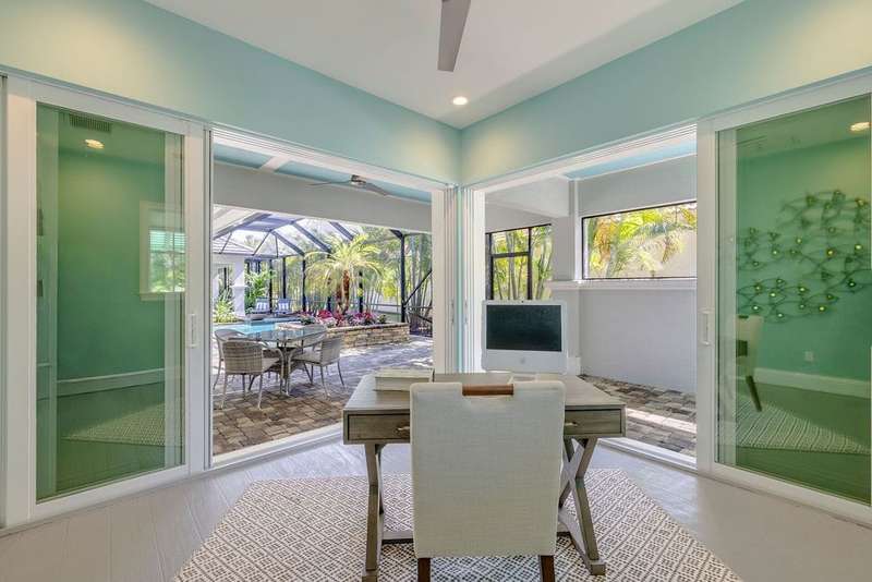 Welcome to your tropical escape your private oasis of peace and comfort, perfect for a winter getaway. This fully upgraded 3BD/2.5BA home features spacious layout with a den and separate office/flex room, ideal for work or relaxation. Designed for indoor-outdoor living, the home features impact glass sliders opening to a screened,heated pool surrounded by tropical privacy. Enjoy elegant woodwork throughout,California closets, upgraded kitchen with large island and fenced yard. Furniture negotiable.Ideally located minutes from the beach, shops, dining, and golf.Sizes approx./subject to error.