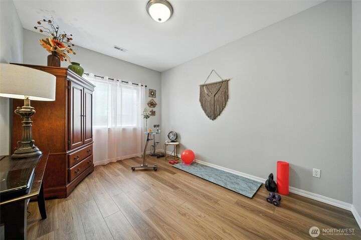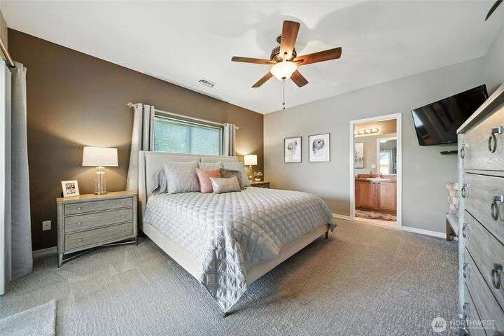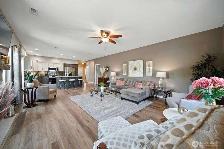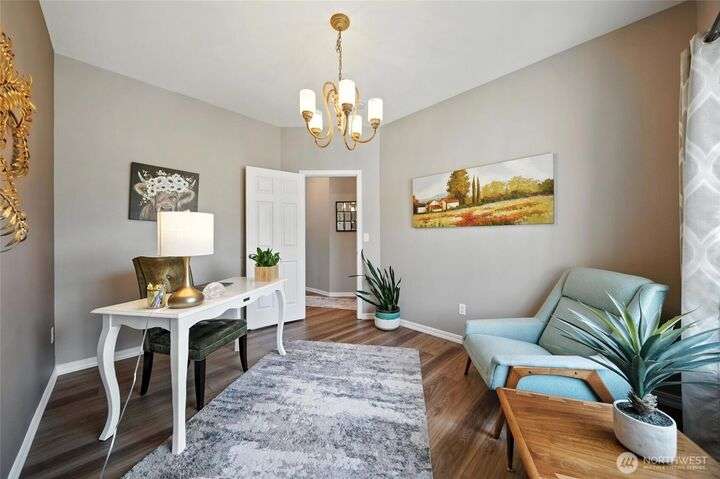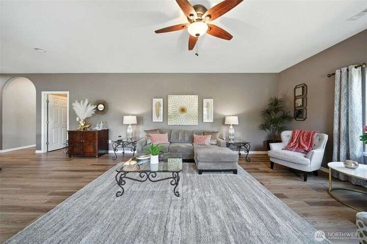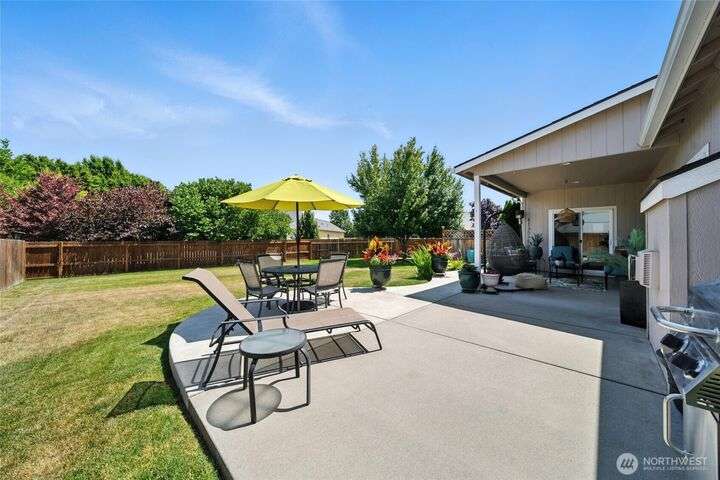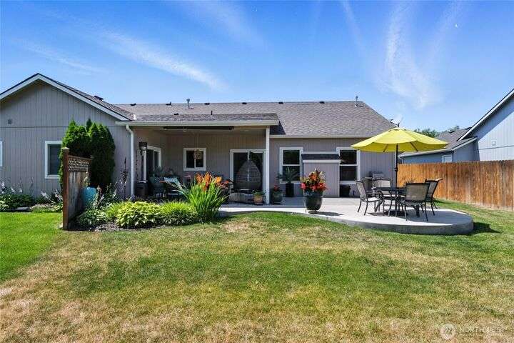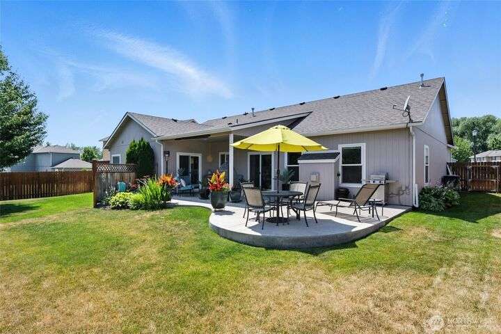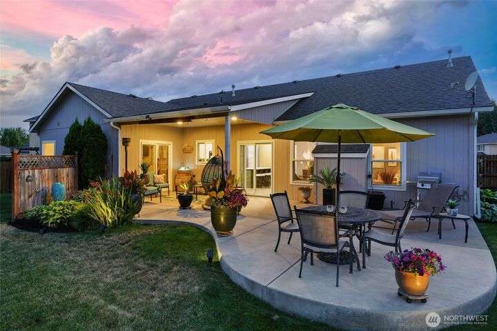 Ultimate expression of sophistication in remodeled home. To the right of foyer is lg front/formal dining rm w vaulted ceilings. Home office to your left. A big surprise awaits you in kitchen & great room. Carefully designed w distinction, a 6.25' island & counters are signature elements, w real Quartzite Brazilian stone & Italian backsplash, complementing butter-rich finish cabinetry w brass hardware. Entertaining space has all new luxury vinyl flooring, 9' ceilings & cozy stone-stacked fireplace that flows to entertaining patio- partially covered & private. Lg fenced yard. Primary w full ensuite, walk-in closet & slider to enjoy patio year-round. New gas & stainless appliances & freshly painted. You won't want to miss this stunning home.