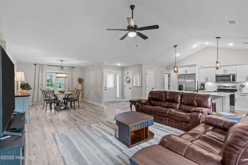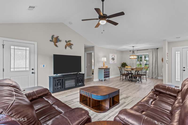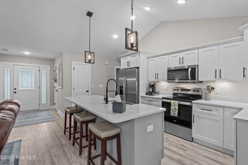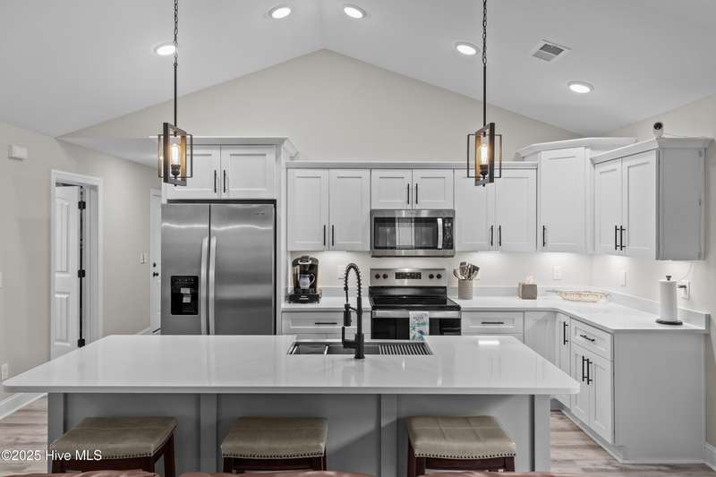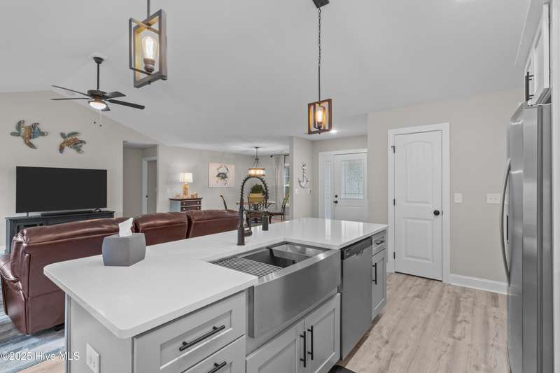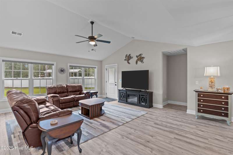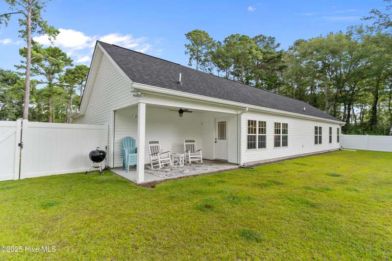 Like-new, this three bedroom two full bath coastal home is move-in ready! Fully furnished home is located in a vibrant beach community. Built just two years ago, this home offers everything you need for relaxed stylish living. A bright open concept home with high ceilings, sleek finishes and abundant natural light. Kitchen features stainless steel appliances, quartz countertops and a large quartz island with ample cabinetry for all your culinary needs. The primary bedroom has a luxurious ensuite bathroom with a walk-in shower. Two additional spacious and versatile bedrooms are ideal for guests or to have as a home office. Fully fenced backyard is low maintenance and offers lots privacy. Also, plenty of closet space and a huge floored attic. The two car garage comes equipped with a Tesla charger and a rider lawn mower! The HOA offers a sparkling pool, tennis courts and a playground. Step into this fully furnished modern home, perfect for buyers seeking a hassle free move or a lucrative vacation/rental home. Book your tour today!