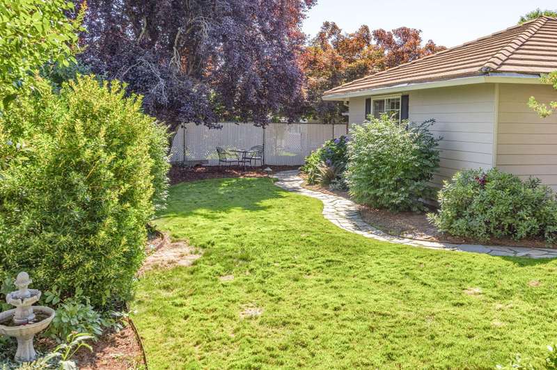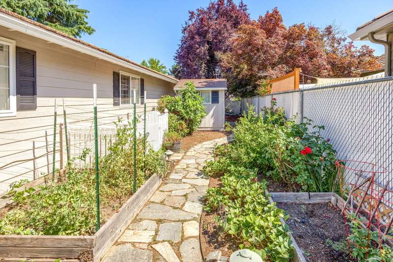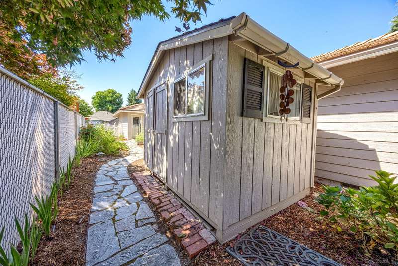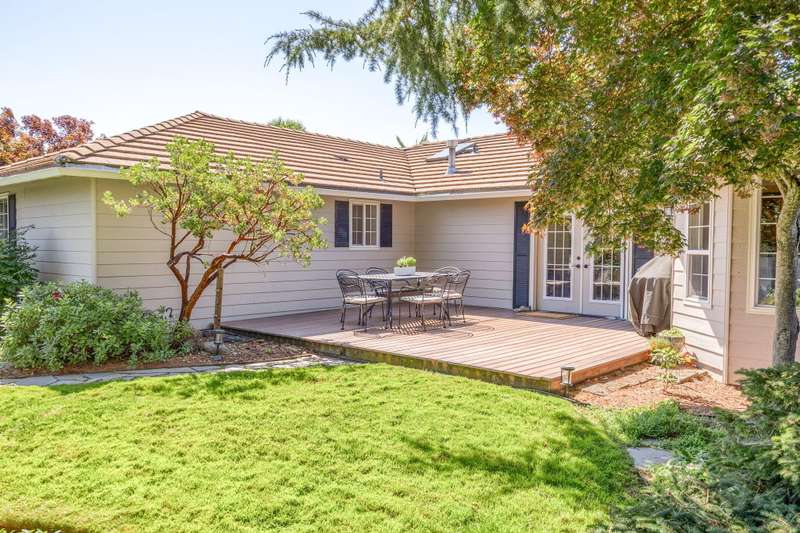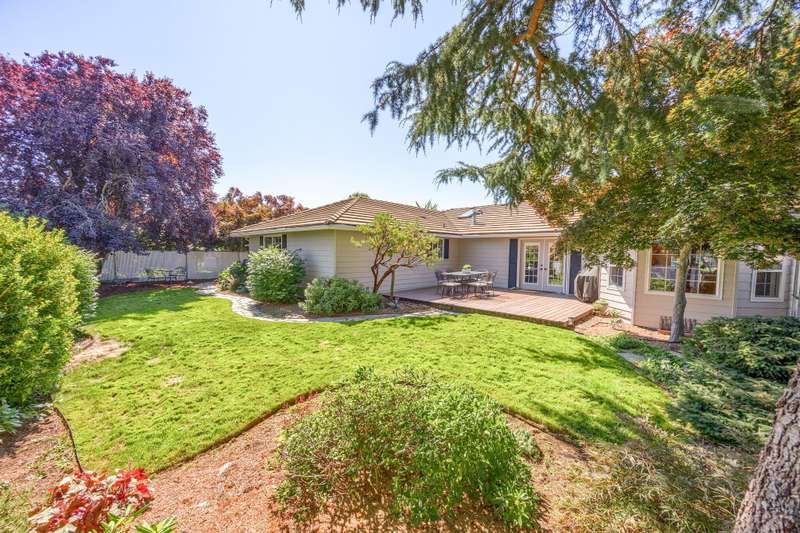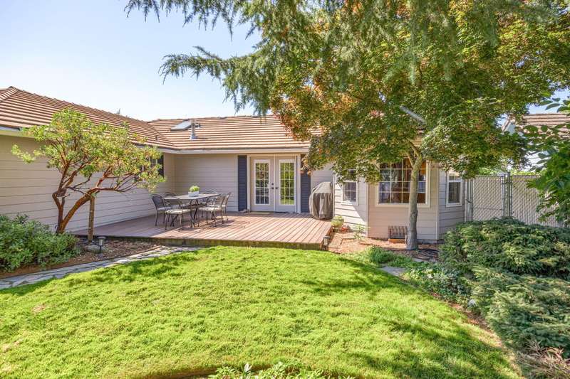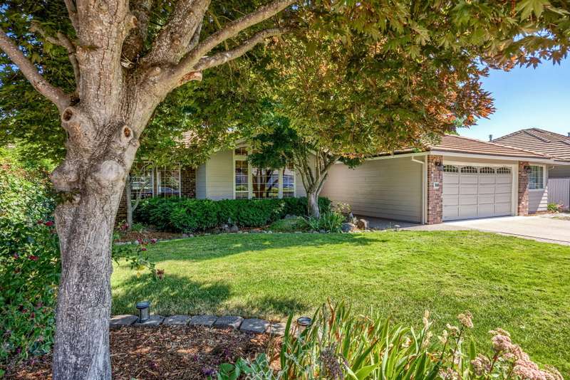 Meticulously maintained single level home in sought-after Jackson Creek Estates! Featuring vaulted ceilings, tile roof, great floor plan w/2 living areas—perfect for gatherings. The family rm features cozy gas fireplace & French doors that open to a beautifully landscaped backyard w/mature shade trees, roses, hydrangeas, garden beds, blueberry bushes, fig tree & stone path leading to a garden shed that could also serve as a playhouse. The Trex deck offers a lovely space to gather & enjoy meals outdoors. Updated kitchen w/Corian counters, newer appliances & cheerful breakfast nook that enjoys backyard views. Spacious primary suite w/extra large walk-in closet & completely remodeled bath. Guest bath is light filled w/skylight. Extras include hardwood flooring, updated lighting, central vac, attic storage & don't miss the FULL BAY workshop area w/shelving & 220V. RV pkg in the front w/flagpole. Fresh exterior paint (~5 yrs ago) & recent interior paint. This is where quality & value meet
