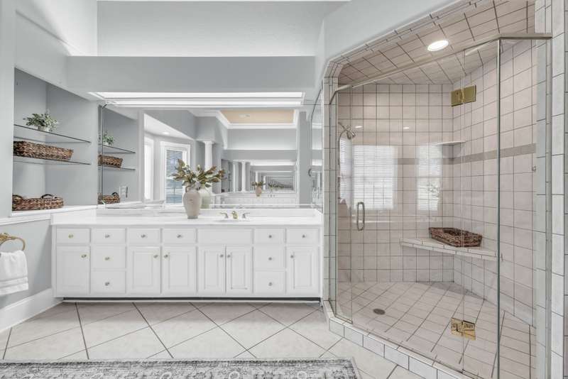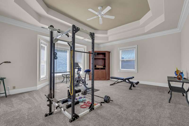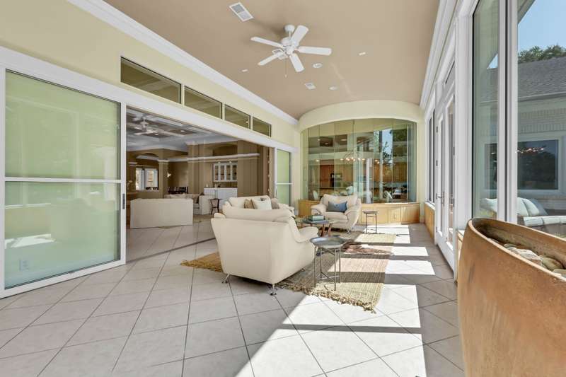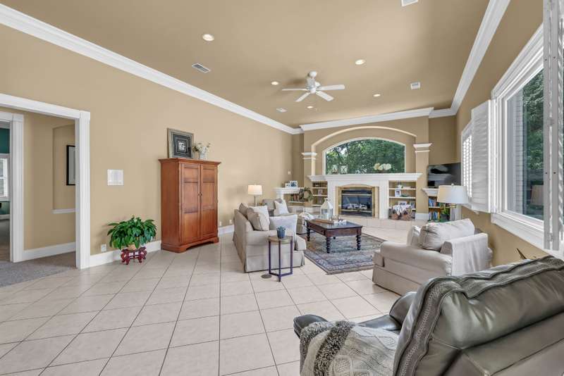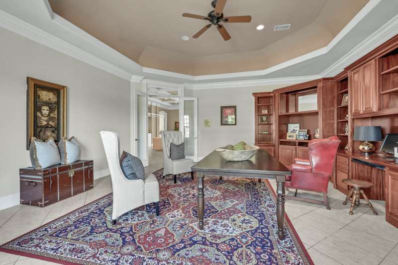 The oversized primary suite is a true retreat, offering an expansive en-suite bathroom, a massive walk-in closet with built-ins, and an attached fitness room for ultimate convenience. The thoughtful floor plan includes a dedicated office for remote work, a charming Florida room filled with natural light, and a tornado shelter for added peace of mind.