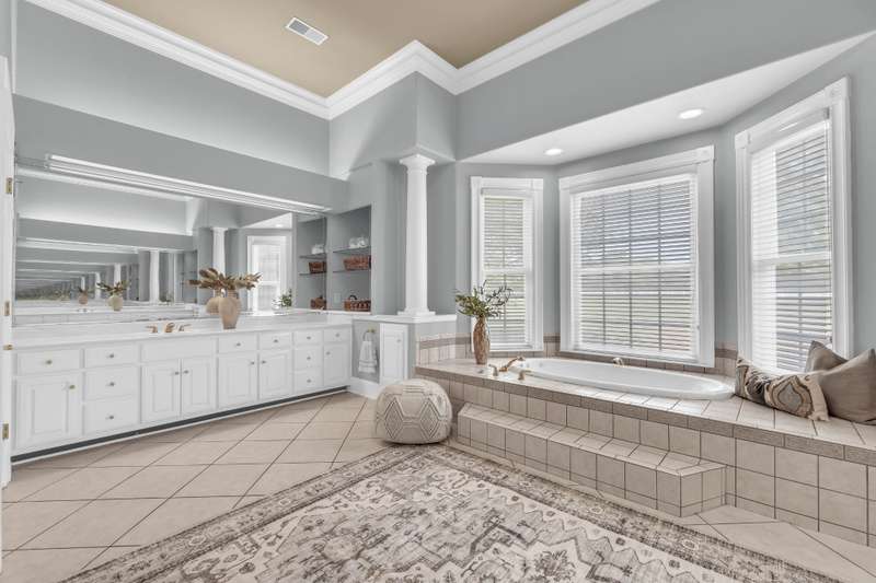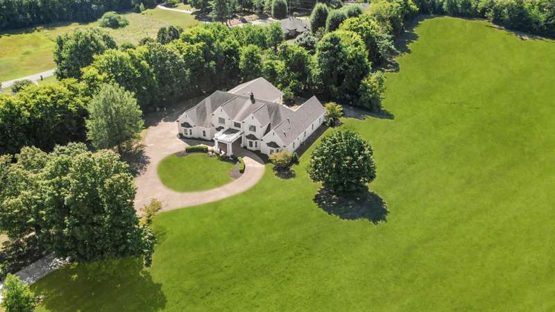 Stunning and stately, this impressive 8,300 sq. ft. residence sits gracefully on 1.88 acres, reached by a picturesque tree-lined driveway and highlighted by a grand porte-cochere. Every detail of this home exudes sophistication and comfort. Inside, the welcoming foyer opens to formal and casual living spaces, including a formal dining room and a beautifully designed eat-in kitchen featuring double islands, an abundance of custom cabinetry, a butler's pantry, and stainless steel appliances--perfect for entertaining.