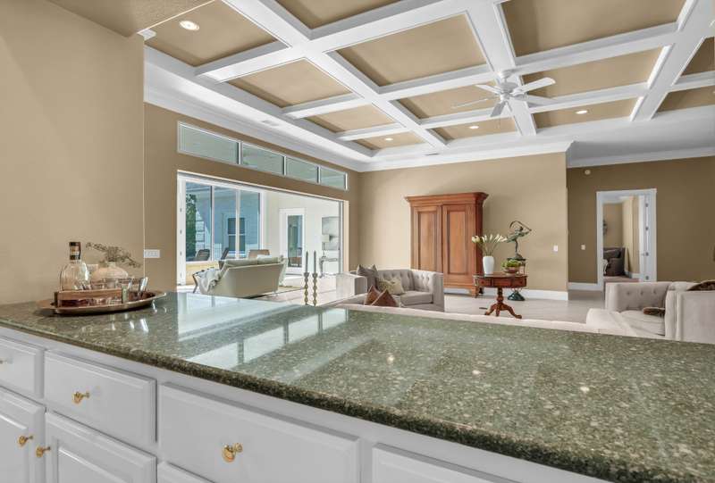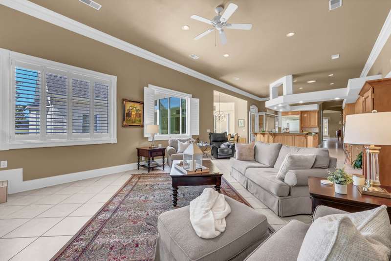 Elegant details are found throughout--from coffered ceilings and intricate trim work to the seamless flow between rooms. Outdoor living is equally impressive with an open patio overlooking the manicured grounds, complete with an irrigation system to maintain the lush landscape. Additional highlights include 3 spacious bedrooms, two and a half bathrooms, a three-car garage, and refined finishes that elevate this home's timeless appeal.