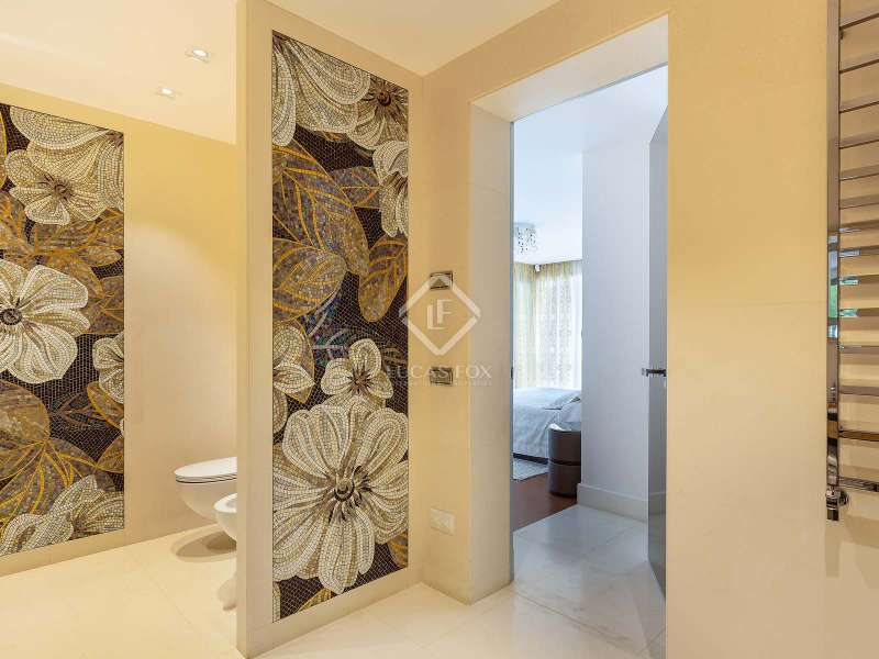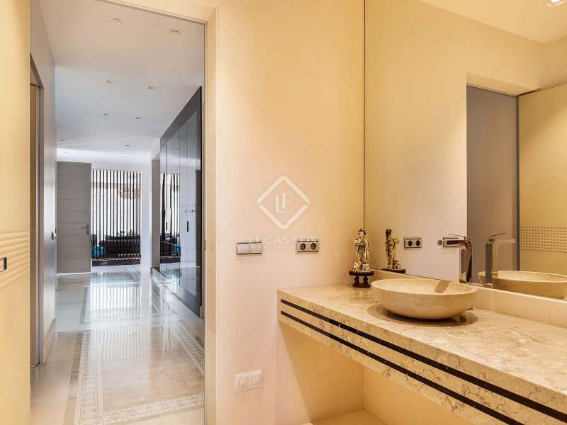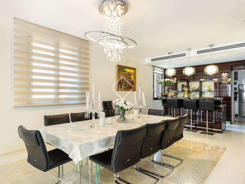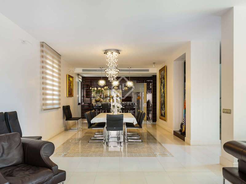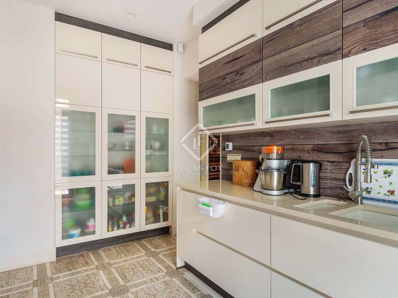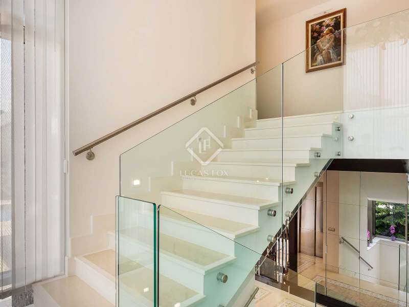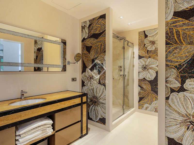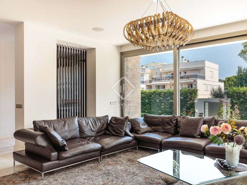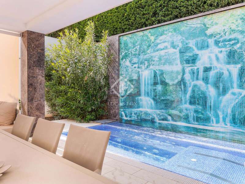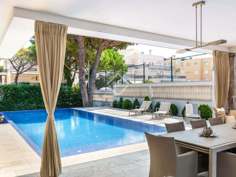 This impressive modern villa with a built area of 837 m² occupies a privileged location at the heart of Playa de Aro, on the Costa Brava. With the beach and all other amenities just 2 minutes away on foot, this is an ideal location for a coastal family home. Built in 2015 the finishes are modern and of very high quality. On the main floor we find the spacious, sunny living room with a fireplace and access to the chill out terrace where we also find the heated pool and jacuzzi, the dining area with an island and a fully equipped kitchen diner with all appliances and access to the beautiful garden. Lastly on this floor we encounter a bedroom with an en-suite bathroom with a shower and a spacious terrace. The first floor offers 2 immense bedroom suites with a shower, a large dressing room and a private terrace each. There is a third bedroom suite with a shower on this floor. On the lower ground floor is a large cinema and games room, a climate controlled wine cellar, a utility room and a 2-car garage. The house has a lift to every floor and all rooms have large windows that allow plenty of light in. Additional features include the 9 solar panels that fuel the heating, as well as mains gas underfloor heating, an interior and perimeter alarm, security cameras in the garden, a diesel generator for back up in the case of a power cut and a private water well. A modern, luxury residence in Playa de Aro.