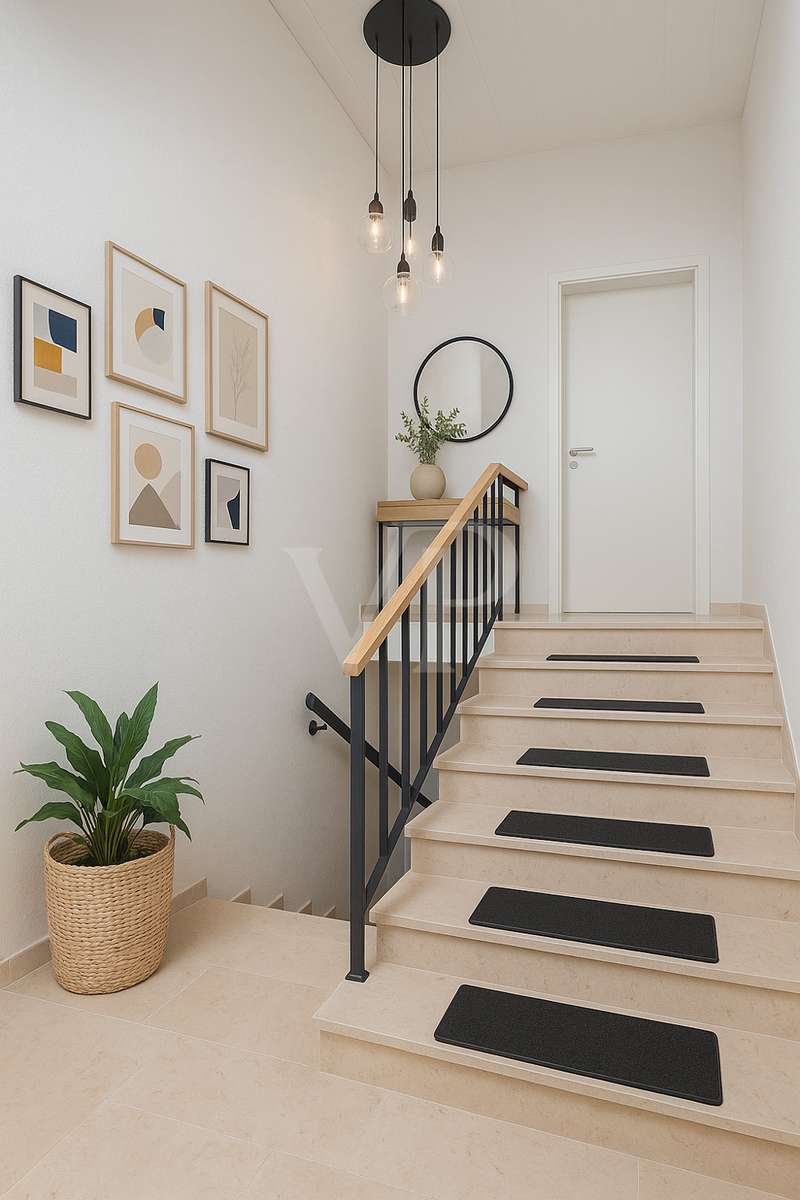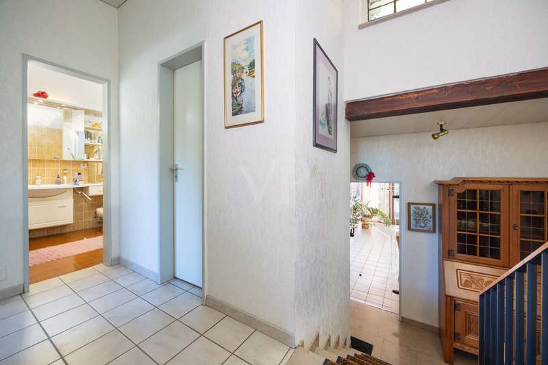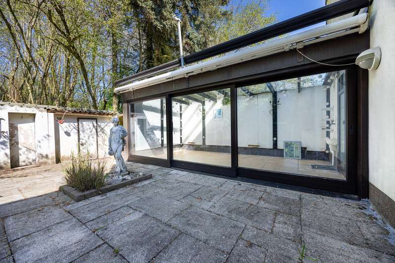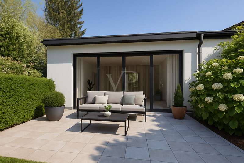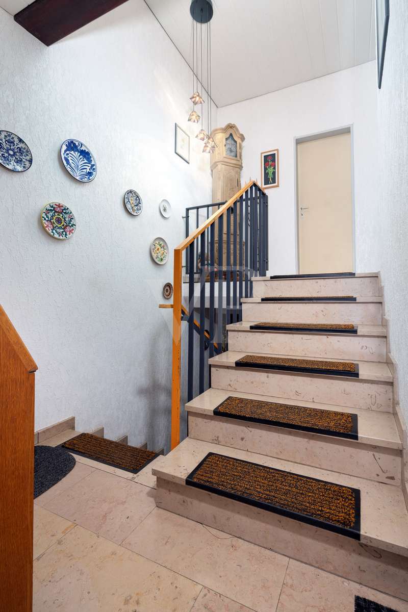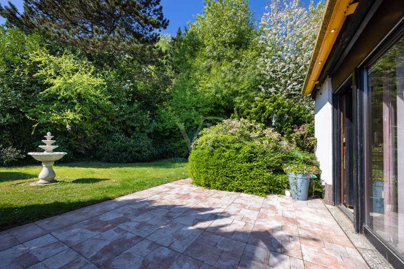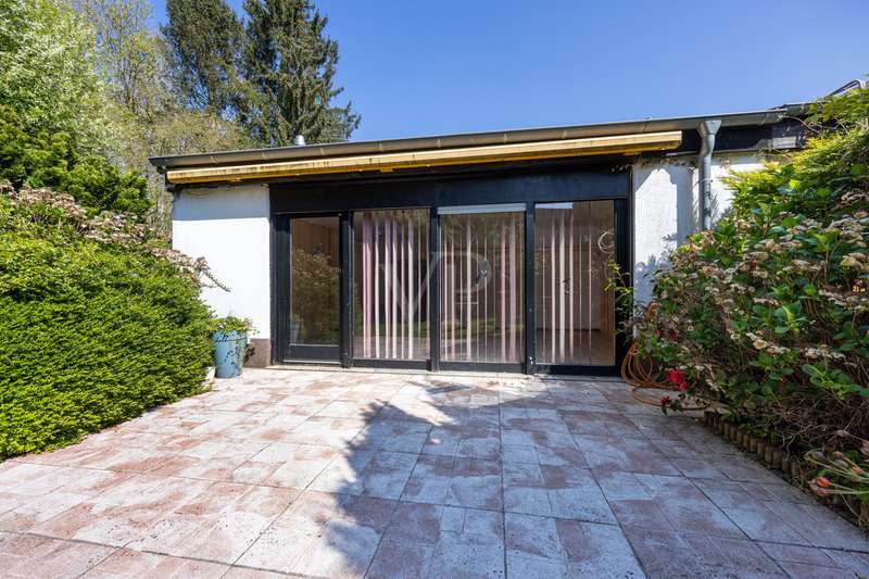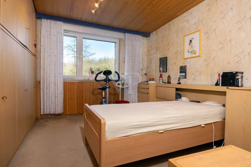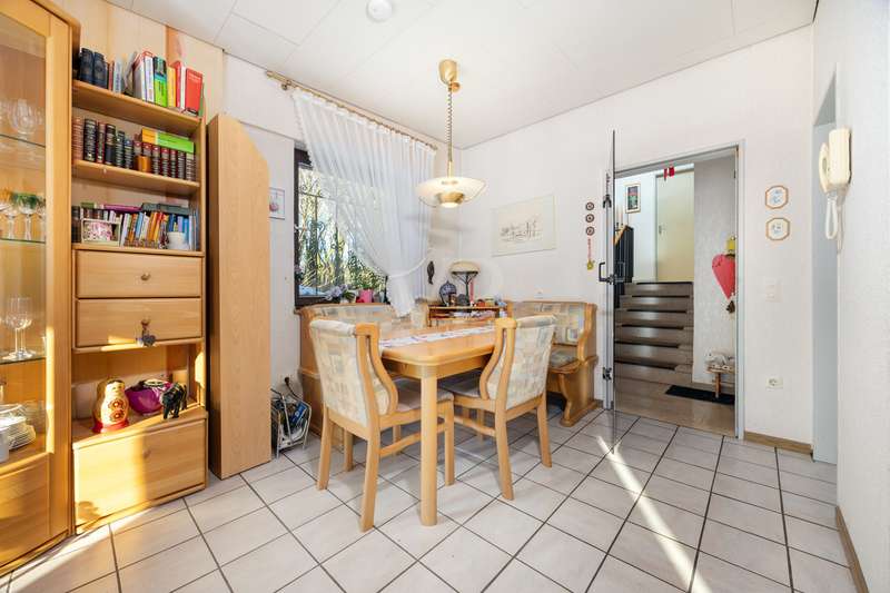 For sale is an attractive end-terrace house built in 1973, which impresses with a variety of features. The property offers a living space of approx. 123 m² and is situated on a generous plot of approx. 684 m². This space offers sufficient room for individual living as well as for a variety of outdoor activities. The house has four rooms, including three well-proportioned bedrooms, which are ideal for families or couples who value extra space. Two bathrooms offer sufficient comfort to avoid morning bottlenecks and are functionally designed. A particular highlight is the underfloor heating, which ensures a pleasant indoor climate not only in the winter months. The roof covering of the house was renewed 10 years ago. The area with a full basement offers additional storage space and potential uses. It also houses a converted party cellar with a fireplace, which allows for convivial evenings in a cozy atmosphere. The property is also equipped with a conservatory, which is heated with an infrared radiator and can therefore also be used to enjoy the garden on cooler days. A brick-built garden shed offers additional storage space or can be used individually. The direct connection from the garage to the house provides extra living comfort, especially in bad weather. The spacious garage is a valuable element that eliminates the need to search for a parking space and offers additional storage space for tools or garden equipment. There are also plenty of parking spaces around the house, providing additional convenience for residents and visitors. The house is located in a quiet cul-de-sac, which means there is no through traffic and a pleasant living atmosphere is guaranteed. A neighborhood association promotes interaction and community among the residents, which further enhances the quality of life. The outside area of the house offers many design options. The area of approx. 684 m² allows ideas for a lovingly landscaped garden or a play area for children to be realized. A terrace is available for spending relaxing hours in the fresh air. All in all, this property presents itself as a perfect home that impresses with its diverse features and high level of comfort. The well thought-out room layout, the spacious basement area and the special features - such as the fireplace in the party cellar - make this house stand out. If you are interested in this property, we cordially invite you to arrange a viewing appointment to see the advantages of this house for yourself. This offer is an excellent opportunity for anyone looking for a house with charm and substance.