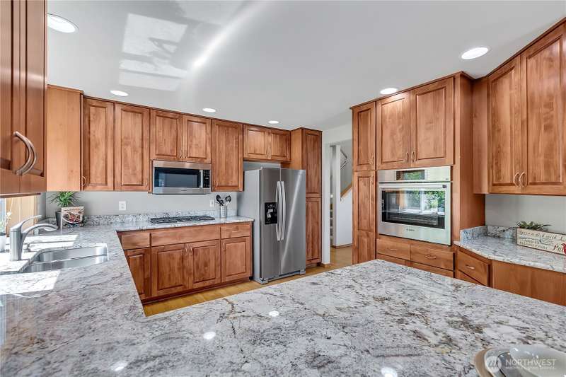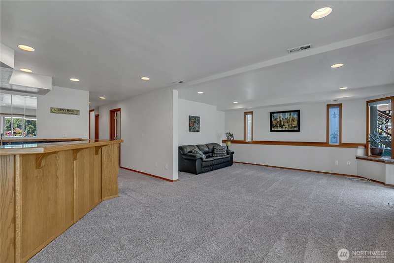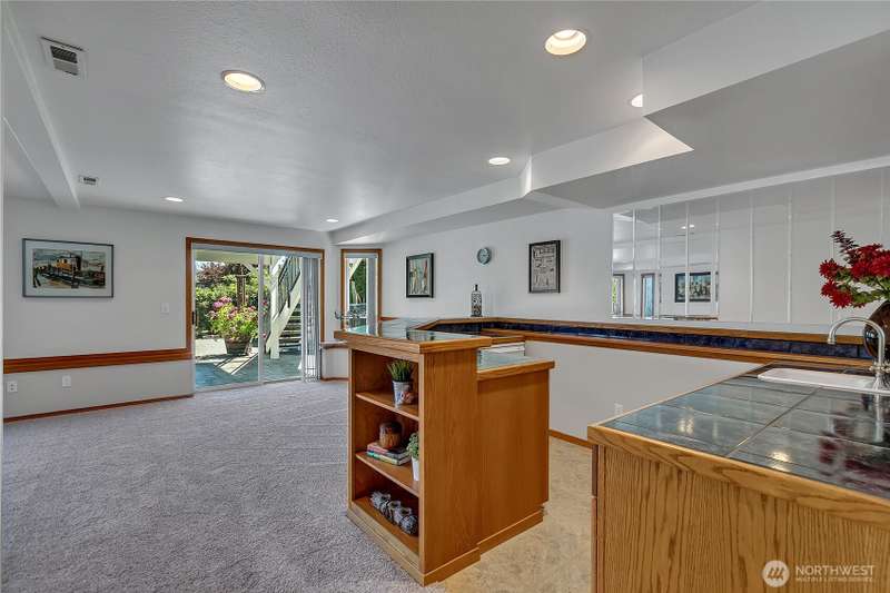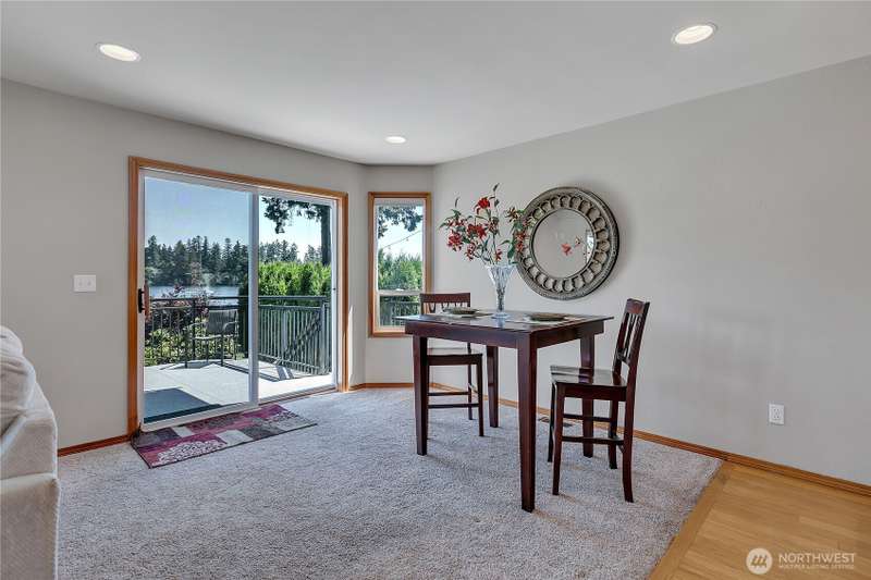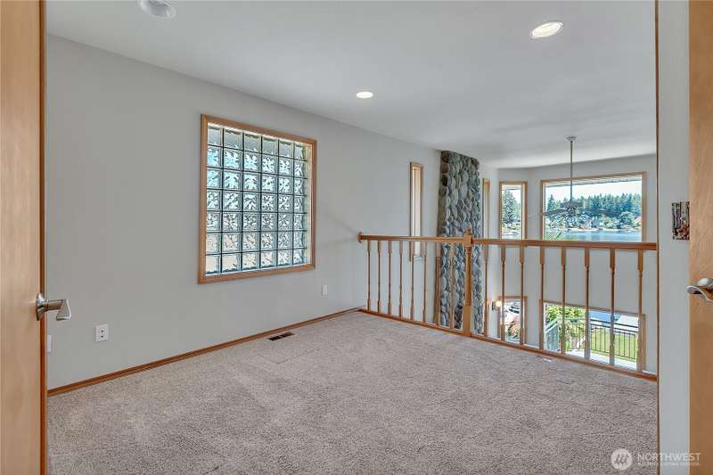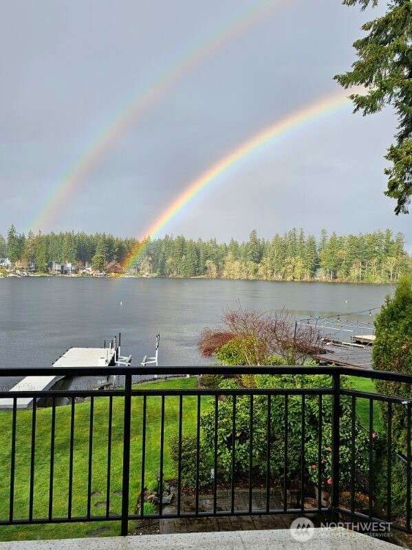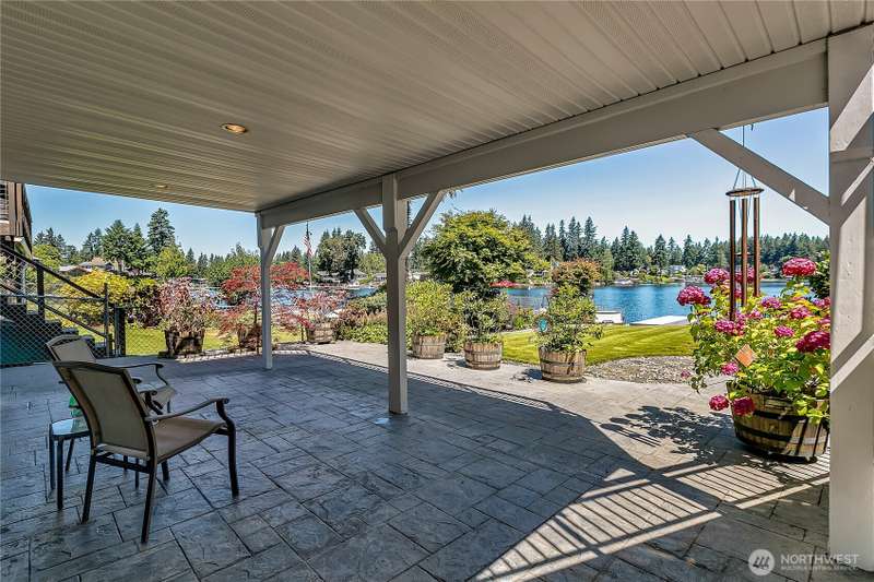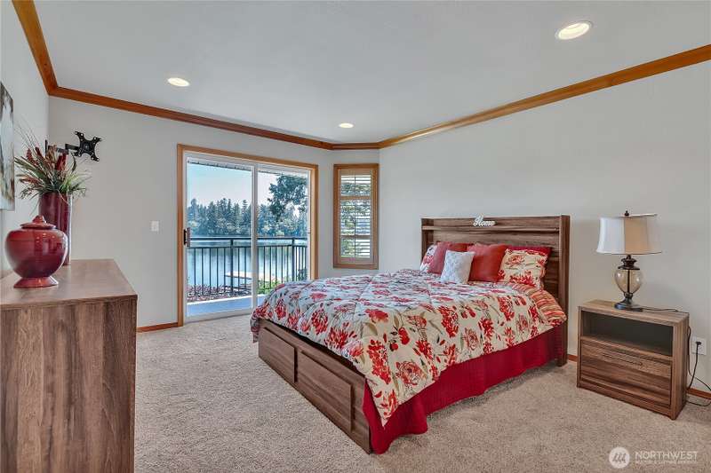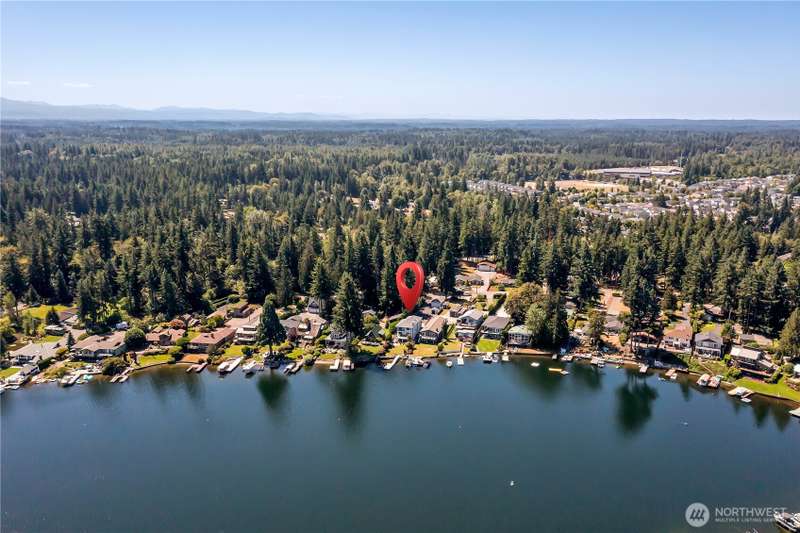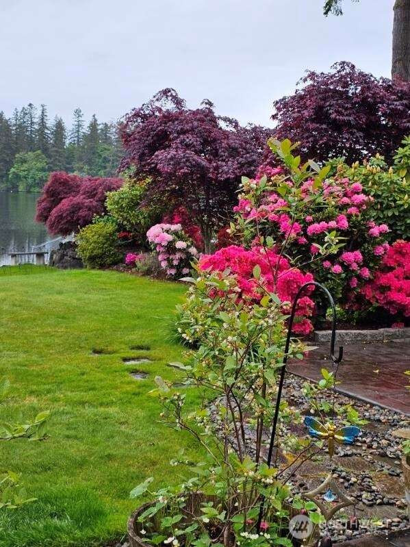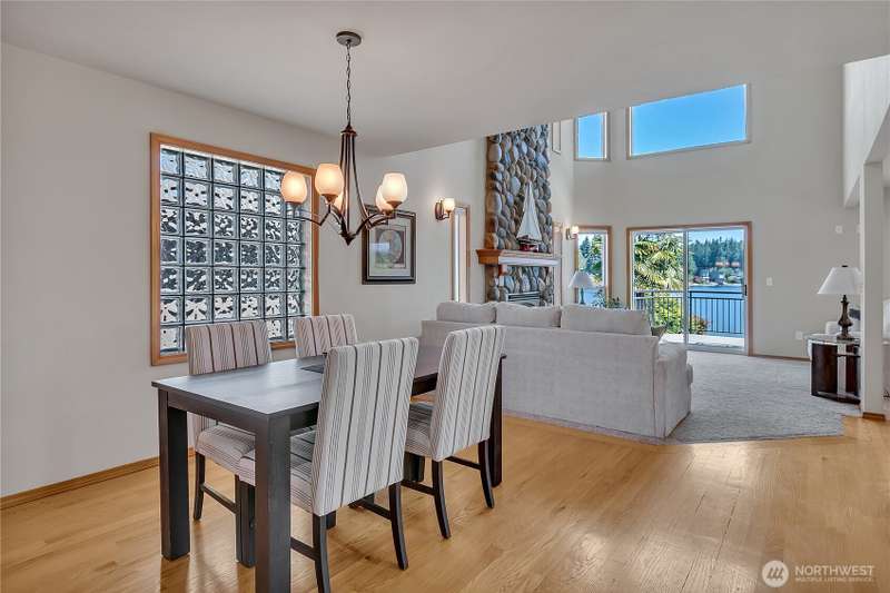 Lake living at its best! Beautiful, deep water, 40 feet of lake front home with soaring ceilings, open floor plan, gorgeous river rock fireplace, large deck, central air, remodeled chef's kitchen with gas cooking and newer appliances, newer carpet and paint, primary bedroom with deck, oversized bath and walk in shower, 2 more upper bedrooms with custom closets, additional full bath & upper laundry. Lower level boasts huge rec room, wet bar, full bath, guest bedroom, tons of storage, opens to patio and beautifully landscaped grounds, blueberries and potted plants for new owner, newer dock and boat lift. Gated entry, detached garage, shed, tons of parking! Newer roof and gutters, stand-by generator, connected to sewer, this one has it all!
