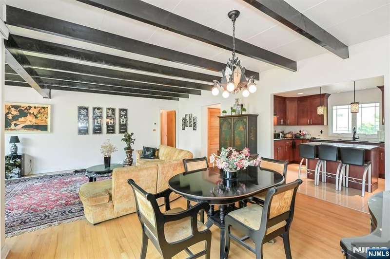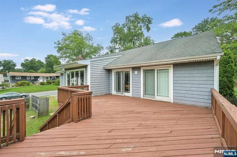 Welcome home to this beautifully maintained 4-bedroom, 2.5-bath Ranch, ideally situated on a manicured corner lot in a sought-after neighborhood. Step through the inviting entry vestibule into a warm, well-appointed interior. The spacious living room welcomes you with wood beam ceilings and abundant natural light from large windows, creating a bright and comfortable atmosphere. Flow seamlessly into the dining room perfect for intimate dinners or festive gatherings. The updated eat-in kitchen features custom cabinetry, stainless steel appliances, ample counter space, and a center island with breakfast bar. Adjacent to the dining room, discover a cozy family room, ideal for relaxing at the end of the day. Down the hall, the primary suite offers a large closet and private bath with tub/shower and storage vanity. Two additional bedrooms, powder room, and a laundry room complete the main level. The fully finished walkout basement is ideal as an in-law suite, boasting a private entrance, large bedroom with sitting area, bonus kitchen, full bath and laundry. A full attic provides great storage or potential for future expansion. Enjoy the fully fenced backyard with deck and patio perfect for outdoor entertaining. The oversized 2-car attached garage offers plenty of room for vehicles and storage. Conveniently located near NYC transportation, shopping, and dining, this home offers space, flexibility, and a prime location.
