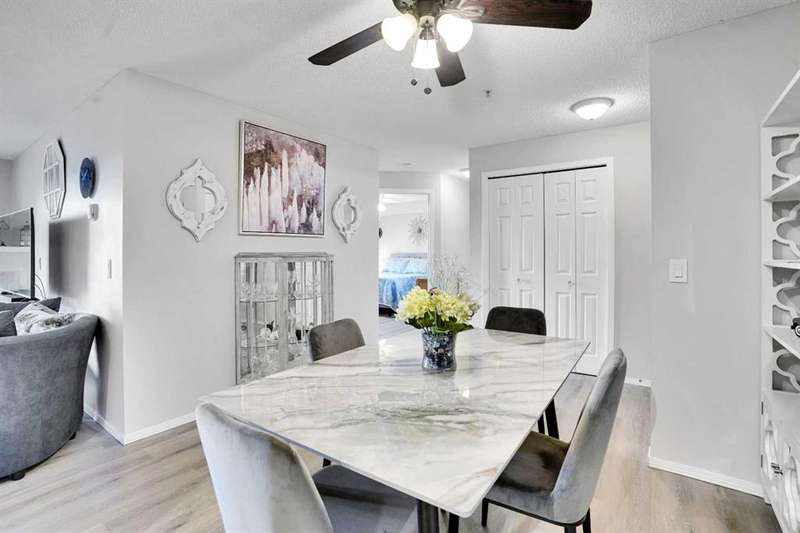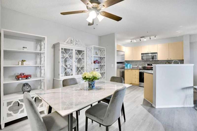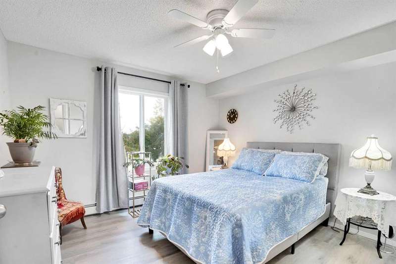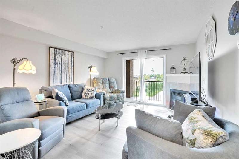 Welcome to this charming two bedroom, one bath home backing onto Iron Horse Park! Imagine enjoying sun filled days on your south facing deck, sipping coffee, or your beverage of choice, while soaking in the peace and quiet of the expansive green space. This home features warm-toned, newer laminate flooring throughout with no transition strips, meaning no trip hazards with a seamless flow from room to room. The spacious foyer offers a large double closet and opens up into the dining room, kitchen, and living room. You'll find a recessed nook perfect for a dining hutch, plus plenty of space for a large table, ideal for family meals. The kitchen is thoughtfully designed with ample storage and counter space for easy meal prep, along with bar-height seating that’s both functional and perfect for entertaining. The stainless steel appliance package includes a fridge, newer stove, dishwasher, and built-in microwave. The bright and spacious living room features a cozy corner gas fireplace and offers stunning views of Iron Horse Park. Nearly every room in this home overlooks the park, creating a peaceful, relaxing atmosphere. Both the primary and second bedrooms are tucked away from the main living areas for added privacy and also back onto the park, quiet enough to comfortably leave the windows open at night. The four piece main bath is conveniently located nearby. Additional features include an in-suite storage room with front load washer and dryer, and a convenient corner parking stall with plug-in access for colder months. Enjoy easy walks to Sobeys, Tim Hortons, and a variety of other nearby amenities. Condo fees include electricity, heat, water, sewer, landscaping, snow removal, and exterior maintenance. If you’re looking for a private, peaceful home with green space views and walkable convenience, this could be the perfect fit. *Sorry, dogs not allowed*