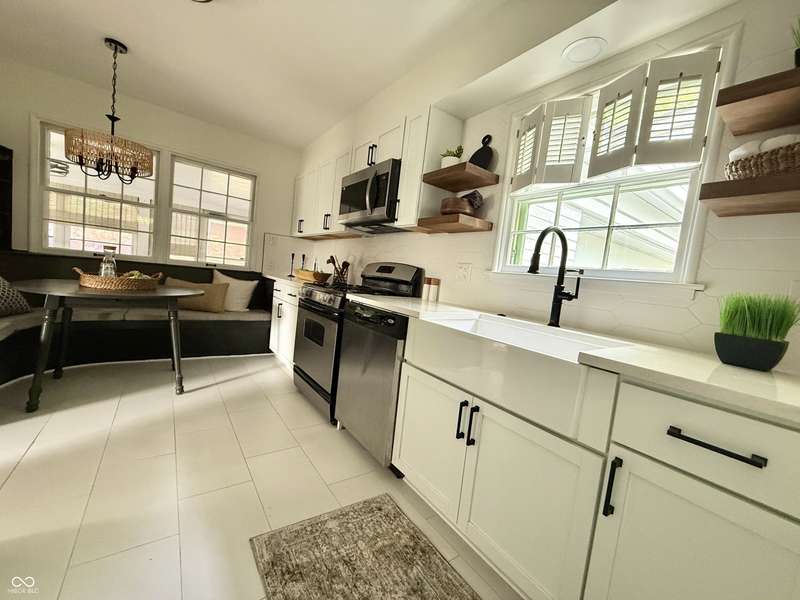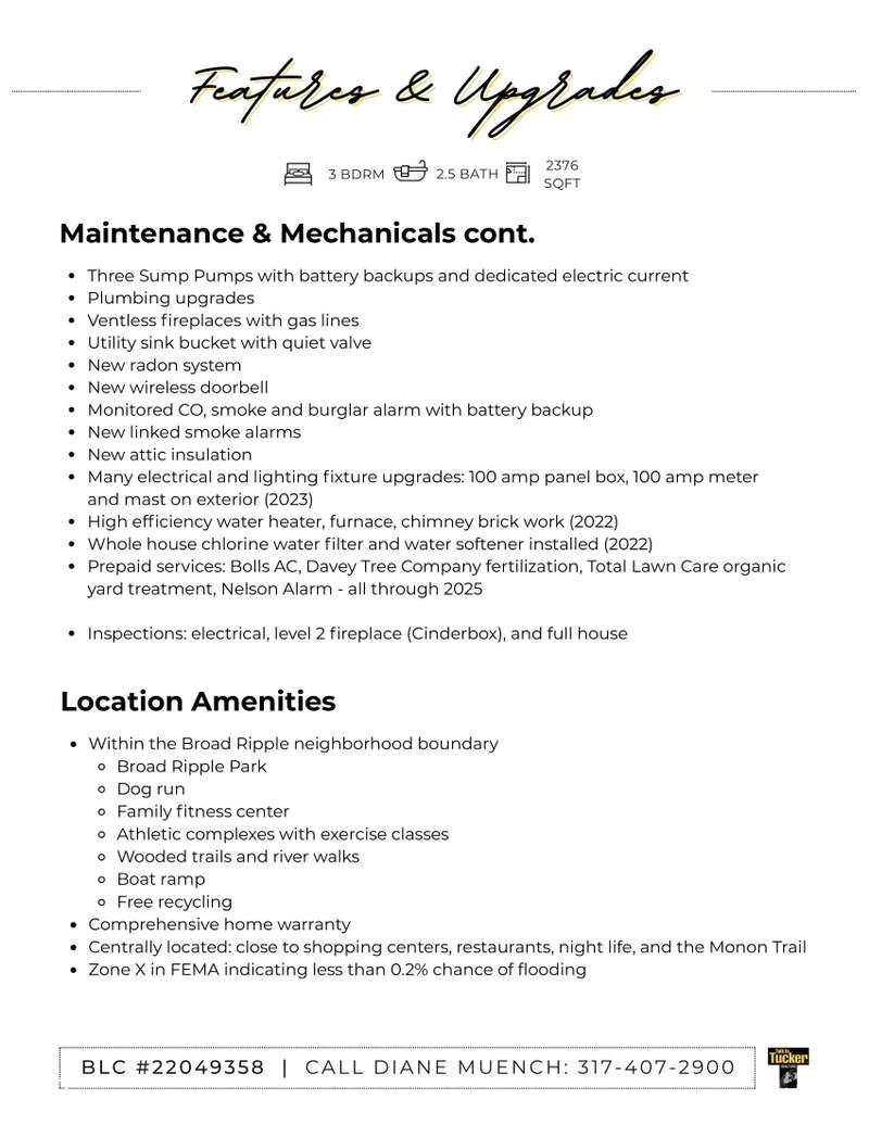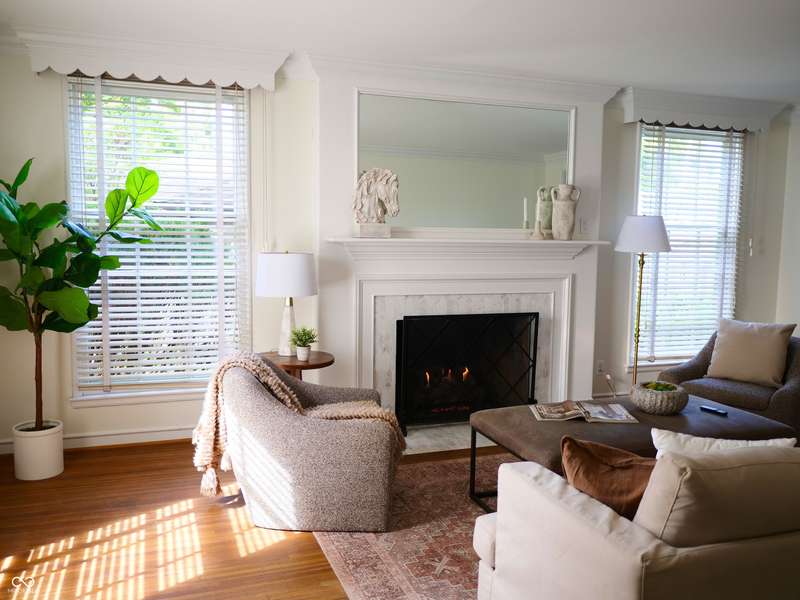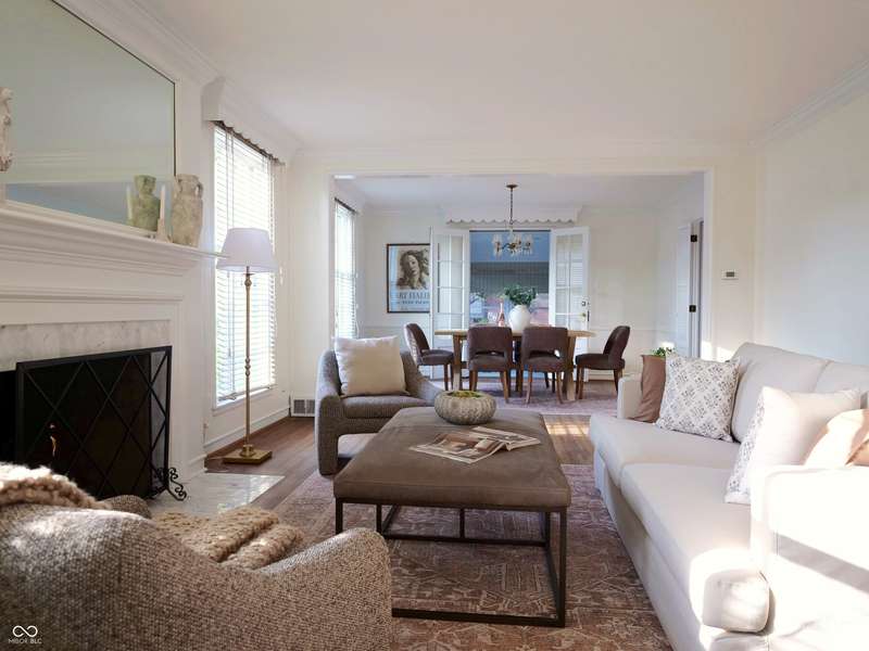 Charming Historic Elegance Meets Modern Living in Kesslerwood! Welcome to this beautifully renovated home in the highly sought-after Broad Ripple Kesslerwood neighborhood! Situated on a generous .27-acre lot, this timeless property blends the charm of the historic era with modern upgrades designed for today's lifestyle. Step inside through a separate foyer into light-filled, spacious living and dining rooms, featuring a cozy newly marble tiled and rebuilt fireplace and a stunning dining room with original chandelier. You'll love the protected original hardwood floors throughout, preserving the warmth and authenticity of the home. The dining room gives way to a 20' x 10' three seasons porch lined with windows, a perfect place for morning coffee or evening relaxation, and giving access to the fully fenced backyard. The newly renovated kitchen boasts all-new cabinetry, sink, flooring, lighting, floating shelves and a built-in cozy bench eat-in area, perfect for everyday living and entertaining. The primary ensuite includes a brand-new, spa-inspired bathroom, while additional bathrooms have been thoughtfully updated. The lower level features a large rumpus room with new GREENGUARD LVP flooring and a second newly rebuilt gas fireplace-plus a huge laundry/flex space featuring tile floor and painted walls, ready to customize as you wish: workout or dance room, art studio, play room. Additional highlights include: * Brand-new roof * Fresh interior and exterior paint * Attached 2-car garage * Professionally refreshed landscaping with edged beds, trimmed trees, and fresh mulch *many more updates listed in photos. Don't miss this rare opportunity to own a character-filled home that offers both historic charm and modern convenience, all in a prime Broad Ripple location! Property presently does not have a homestead exemption, so taxes will be significantly lower when buyer files for a homestead.