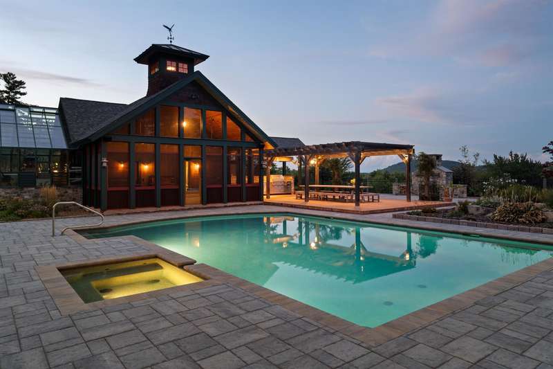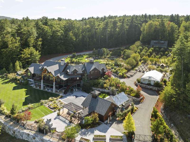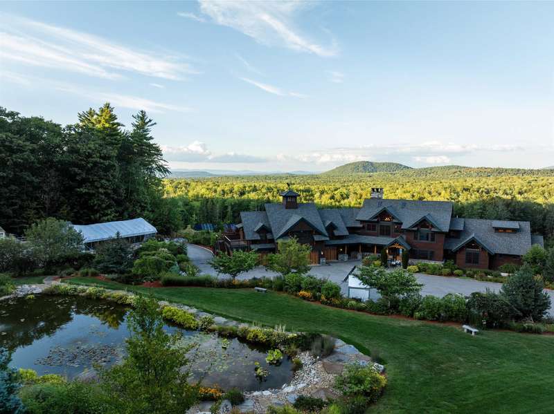 Extraordinary 7,000+ sq ft timber frame estate on 121 acres of pristine land with panoramic mountain views. This custom-built sanctuary offers the ultimate in privacy, sustainability, and luxury living. Designed as a legacy property, every detail was thoughtfully crafted, from the soaring Douglas Fir beams, grand stone fireplaces, extensive storage, expansive decks, and mahogany finishes. Entertain in style with an English-style pub, multiple guest suites, a state-of-the-art entertainment network, heated gunite pool & hot tub with a chemical-free EcoSmart system, pool house with an outdoor kitchen, pergola, and fireplace. A large woodshop, equipment barn, and multiple garages offer ample space for hobbies and storage. Additional outdoor amenities include separate koi and bass ponds, rose garden, a yoga platform with water feature, and 1.5 miles of private trails. Gardeners will delight in 70+ fruit and nut trees, 44 raised beds, greenhouses. Electrically independent with a 135KW solar array, battery storage, and two EV chargers. The estate was built as a forever home with an elevator and handicap accessibility. Located in tax friendly NH, near Fryeburg Airport, major ski resorts, golf, and the White Mountain National Forest. 80 minutes to Portland and 2.5 hours to Boston.