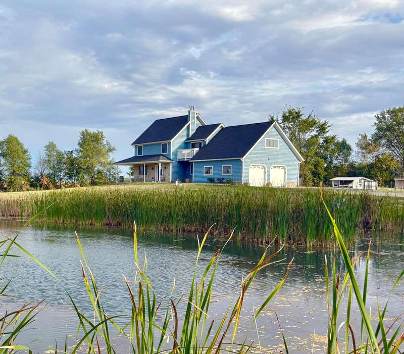 27+ beautiful rolling acres with pond! Fall in love with this secluded home featuring 4 bedrooms, 2.5 baths, full basement, 3 season room, wraparound porch, new roof 2023, 2 new Lennox A/C units, Anderson windows and doors, sideload 2 car garage, completely renovated primary suite with luxurious ensuite and private balcony! Amazing laundry room that could be an exercise room, craft room, endless possibilities! **Home is not visible from the road**