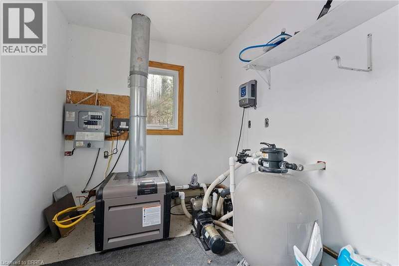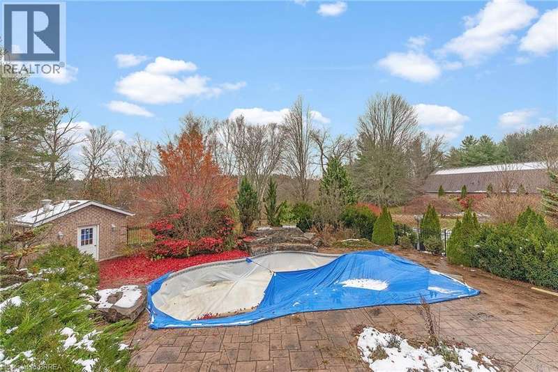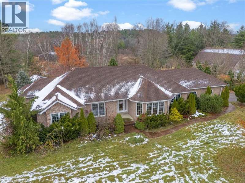 Exceptional acreage living (50+) featuring spacious outbuildings, pastoral forest setting, brick bungalow accessible with walkout, fully landscaped grounds and resort like pool area. Offering three main level bedrooms, a separate garage outbuilding with potential living quarters and services, and yet another additional barn with endless monetization possibilities, this one of a kind executive offering is sure to impress anyone seeking the privileges of privacy, nature and additional dwelling spaces. (id:7434)