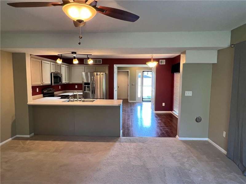 Charming 2-StoryTownhome with Private Backyard!Welcome home to this inviting 2-story plan offering 3 bedrooms, 2.1 bath and a 1-car garage. The main level features a spacious great room with a cozy fireplace and access to the patio overlooking a private backyard. The kitchen comes complete with all appliances including refrigertor-and a convenient half bath on the main level.Upstairs, the primary suite boasts a vaulted ceiling, double vanities, and an adjoining walkin closet. Two additional bedrooms share a full bath, while the upstairs hallway included washer and dryer (staying with the home)Additional updates include a 3 month old heating and cooling system!This move in ready townhome combines comfort, convenience and moden updates-don't miss it.