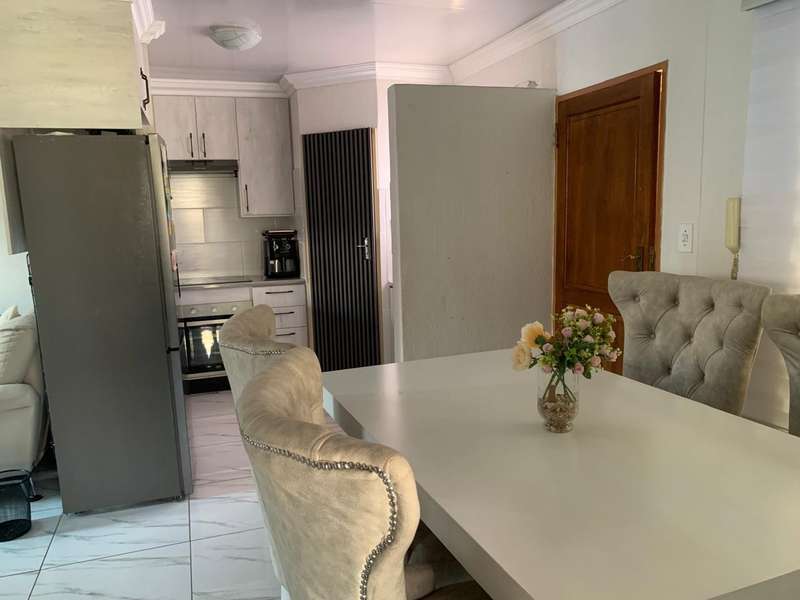 Modern comfort meets convenience in this neat 96 sqm 2-bedroom, 1-bathroom simplex – the perfect lock-up-and-go home in a sought-after security estate. Step into a stylish open-plan lounge flowing seamlessly into a fitted kitchen with an electric hob, undercounter oven, and pantry – designed for both functionality and flair. The home boasts modern finishes throughout, creating a fresh and welcoming atmosphere. Enjoy outdoor living on the private patio, while parking is a breeze with double garages plus an additional open parking bay. Added conveniences include prepaid electricity and peace of mind in a well-managed security estate. Perfect for first-time buyers, professionals, or those seeking a hassle-free, lock-up-and-go lifestyle.