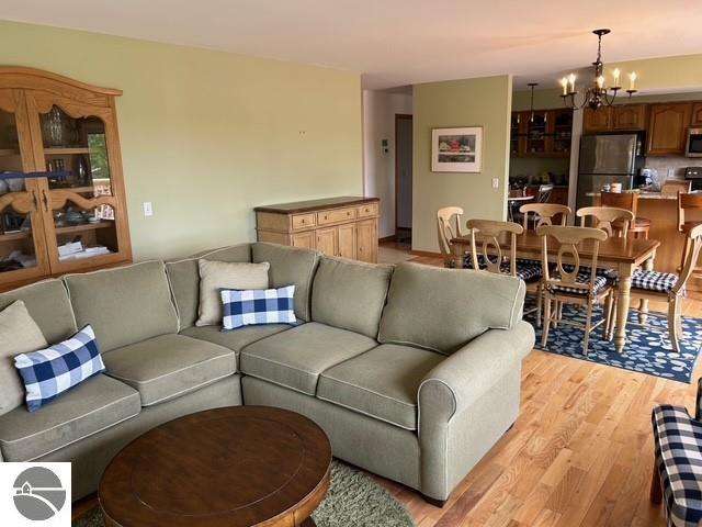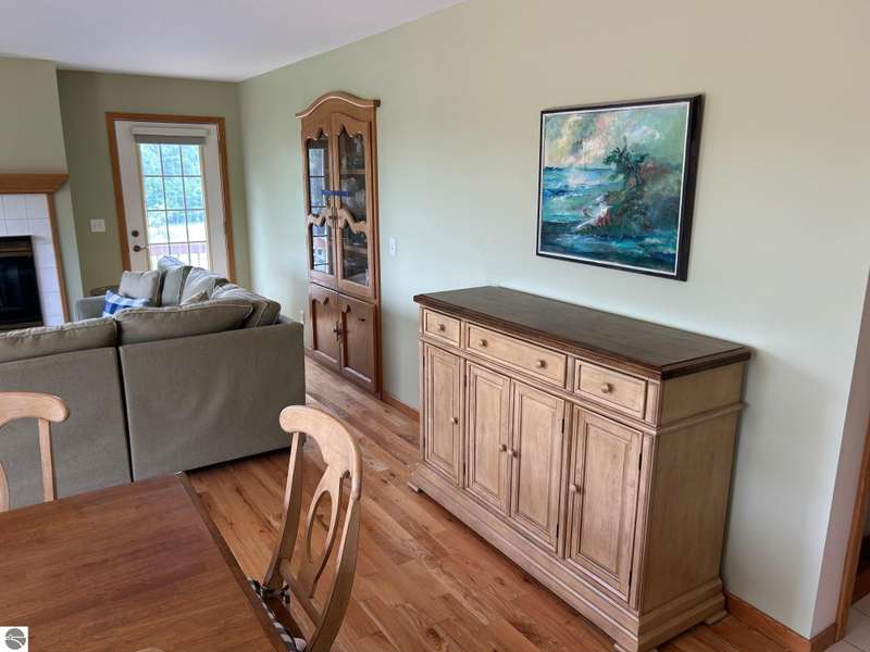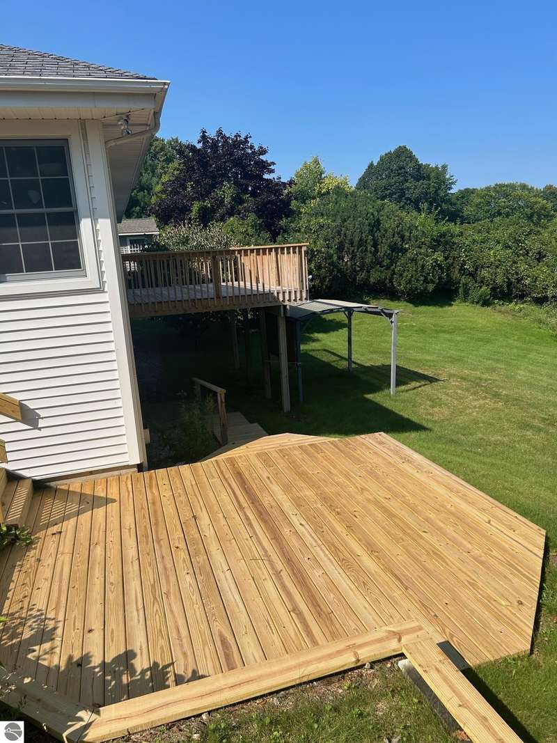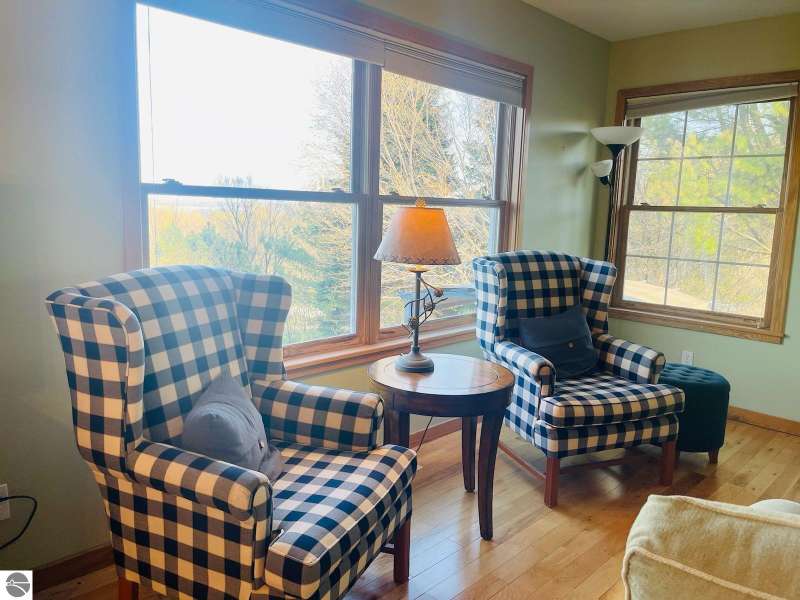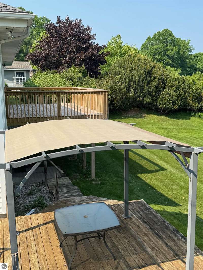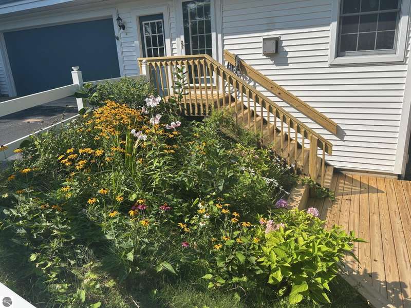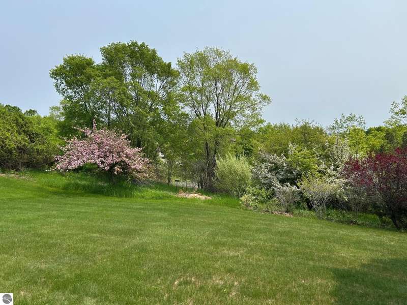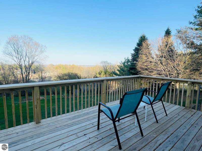 Charming Ranch Home in desirable Knorrwood Bluffs subdivision on Stony Point with sunrise West Bay Views! Situated on a large, private lot in a quiet residential neighborhood just minutes from the quaint Village of Suttons Bay. This well- maintained Ranch-style home offers breathtaking sunrise views over West Bay and shared access to 700 feet of deeded sandy beach waterfront, ideal for swimming & sunbathing, kayaking or simply relaxing on the beach! Soak in the view while sipping your morning coffee from your newly built 20 x 12.5 ft. deck. Situated on a deep 2/3-acre lot with mature trees, flowering shrubs and perennial gardens, this home combines comfort, style and convenience. The open concept floor plan includes a bright and updated kitchen with abundant cabinetry, Granite countertops, breakfast bar, newer sink and stainless appliances. The adjacent dining area flows into a warm and inviting living room featuring solid Oak hardwood floors, built-in cabinets and a cozy gas fireplace. Step out onto the large deck to soak in the views or entertain guests in style. The walk-out lower level adds additional living space with a generous sized family room and abundant storage. There is room to expand for two additional bedrooms with egress windows and a full bathroom all rough framed and ready to be finished. Geo-Thermal heating system for maximum energy efficiency and year-round comfort. Additional features include a side-entry two-car garage and a beautifully landscaped yard designed for low maintenance and seasonal color. This home offers the best of Leelanau living - Natural beauty, scenic Cherry orchards and close proximity to the charming town of Suttons Bay with its many shops and restaurants. There are more than a dozen wineries, craft beer and cider all minutes away plus the Leelanau recreational trail and many nearby beaches and parks.