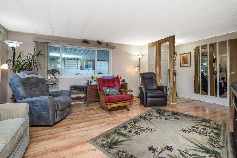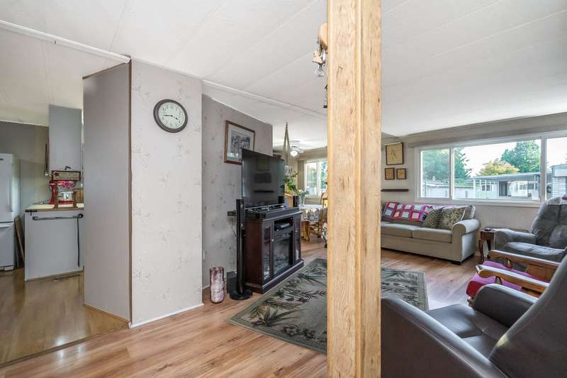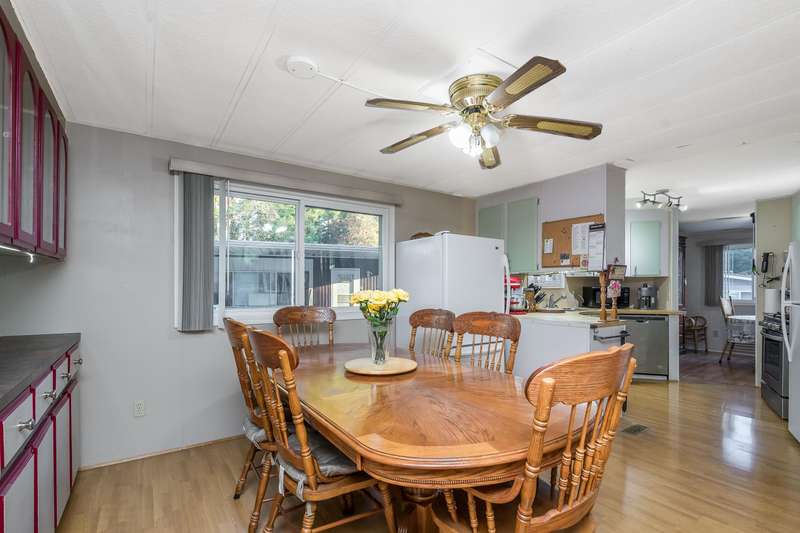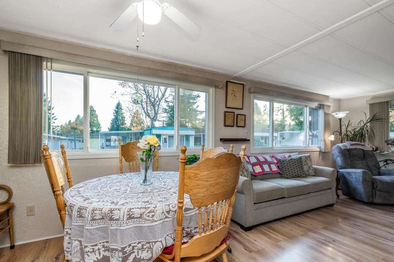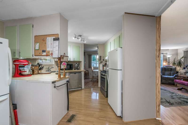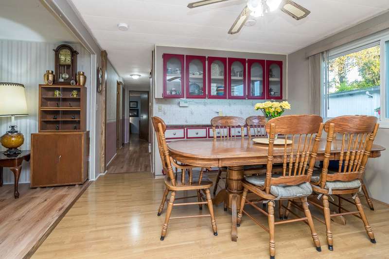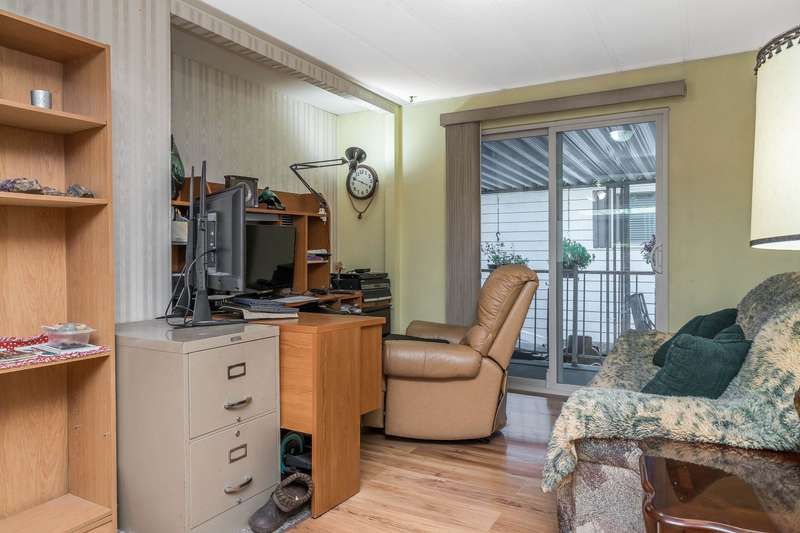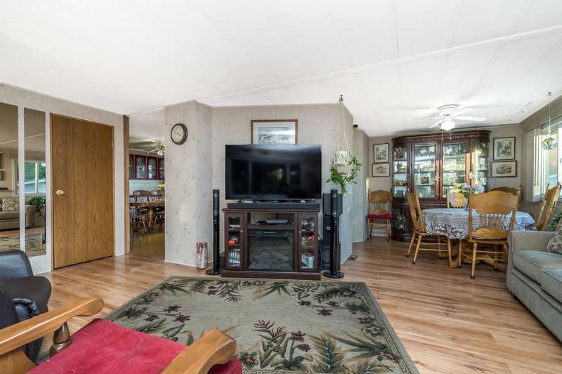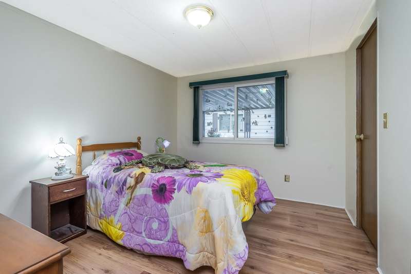 Welcome to Breakaway Bays A lovely community for families and retirees. This well cared for 1489 sq ft home. 2 Bed 2 Bath, (3rd Bdrm can be done), offers spacious living, Vinyl windows, new blinds throughout, 1 yr old heat pump, forced air and air conditioning, Gas stove, 5yr old water tank, 1yr old furnace, laminate floors throughout, attached wired workshop, large deck for entertaining, plexiglass greenhouse, 2 fridges, large bathrooms, close to all amenities, beach, schools, golf, shopping, transit, USA Border. Clubhouse has an outdoor heated pool, games room, library, lots of community activities in a very well run park. RV Parking available