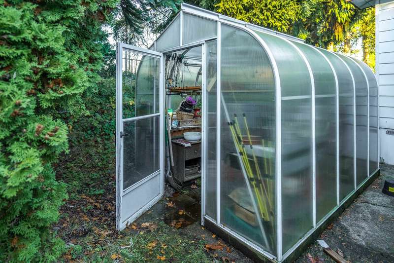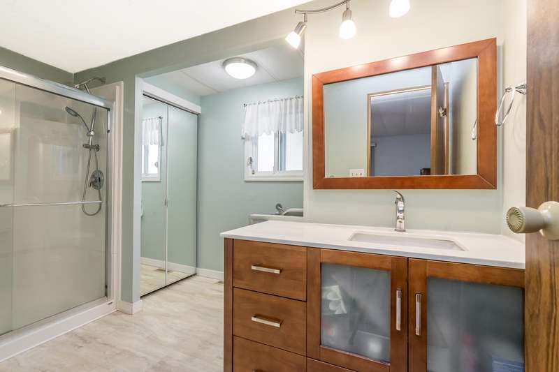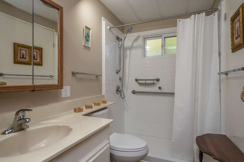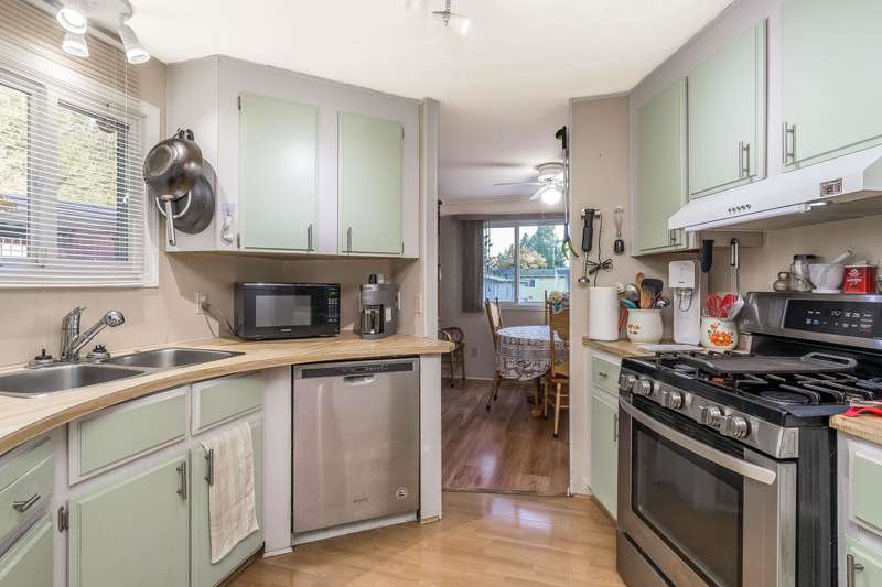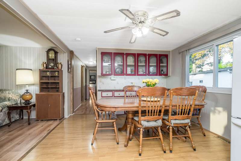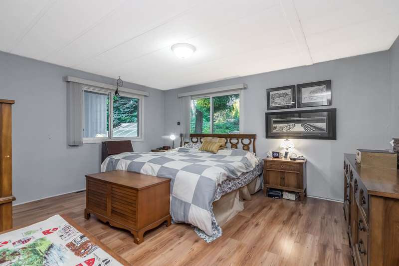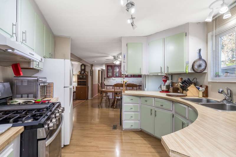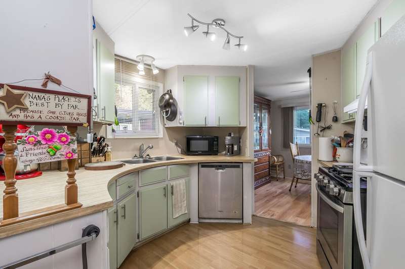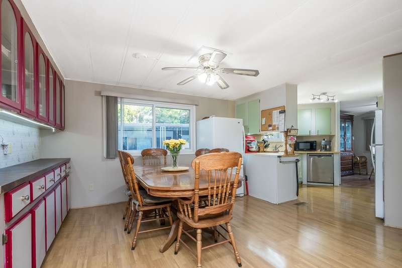 Welcome to Breakaway Bays A lovely community for families and retirees. This well cared for 1489 sq ft home. 2 Bed 2 Bath, (3rd Bdrm can be done), offers spacious living, Vinyl windows, new blinds throughout, 1 yr old heat pump, forced air and air conditioning, Gas stove, 5yr old water tank, 1yr old furnace, laminate floors throughout, attached wired workshop, large deck for entertaining, plexiglass greenhouse, 2 fridges, large bathrooms, close to all amenities, beach, schools, golf, shopping, transit, USA Border. Clubhouse has an outdoor heated pool, games room, library, lots of community activities in a very well run park. RV Parking available