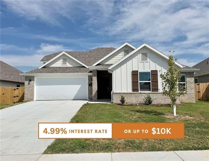 Fence, blinds and gutters included! Veronica Bonus Plan-New Construction home in the beautiful subdivision of Towne West. New Middle School across the street AND 2 Miles to Centennial Park. Short distance from downtown & the University of Arkansas, this home offers convenience & accessibility to everything the area has to offer. Upgrades in this home are sure to impress, with features such as quartz countertops, stainless steel appliances, linear fireplace, painted case opening in the living room, wainscoting in the entry & LVP flooring. Spacious open floor plan allows for entertaining, while the bedrooms offer space for rest and relaxation. The 4th bedroom upstairs would also be a perfect bonus room. Fully fenced backyard with sod and covered patio to relax on. Great investment opportunity, with its desirable location, modern features making it an attractive option for both personal enjoyment and financial gain.