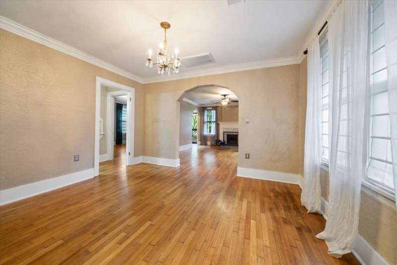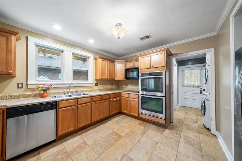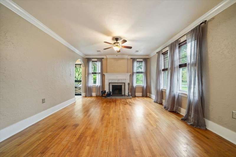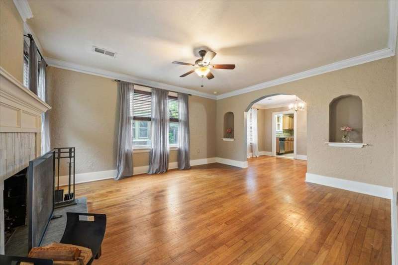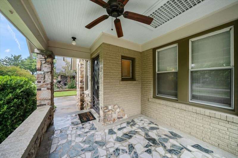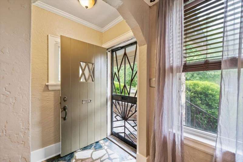 Gorgeous Vollintine-Evergreen Historic District. Brick and stone Tudor Style Craftsman Bungalow "Gingerbread House". Nicely enhanced to perfection with Art Deco style Driveway Gate and Entry Doors. Beautifully landscaped grounds! Charm abounds inside with fresh paint, 9' ceilings, Living room has a rebuilt / restored woodburning fireplace, Hardwood floors, Lots of windows, 3 Bedrooms, 2 Newly renovated baths, Ideal kitchen with double ovens and built ins, stainless style. Refrigerator and stacked washer / dryer remain. That wonderful outside deck is perfect for evenings grillin out, watching the stars and what a commanding view of that incredible yard and Spacious 2 car garage. Just soo nice.. AGENT IS RELATED TO SELLERS.