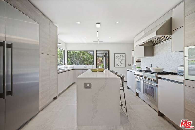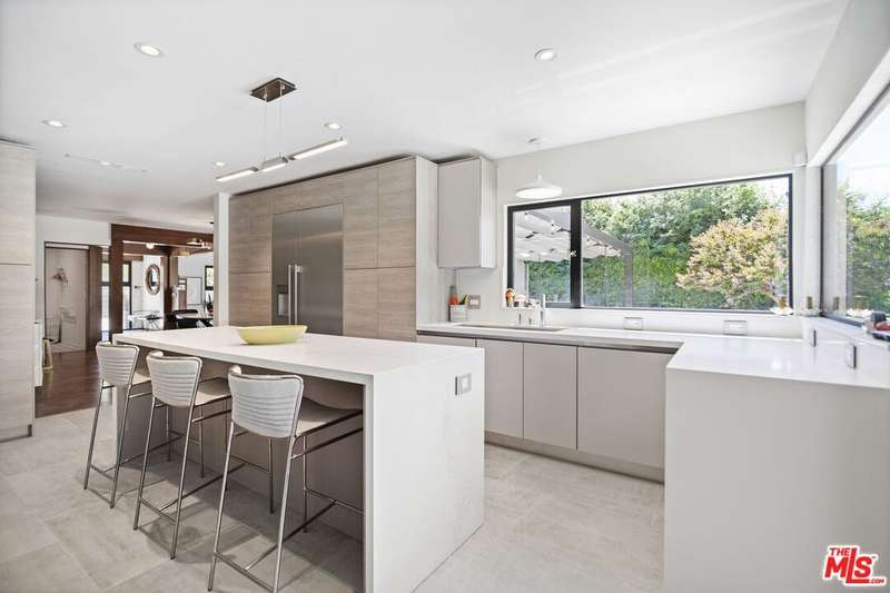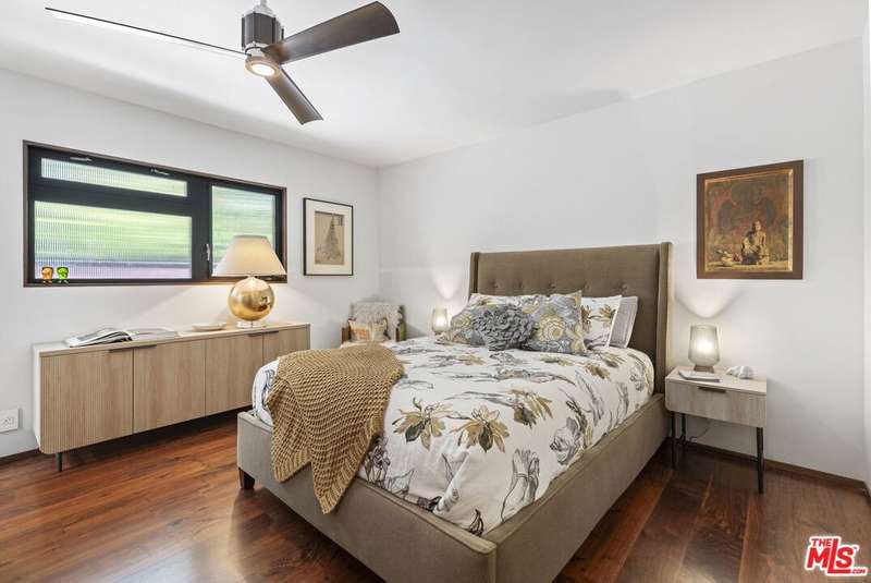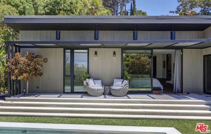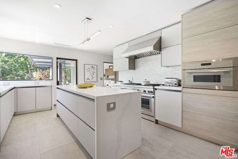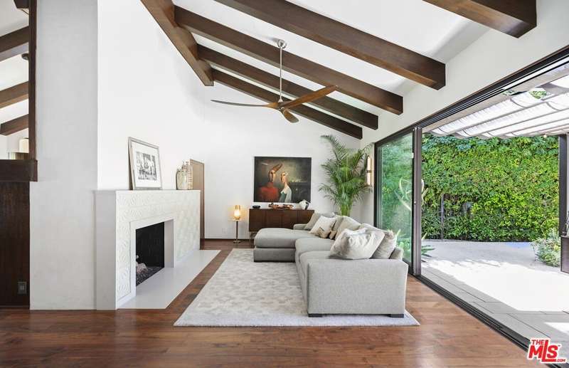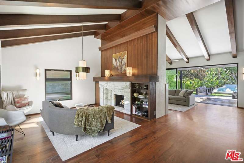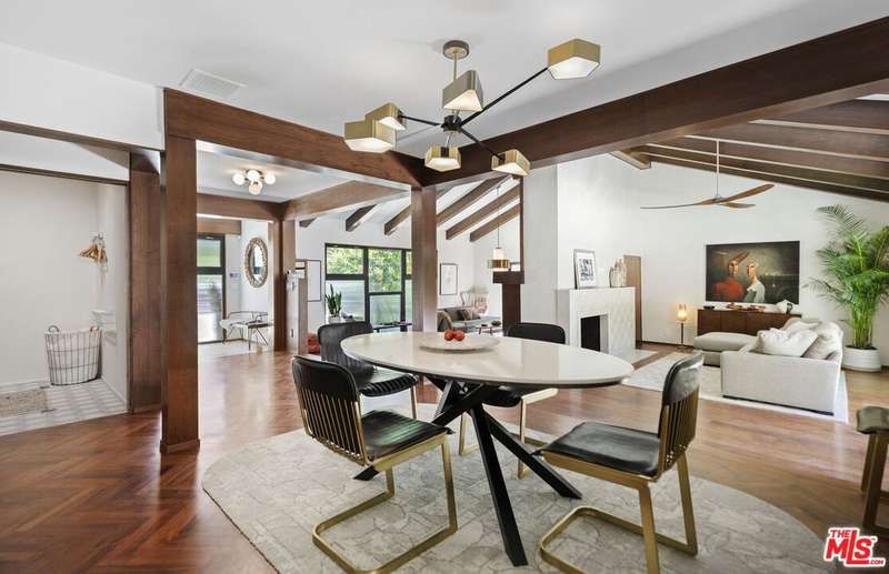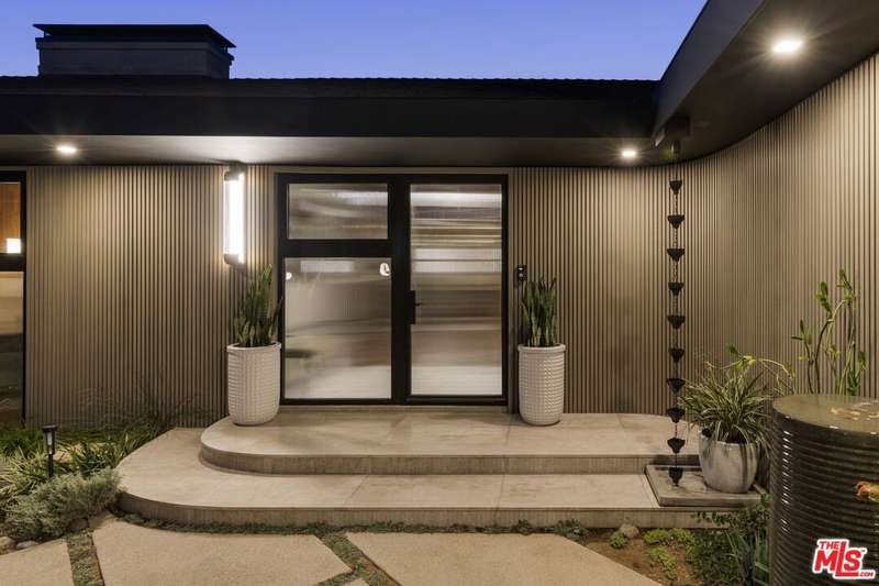 After a four-year meticulous restoration combining one-of-a-kind cutting-edge design with rare luxurious materials, this c1953 single-level gated re-imagined mid-century modern masterpiece is an unparalleled triumph, with an eye for complete privacy. Located on a sprawling mostly-flat over 1/3 acre lot on a quiet cul-de-sac in the coveted Los Feliz Oaks, the unassuming facade belies a dramatic captivating interior. Distinctive paneled formal entry reveals back-to-back rooms with soaring vaulted beamed ceiling. Formal living room features a show-stopping custom-designed Calcutta marble fireplace and separate adjacent lounge offers vintage style tiled fireplace and TV; and overlooks the expansive lush grassy backyard plus brand new pool and spa. Anchoring the public rooms, the dining area features custom herringbone walnut floors and opens to stunning minimalist chef's kitchen: featuring imported European cabinets, Caesarstone counters, and an assemblage of Thermador appliances--pure joy for culinary creations. Impeccable primary suite features extraordinary oversized chic and stylish bespoke bright and airy bath, with Duravit trapezoidal tub and separate shower leading to pool and yard. Exquisite private hall leads to ensuite bedrooms featuring custom built-in closets and new beautifully styled baths with top-of-line Duravit and Handsgrohe fixtures. Spend all day at home in your resort-like yard and patios; featuring custom iron swinging chairs and day bed; new swimmer's pool with sun deck and sitting bench, and a marble-waterfall spa that will fit 8; plus outdoor shower. Some upgrades include California wide plank walnut floors; custom iron work for the driveway gate, entrance, fence and carport; fire resistant siding; new roof, electrical and plumbing; plus two zone central HVAC. Deluxe chic separate two room ADU with kitchenette, HVAC and Murphy bed is perfect for guests. A homey organic feel amid stunning inspired architecture--classic Mid-Century cool.