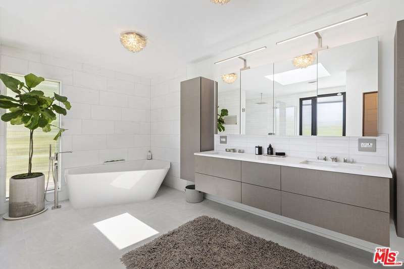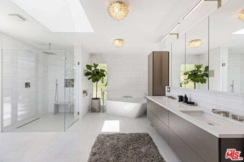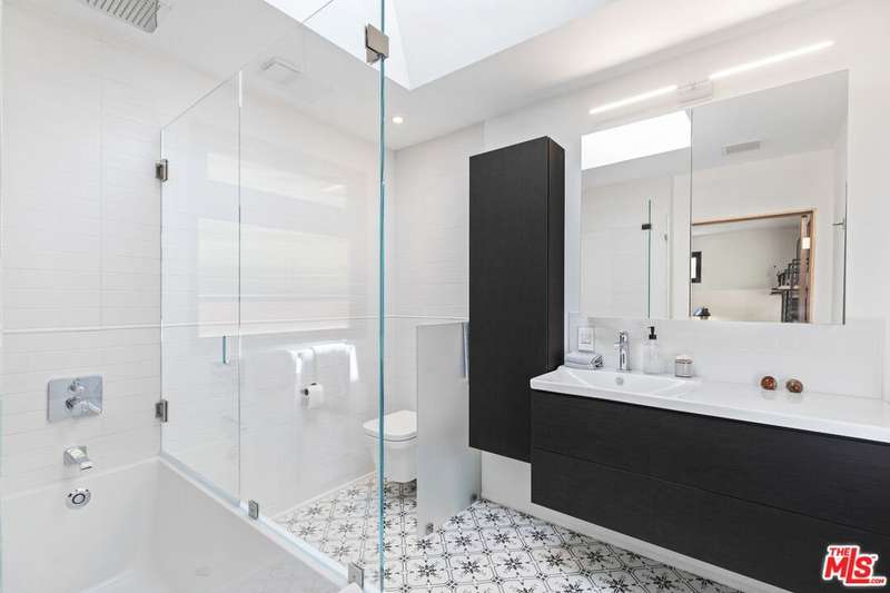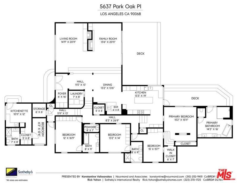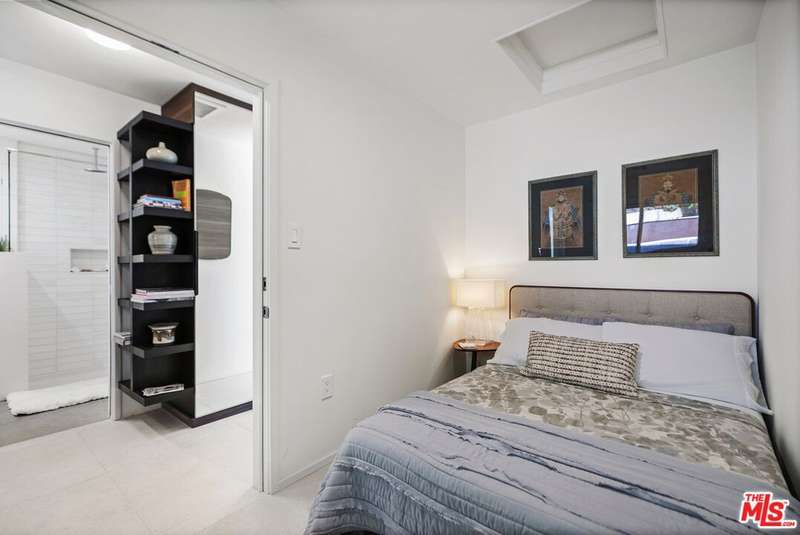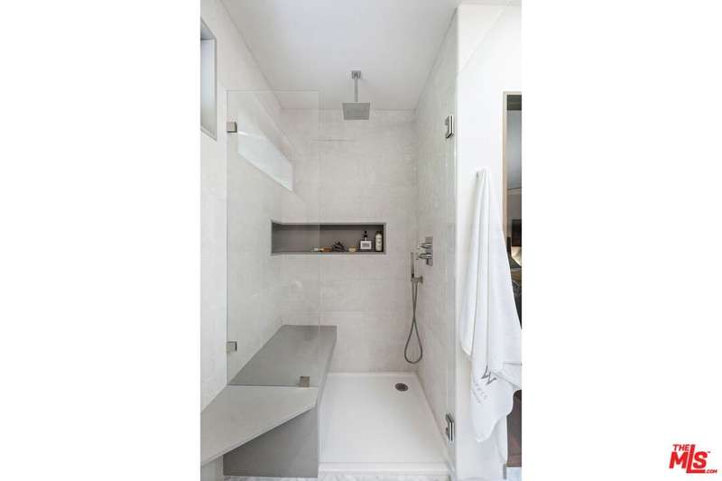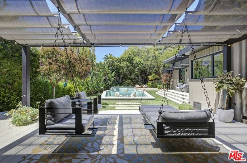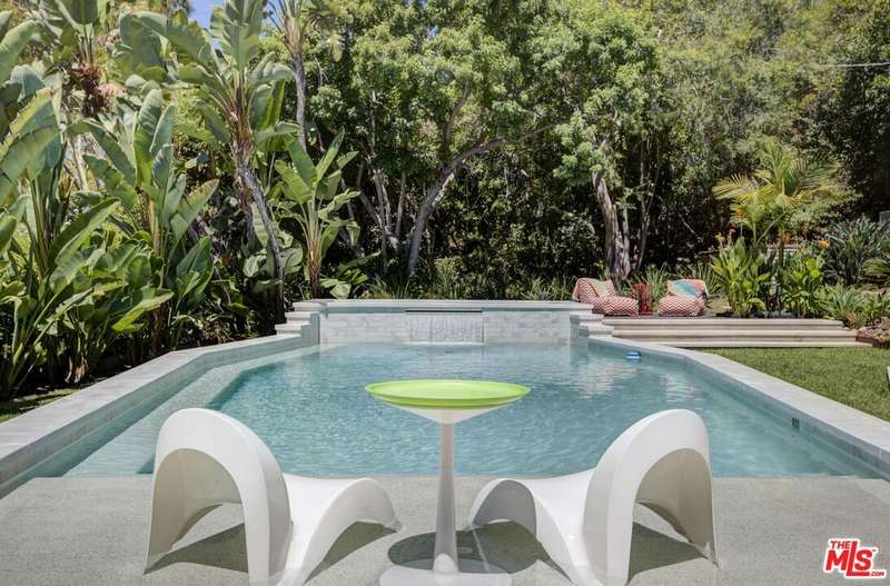 After a four-year meticulous restoration combining one-of-a-kind cutting-edge design with rare luxurious materials, this c1953 single-level gated re-imagined mid-century modern masterpiece is an unparalleled triumph, with an eye for complete privacy. Located on a sprawling mostly-flat over 1/3 acre lot on a quiet cul-de-sac in the coveted Los Feliz Oaks, the unassuming facade belies a dramatic captivating interior. Distinctive paneled formal entry reveals back-to-back rooms with soaring vaulted beamed ceiling. Formal living room features a show-stopping custom-designed Calcutta marble fireplace and separate adjacent lounge offers vintage style tiled fireplace and TV; and overlooks the expansive lush grassy backyard plus brand new pool and spa. Anchoring the public rooms, the dining area features custom herringbone walnut floors and opens to stunning minimalist chef's kitchen: featuring imported European cabinets, Caesarstone counters, and an assemblage of Thermador appliances--pure joy for culinary creations. Impeccable primary suite features extraordinary oversized chic and stylish bespoke bright and airy bath, with Duravit trapezoidal tub and separate shower leading to pool and yard. Exquisite private hall leads to ensuite bedrooms featuring custom built-in closets and new beautifully styled baths with top-of-line Duravit and Handsgrohe fixtures. Spend all day at home in your resort-like yard and patios; featuring custom iron swinging chairs and day bed; new swimmer's pool with sun deck and sitting bench, and a marble-waterfall spa that will fit 8; plus outdoor shower. Some upgrades include California wide plank walnut floors; custom iron work for the driveway gate, entrance, fence and carport; fire resistant siding; new roof, electrical and plumbing; plus two zone central HVAC. Deluxe chic separate two room ADU with kitchenette, HVAC and Murphy bed is perfect for guests. A homey organic feel amid stunning inspired architecture--classic Mid-Century cool.