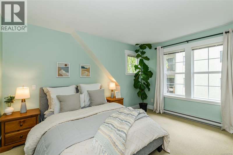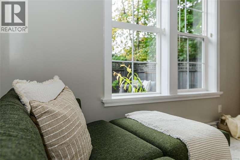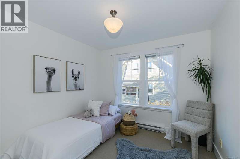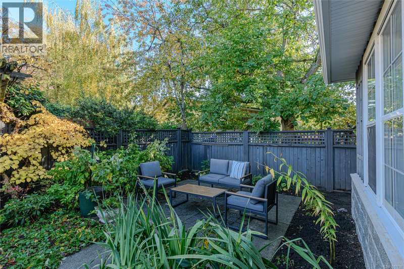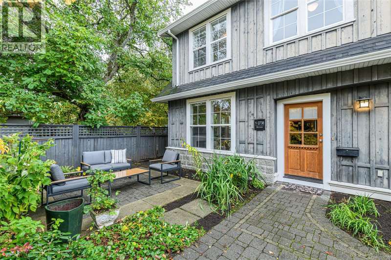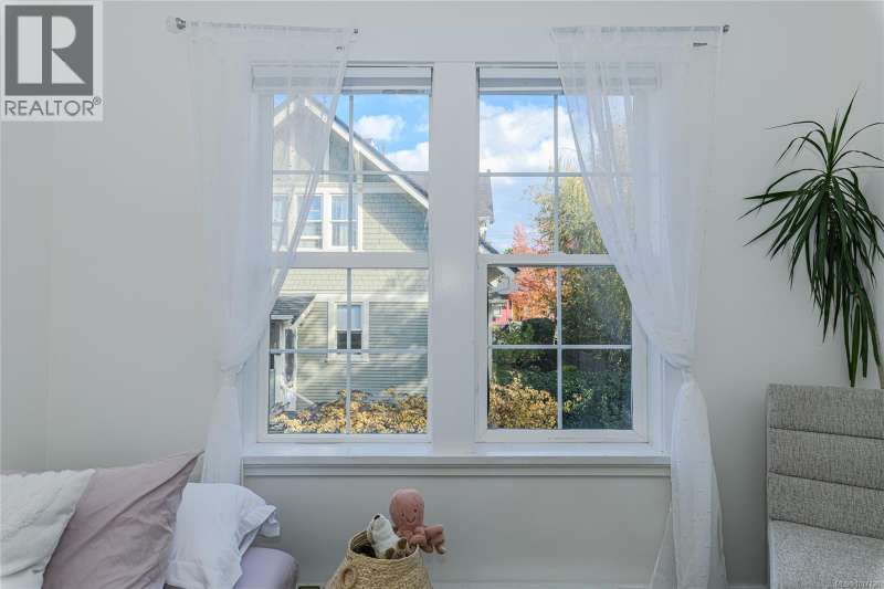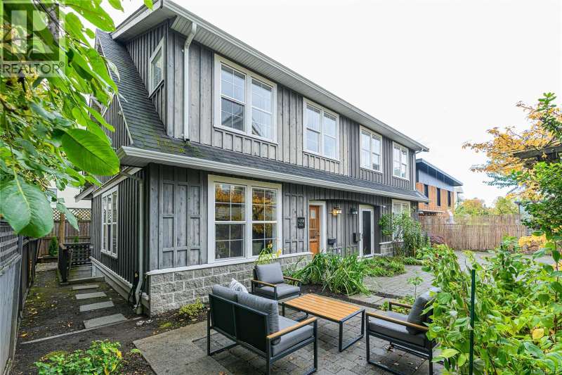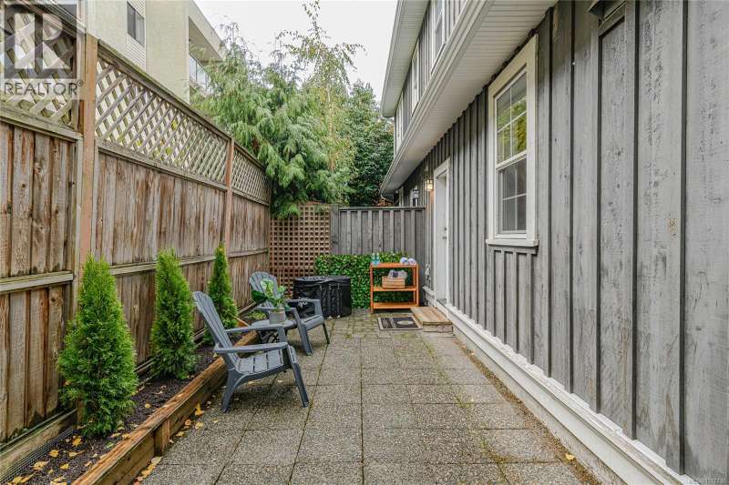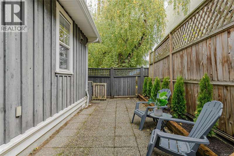 Tucked away at the back of a quiet enclave, this 2004-built strata duplex by Bruce Wilkins offers a rare combination of privacy, space, and walkability. The main floor features high ceilings, fir floors, a modern kitchen, and an open layout that makes everyday living and entertaining easy. Upstairs are three comfortable bedrooms, each with generous closets—the spacious primary bedroom is large enough to accommodate a home office or reading nook. One of the standout features is the incredible crawlspace—approximately 4’6” high at the rear and tapering slightly toward the front—spanning the full footprint of the house and providing an abundance of dry, easily accessible storage rarely found in homes like this. Outside, enjoy both a private front patio and a low-maintenance rear patio, all in a super walkable location close to parks, cafés, and shopping in Quadra Village. Perfect for first-time buyers, young families, or downsizers seeking a quiet home in a central location. (id:58403)