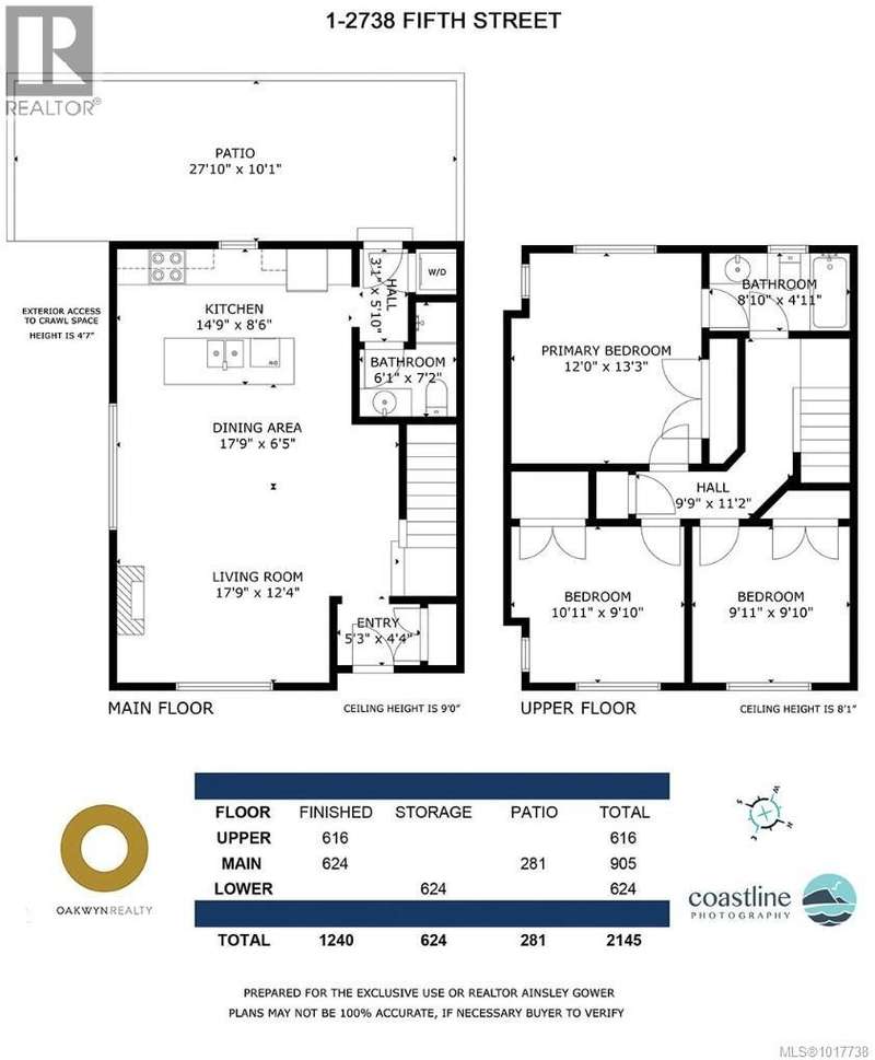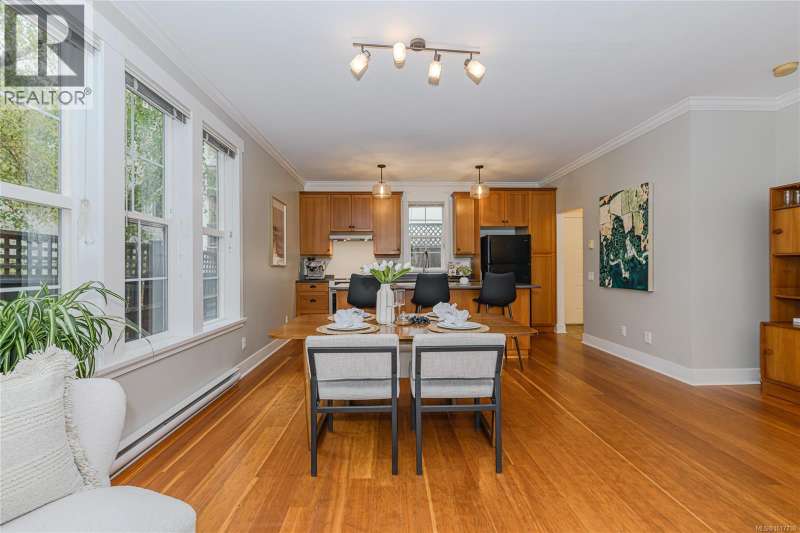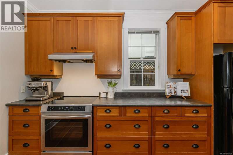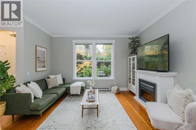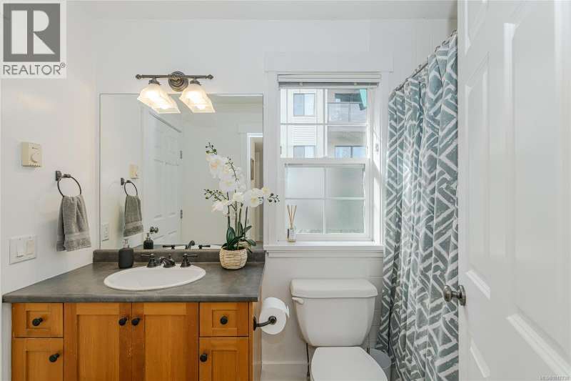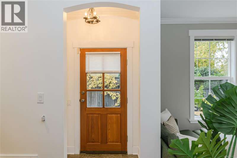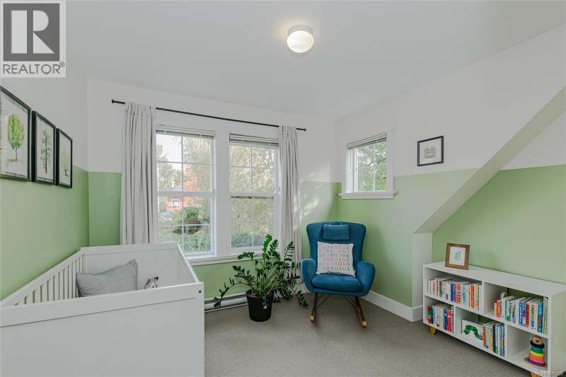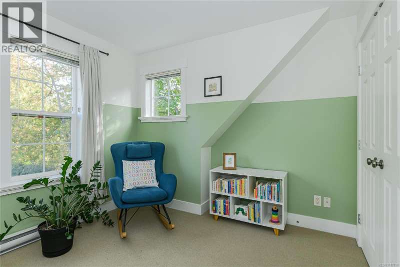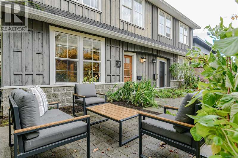Tucked away at the back of a quiet enclave, this 2004-built strata duplex by Bruce Wilkins offers a rare combination of privacy, space, and walkability. The main floor features high ceilings, fir floors, a modern kitchen, and an open layout that makes everyday living and entertaining easy. Upstairs are three comfortable bedrooms, each with generous closets—the spacious primary bedroom is large enough to accommodate a home office or reading nook. One of the standout features is the incredible crawlspace—approximately 4’6” high at the rear and tapering slightly toward the front—spanning the full footprint of the house and providing an abundance of dry, easily accessible storage rarely found in homes like this. Outside, enjoy both a private front patio and a low-maintenance rear patio, all in a super walkable location close to parks, cafés, and shopping in Quadra Village. Perfect for first-time buyers, young families, or downsizers seeking a quiet home in a central location. (id:58403)