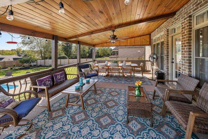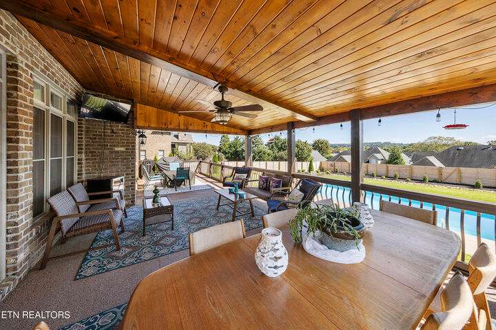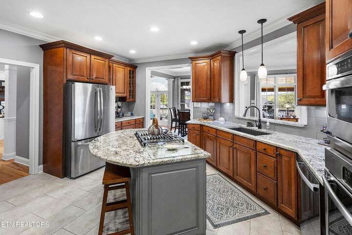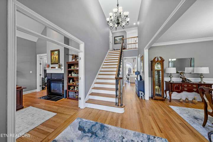 Experience refined living in Copperstone at Choto, one of West Knoxville's most desirable neighborhoods. Built in 2006 and offering approximately 3,962 square feet, this 4-bedroom, 3.5-bath all-brick home blends timeless craftsmanship with modern comfort. Every detail reflects quality—from the hardwood flooring on the main level to the natural light that fills each living space. A gracious foyer opens to a formal dining room with wainscoting and tray ceiling, complemented by a living room featuring a gas fireplace, built-in bookshelves, and cathedral ceilings. The family room centers around a stone gas fireplace and transom windows, creating a warm, inviting atmosphere that connects seamlessly to the kitchen and breakfast area. The chef's kitchen showcases granite countertops, stainless-steel appliances, custom cabinetry, and a large island that anchors the open floor plan. Whether entertaining or enjoying quiet mornings, the design provides both elegance and practicality. The primary suite on the main level offers a true retreat with a see-through fireplace, dual walk-in closets, and a spa-style bath featuring granite-topped vanities, a walk-in tiled shower, and a soaking tub. Upstairs are three spacious bedrooms, two updated full baths, and a bonus room ideal for media, recreation, or office use. A walk-in attic adds convenient storage. Outdoor living is equally impressive. A partially covered back deck overlooks the fenced backyard, newly enhanced with a wood privacy fence and integrated lighting. The in-ground pool offers a private oasis perfect for gatherings or relaxation. A sealed covered front porch, sealed driveway and sidewalks, and a sealed three-car garage contribute to the home's well-maintained curb appeal. Additional features include: • Encapsulated crawlspace with concrete floor and extra storage • Dual tankless water heaters for energy efficiency • Irrigation and security systems • Freshly re-tiled upstairs bathrooms and new carpet throughout Located near Fort Loudoun Lake, Concord Park, and area golf courses, this home places recreation and leisure just minutes away. The Turkey Creek retail district and West Knoxville dining are a short drive, offering convenience without compromising tranquility. The Copperstone community is known for its landscaped streets, well-kept homes, and easy access to main corridors connecting to downtown Knoxville and neighboring counties. Served by Farragut-area schools (verify attendance zones), this location offers both comfort and practicality for daily living. Whether enjoying the peaceful neighborhood vibe or entertaining by the pool, this home captures the best of luxury and lifestyle in one exceptional property. Schedule a private showing to experience the quality, space, and setting that make 12728 Watergrove Dr. truly stand out in today's West Knoxville market.