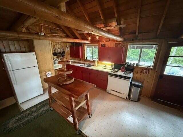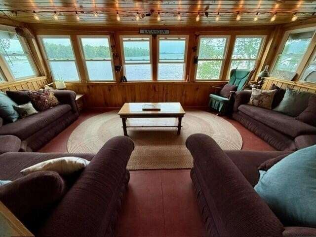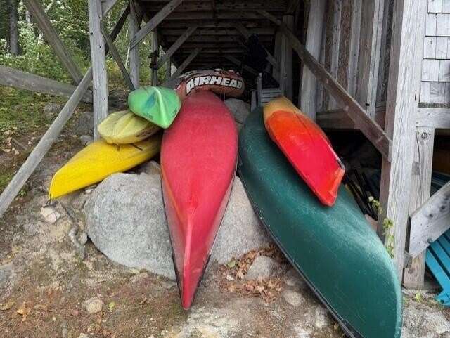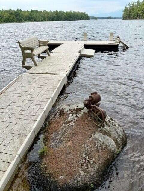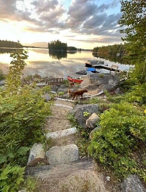 Don't miss this Opportunity, to own a camp on Ambajejus Lake with views of Katahdin! A Seasonal camp, incredibly landscaped with all the amenities and propane fireplace to allow many months of enjoyment that sleeps10 comfortably. 2 canoes, 1 kayak, paddle boat, splash mat and 48' wave armor dock including bench, swim stairs, kayak assist and double kayak holder.