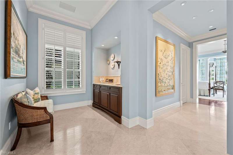 IMMEDIATE GOLF MEMBERSHIP AVAILABLE This incomparable, classic home in the Estuary at Grey Oaks is a work of art. Boasting over 8,100 square feet of luxury living space, it was meticulously designed and built for the current owners with artisan level millwork and detail. A deep veranda spans the front of the house along the drive court and delivers you the elegant entry hall. The atmosphere that pervades is one of absolute quality and elegance. Once inside, your gaze is immediately drawn through the french doors to the broad rear veranda, the infinity edge pool and to the lake and fairway beyond. The main hall leads you past the bar area and then into the enormous chef s kitchen fitted with custom cabinetry, Wolf, Subzero and Miele appliances. A massive, light- filled pantry flanks the kitchen. In the adjacent family room, two entire walls of glass disappear creating an enormous entertaining space with the lanai for true indoor-outdoor living. On the lanai is a large ou