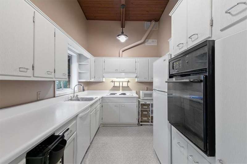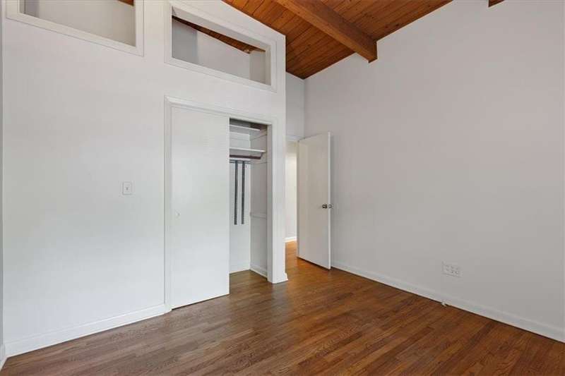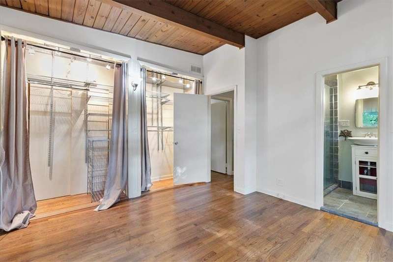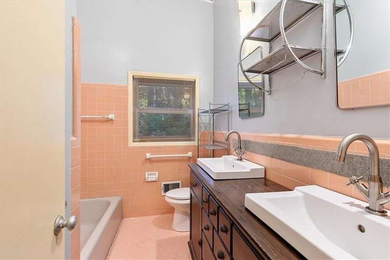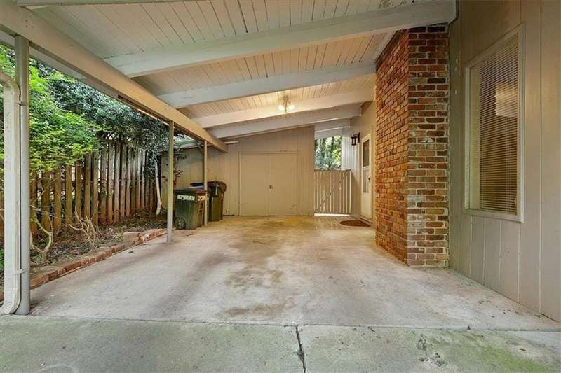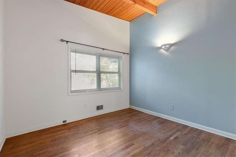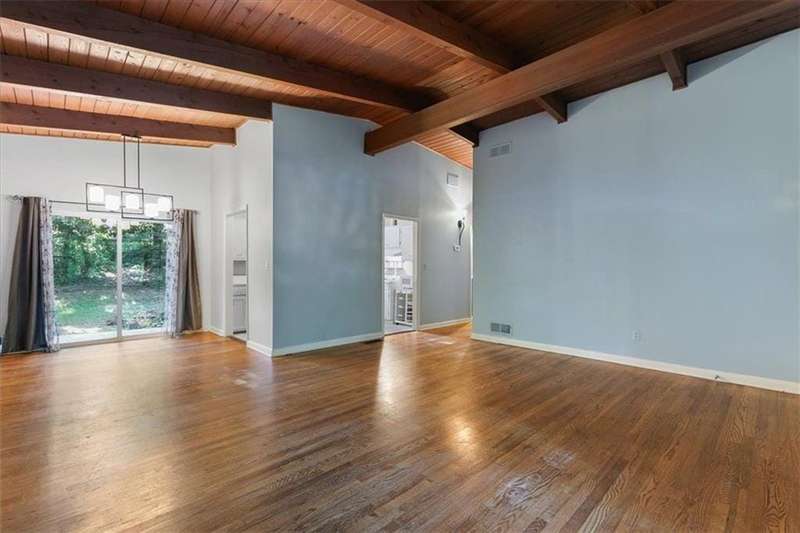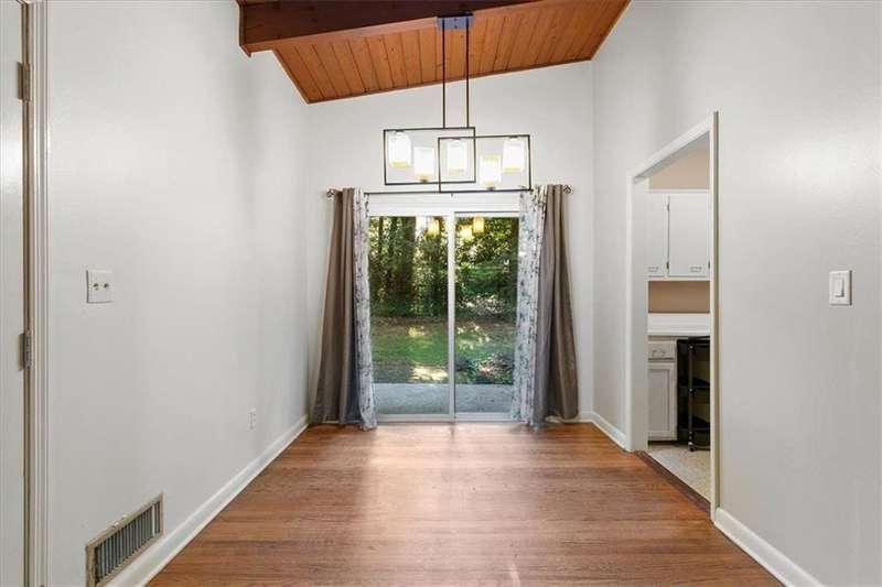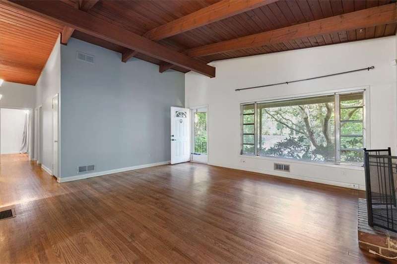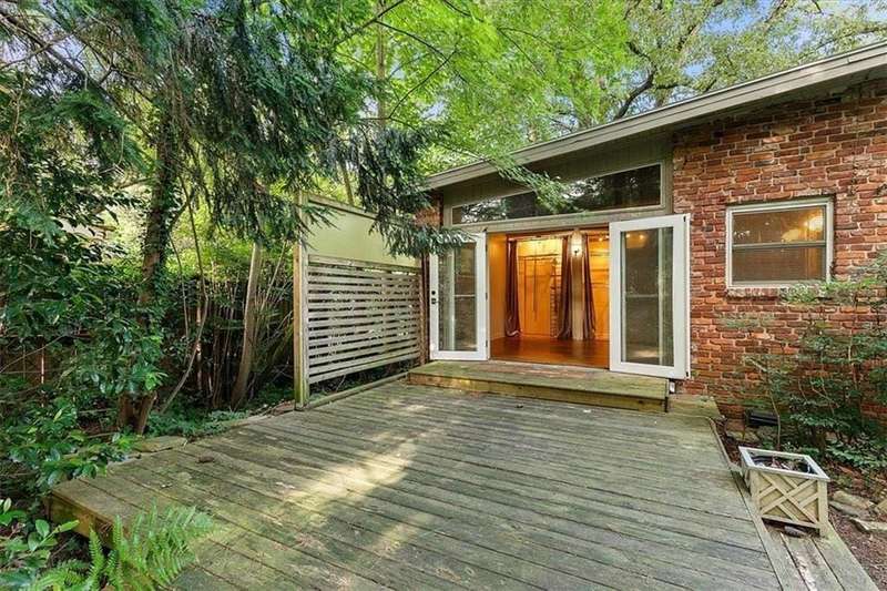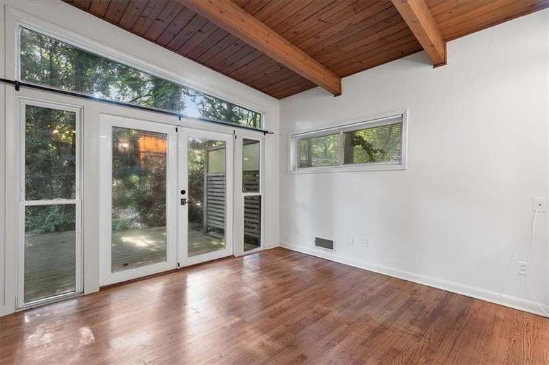 Captivating mid-century modern four sided brick home situated on a quiet street. Park in your covered carport and walk inside through the side door to the open concept living and dining room. Gleaming hardwoods, beautiful tongue and groove ceiling with beams, brick fireplace create a warm and welcoming feeling. Bright and airy kitchen featuring ample cabinet space and a convenient pantry cabinet. Down the hallway, you'll discover a spacious bathroom featuring double vanities, pristine pink tiles that exude a mid-century vibe, and a linen closet offering ample storage. One bedroom boasts a spacious closet, while the secondary bedroom includes a wardrobe for your storage needs. The primary suite is equipped with Alfa shelving closet systems, an attached bathroom with a walk-in shower, and French doors leading to a private deck in the backyard. Enjoy the privacy of a fully fenced-in backyard adorned with lush greenery. Laundry is a breeze with a full-size washer and dryer conveniently located in the carport closet. Just a few minutes' drive to Brookhaven Town Center, downtown Chamblee, Dresden Village, eclectic dining on Buford Highway, Brookhaven Farmers Market, and Whole Foods. A short walk to the Dresden Park and Skyland dog park. Briarwood Park and pool, the Olmstead are also just a short ride away. Easy access to I-85, 285, Marta, Buckhead, Lenox and Perimeter Mall, hospital areas (CDC & Emory) and Peachtree Dekalb airport. Don't miss out on the opportunity to live in this lovingly maintained home that combines mid-century aesthetics with comfort.