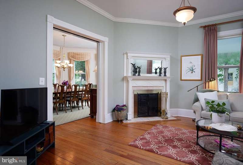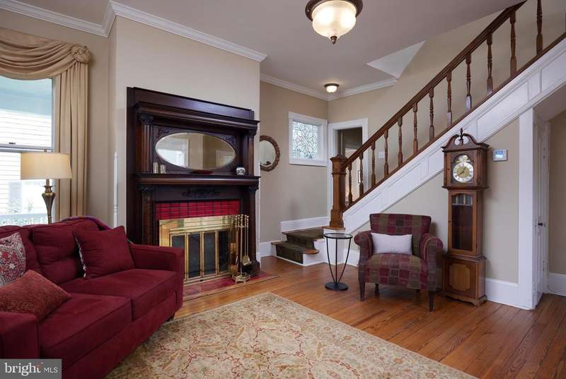 You are invited to come see this elegant , well detailed and well-cared-for, historic gem in popular downtown Rockville! This grand home has been renovated , freshly painted and is filled to the brim with appealing amenities including a ideal floor plan of six bedrooms, three full baths, a parlor, an elegant separate dining room, roomy kitchen with granite counter tops, finished upper level suite with kitchenette, skylights , stainless steel appliances, pocket doors and 9' ceilings! There are 2 fireplaces, appealing paint colors throughout, high ceilings, wood floors, plantation shutters, radiant heat, and it is a bright home! This spacious home includes 3 finished floors totaling 3463 sq. ft. plus an additional1072 sq. ft. unfinished basement ! Outside you'll find a charming wrap-around porch, well-landscaped lot , a level, back yard is fenced, a 2-car garage plus parking spaces for 2 more cars! You are within easy walking distance to Beall Elementary School and Julius West Middle School,. the Rockville Town Center, The Metro Red line, and I270. You are surrounded by parks & ballfields, . Downtown Rockville has to offer including Trader Joe's, Kusshi Sushi, Guiseppi's Pizza Plus, Regal Cinemas, Starbucks, Potbelly, Gold's Gym, Vis Arts Center, Cottage Monet, Marble Slab Creamery, and more! Just one block to Welsh park and the Rockville Swim Center with a gym, two pools, and an outdoor pool with a water park. Be sure to visit this excellent home!
