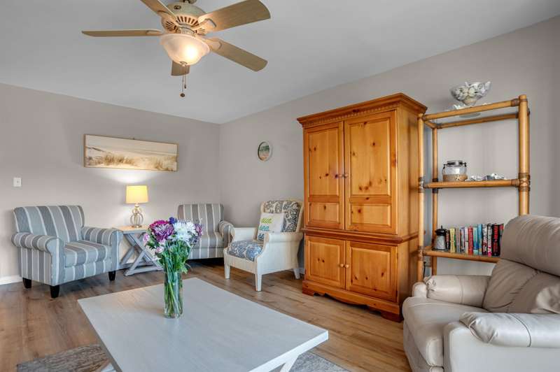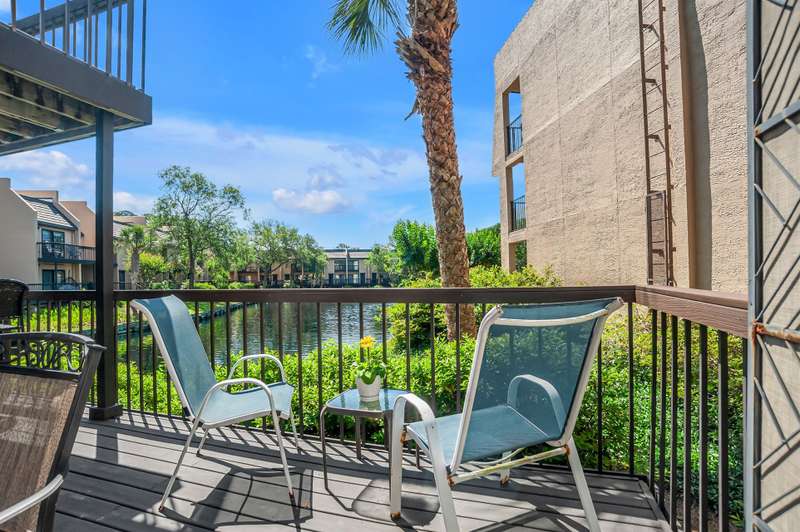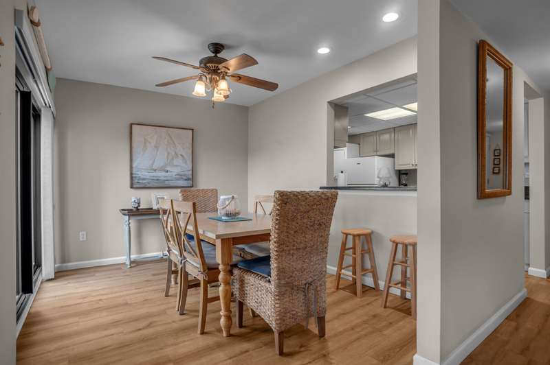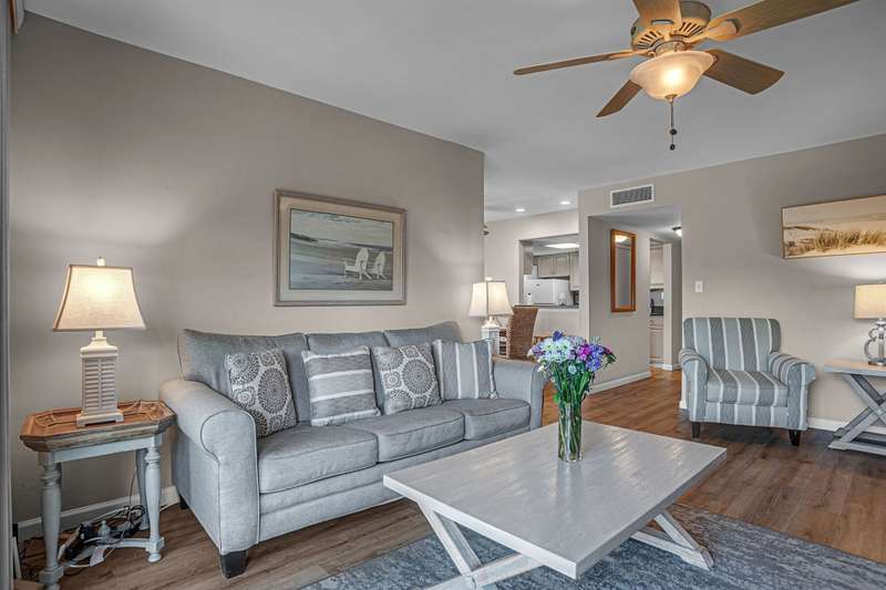 Beach beauty awaiting a new owner. Rare gem in Island Club, fully renovated with water and nature views galore. This Island charmer is inviting to all who enter. Beautifully upgraded kitchen and tiled baths with LVP flooring throughout. Rare end unit; largest 1b/1.5b at 881 sq ft in Island club with an extended wrap around porch. Direct beach access, pickleball courts, tennis courts, basketball courts, community pool, gated security...what more could your coastal dream ask for?