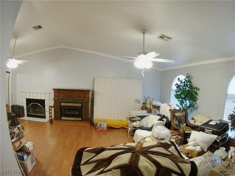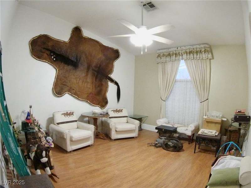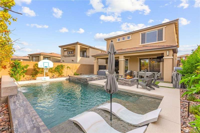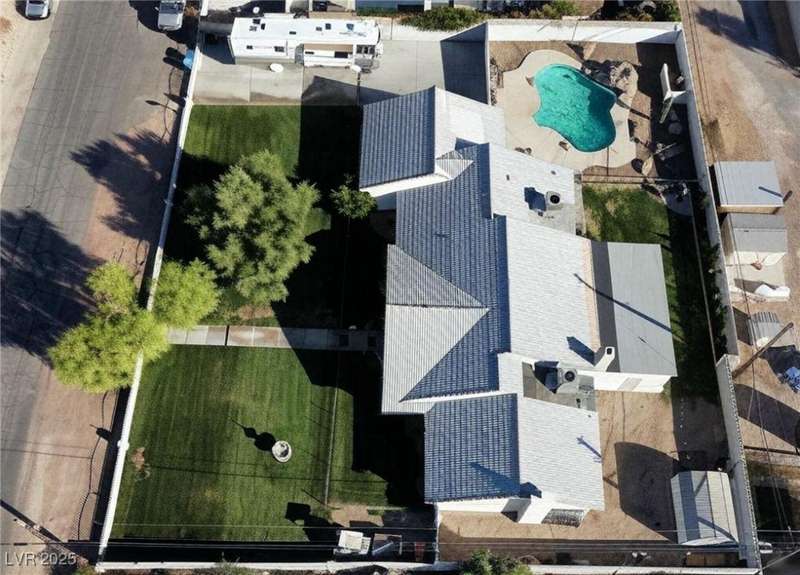 Welcome to your Vegas oasis on ~1/2 acre! This one-of-a-kind ranch-style home is an entertainers dream. Two spacious Primary Suites, each with its own full bath and large closets. Unique and open floor plan with sunken common rooms and vaulted ceilings throughout. The beautifully updated kitchen features Italian tile floors and granite countertops. Relax by the two wood-burning fireplaces, in the Family Room and in the Primary Suite. Step into your backyard paradise with a large swimming pool and abundant space to make your own outdoor haven. The garage offers ample storage and tinkering space. There's also RV parking with full hookups and plenty of room for all the toys on your own private and gated driveway. Enjoy the freedom and lifestyle of a non-HOA community! Fast access to Blue Diamond Road, Silverado Ranch Blvd. and the I-15; only minutes from the Airport, Allegiant Stadium and The Strip. Make this unique gem of a custom home yours today!