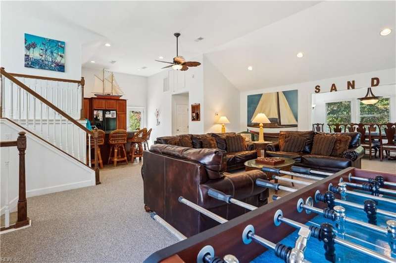 Come see this profitable beach contemporary home located in the heart of Duck, NC and situated on a large corner lot. The outside of the home features numerous decks, large private in-ground pool, hot tub, volleyball court, horseshoe court, basketball goal, swing-set, and extended parking spaces. The top floor was painted and the home was power washed on 3/11/2025. HVAC #1 was replaced in 2019 and the other in 2020. New pool liner was installed January 2022. Fortified roof was installed in 2023. The first floor features a game room, two bedrooms, two bathrooms, and a storage room. On the second floor, there is a laundry closet, three bedrooms, and three bathrooms. The top level features an open floor plan with the living room, kitchen, half-bath, the sixth bedroom and bathroom.