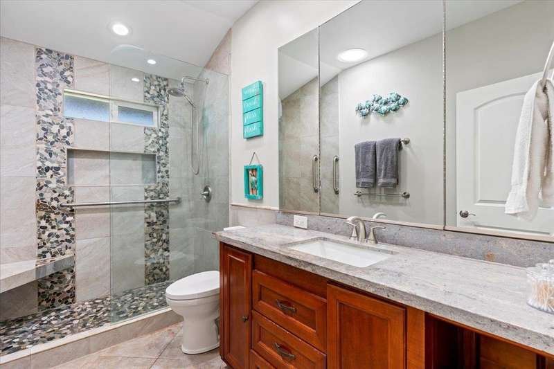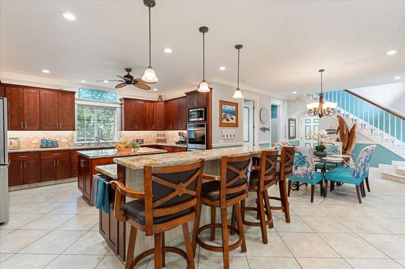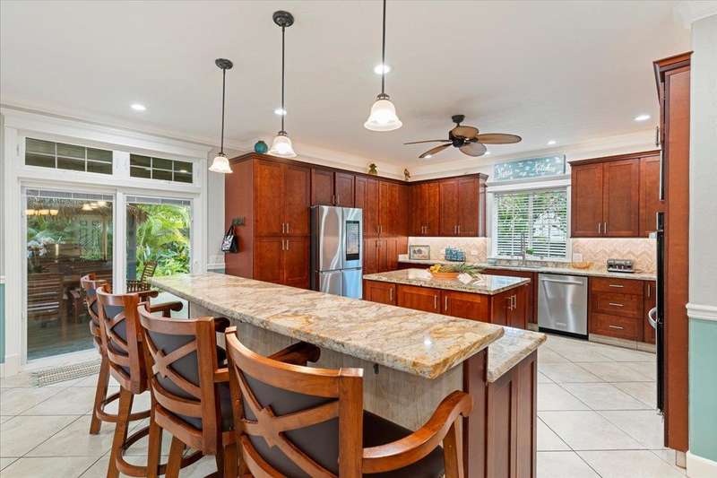 Maui Meadows at its finest: Sweeping ocean views from Molokini & Kaho‘olawe to Lana‘i, and the West Maui Mountains set the stage for this fully remodeled Maui Meadows retreat. The half-acre estate features an in-ground saline pool accompanied by a stone waterfall, a vibrant koi pond, & lush tropical landscaping. The open-concept main residence includes a gourmet kitchen, outdoor kitchen with BBQ and flat grill. The spacious primary suite offers an ocean view jacuzzi on the private lanai and spa-like ensuite bath, thoughtfully positioned away from the additional four bedrooms for even more privacy. Car enthusiasts will appreciate the 4-car attached garage plus a separate 2-car detached garage. Two private rental dwellings offer income potential or guest accommodations. Split-system a/c in all rooms and the PV panels on all the dwelling keep electricity costs in check. Luxury, privacy, and versatility in one of South Maui’s most sought-after neighborhoods. Call your favorite Realtor to schedule your private showing.