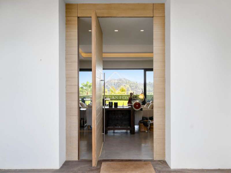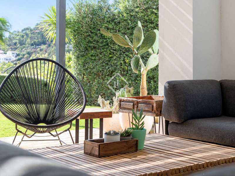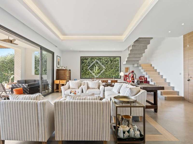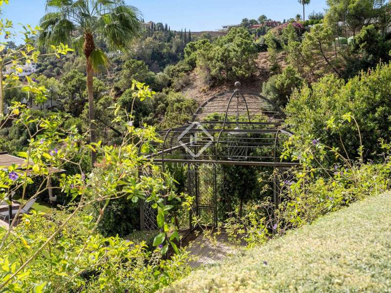 Located in the peaceful hills of Benahavís, this contemporary villa stands as a haven of calm and refinement within the secure enclave of El Madroñal. Built in 2018 on a 3,000 m² plot, it blends geometric design with organic textures, creating a balanced connection between architecture and landscape. The main residence extends over generous, light-filled spaces. Four en-suite bedrooms, a guest bathroom, and a large open-plan living area lead directly onto terraces and manicured lawns. The kitchen, equipped with top-quality fittings, is complemented by a secondary service kitchen, perfect for entertaining. A spacious office captures the morning sun and valley views, while a wine cellar and a three-car garage add practical comfort. An independent guest house mirrors the same level of detail and serenity, offering two bedrooms with private bathrooms, a kitchen, and its own living area, ideal for visitors or extended family. The outdoor areas reflect the Mediterranean lifestyle at its purest. A long swimming pool forms the heart of the garden, surrounded by lush greenery and mature trees. Terraces shaded by sleek wooden pergolas invite dining outdoors, while a secluded gazebo offers an intimate space to take in the scenery. Every element of this home has been conceived to enhance the sense of openness, tranquility, and connection with nature. El Madroñal provides a rare mix of privacy and accessibility, ten minutes from Marbella, twenty from Estepona, and forty-five from Málaga Airport. Please contact us for further information.