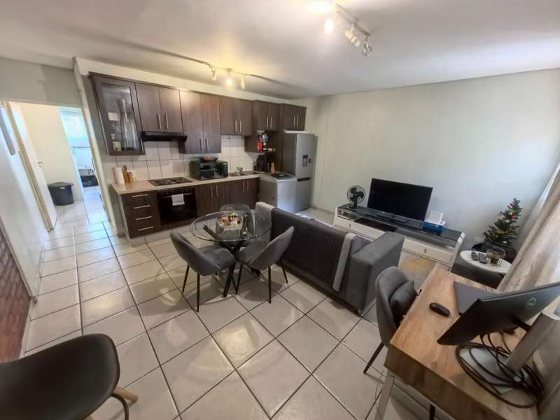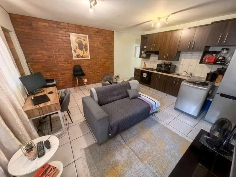 1 Bed 1 Bath second floor apartment in Ferndale, Randburg. Apartment has an additional storage unit and a shaded parking bay. This apartment is very spacious and finishes are modern and chic. The interior of the unit includes; ?é? Open plan kitchen/dining/lounge area ?é? Kitchen has space for 1 washing appliances, with lots of cupboard space and counter top space ?é? Large lounge area that can comfortably fit most lounge suites ?é? Open plan area can also fit a dining table ?é? En-suite bedroom can easily fit a king sized bed with side tables and additional bedroom furniture ?é? En-suite bathroom is a full bathroom with a shower and a bath ?é? Fibre ready Additional Outdoor and Communal Features Include; ?é? 1 undercover Bay ?é? Security gate ?é? Electric Entrance Gate ?é? Electric Fence ?é? Security Door/Gates and Burglar bars Utilities exclude: ?é? Electricity (Pre-Paid) ?é? water ?é? Sewerage