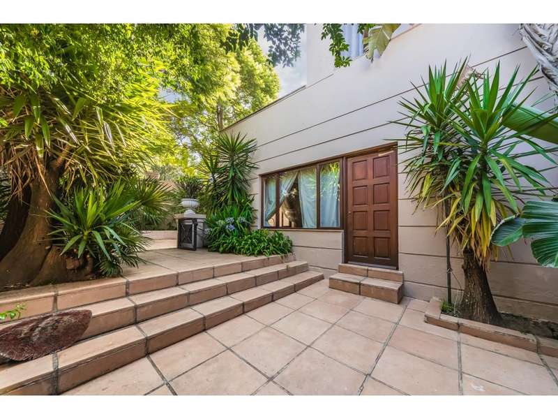 A Family Haven Designed for Effortless Living, Entertaining, and Investment Potential Lovingly lived in by the same family for 25 years, this exceptional home is now ready to welcome a new generation. The grand entrance hall, overlooking a serene internal courtyard, sets the tone for the home?ÇÖs warmth and elegance. The sophisticated lounge and dining area, featuring a marble fireplace, opens through double sliding doors onto a spacious patio?Çöperfect for entertaining. From here, take in breathtaking views of the sparkling blue pool, gazebo, and lush garden, all complemented by a built-in braai area. The gourmet granite-topped kitchen, complete with a separate scullery, offers ample space for appliances, meal preparation, and culinary creativity. Designed for seamless indoor-outdoor living, the free-flowing open-plan reception areas lead effortlessly to the downstairs en-suite bedrooms, which open onto the sun-drenched garden filled with towering trees. The expansive main bathroom, featuring a double basin, walk-through closets, and an inviting ambiance, adds a touch of luxury. Upstairs, a private retreat awaits, boasting a bedroom, bathroom, living area, study, kitchenette, and a charming terrace. A Prime Development Opportunity Already subdivided and approved for two stands of 991 sqm each, with a gated entrance for each stand, this property is a developer?ÇÖs dream?Çöoffering exceptional potential for future investment. Additional Features: -Two separate entrances -Two double garages -Double staff quarters with a bathroom -A convenient storage room Perfectly positioned at the doorstep of Sandton CBD, this residence is nestled within the highly secure and sought-after Lower Sandhurst boomed enclosure, offering both privacy and prestige.